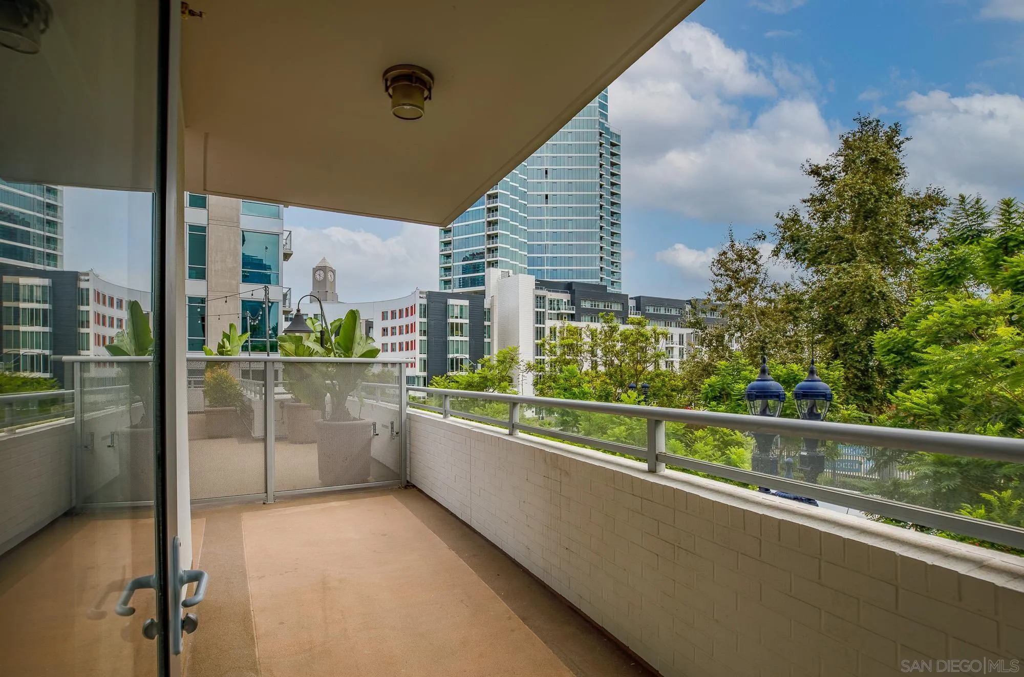 Prime location directly across the street from Petco Park. Enjoy the expansive wraparound patio, perfect for entertaining! Features include: elegant flooring throughout, granite countertops, stainless steel appliances, a large kitchen island, washer/dryer, and two side-by-side parking spaces. The spacious floor plan is filled with natural light. The complex offers a BBQ area, fitness center, and community room. Park Terrace is within walking distance of Gaslamp, the trolley station, waterfront, dining, and entertainment.