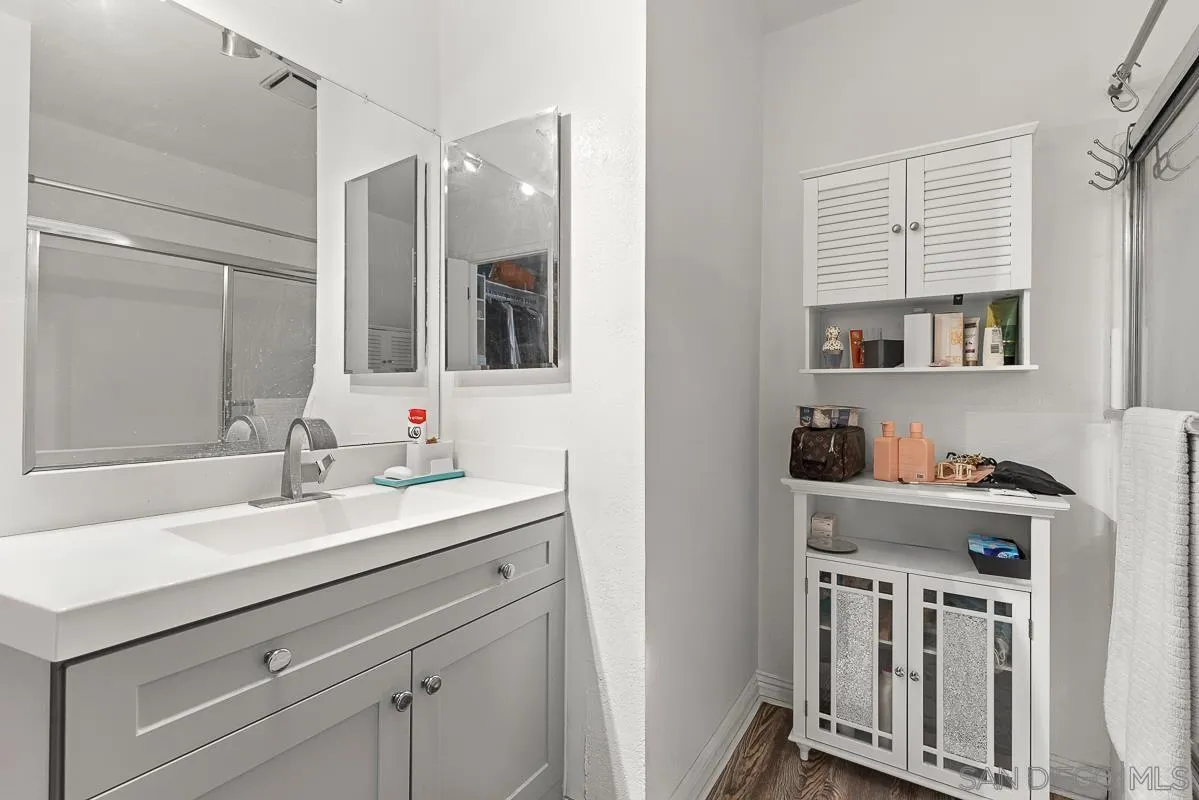 Welcome to this well-maintained 2-bed, 2-bath home located in a highly desirable Escondido neighborhood. The open floor plan with vaulted ceilings creates a bright, airy feel throughout. A versatile bonus room offers the perfect space for a home office, guest bedroom, or playroom. The spacious primary suite includes an en-suite bathroom and generous closet space. Recent updates feature new roof underlayment beneath the tile roof, upgraded flooring, refreshed bathroom vanities, newer appliances. Cozy gas fireplace. Enjoy the convenience of an attached one-car garage with ample storage, plus two additional driveway parking spaces and guest parking within the community. An in-home washer and dryer add everyday ease. Step outside to your private, fully fenced yard—ideal for relaxing, gardening, or entertaining. Close to shopping, dining, and parks, with a low HOA, this property blends comfort, convenience, and charm. Conventional, FHA & VA approved.
