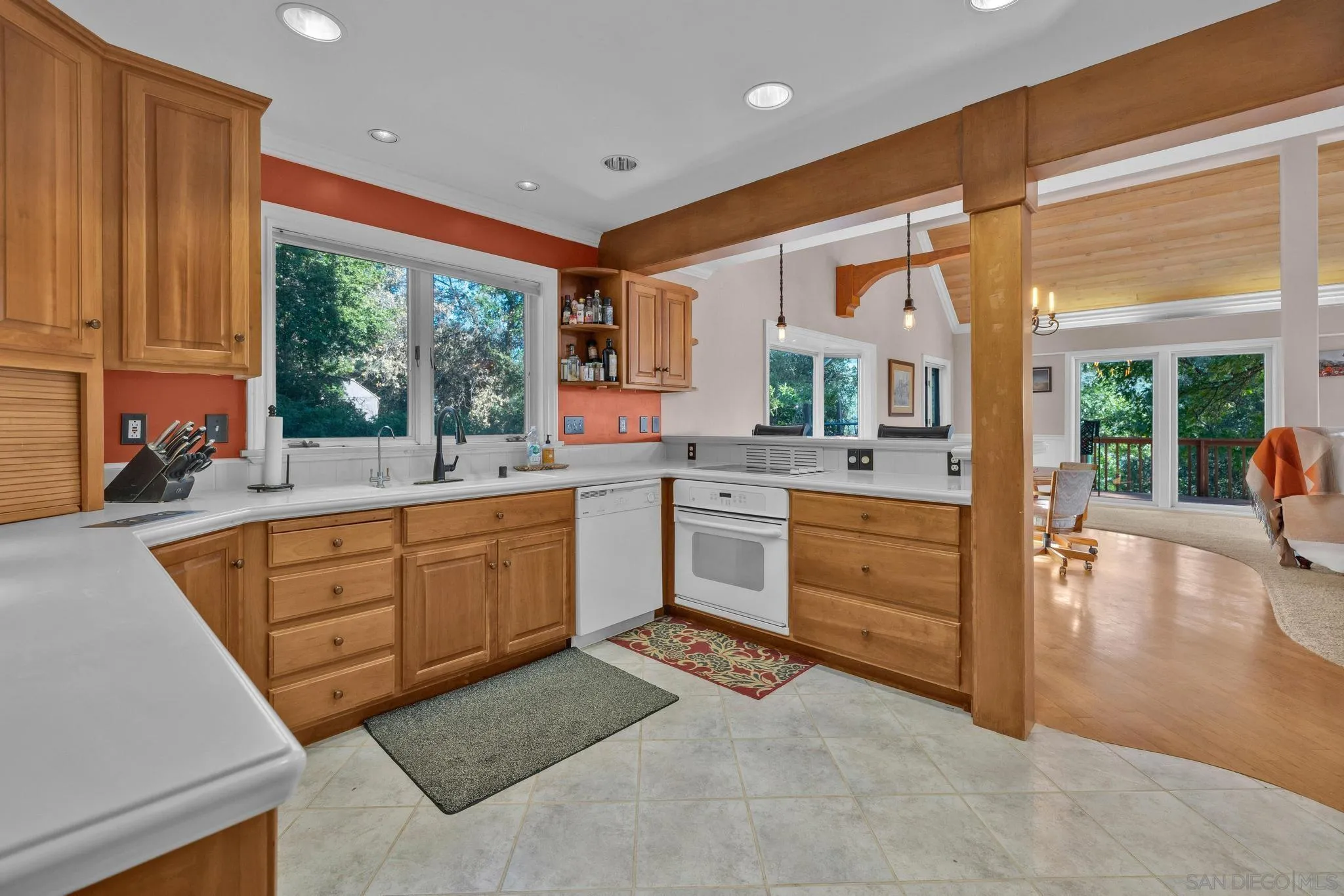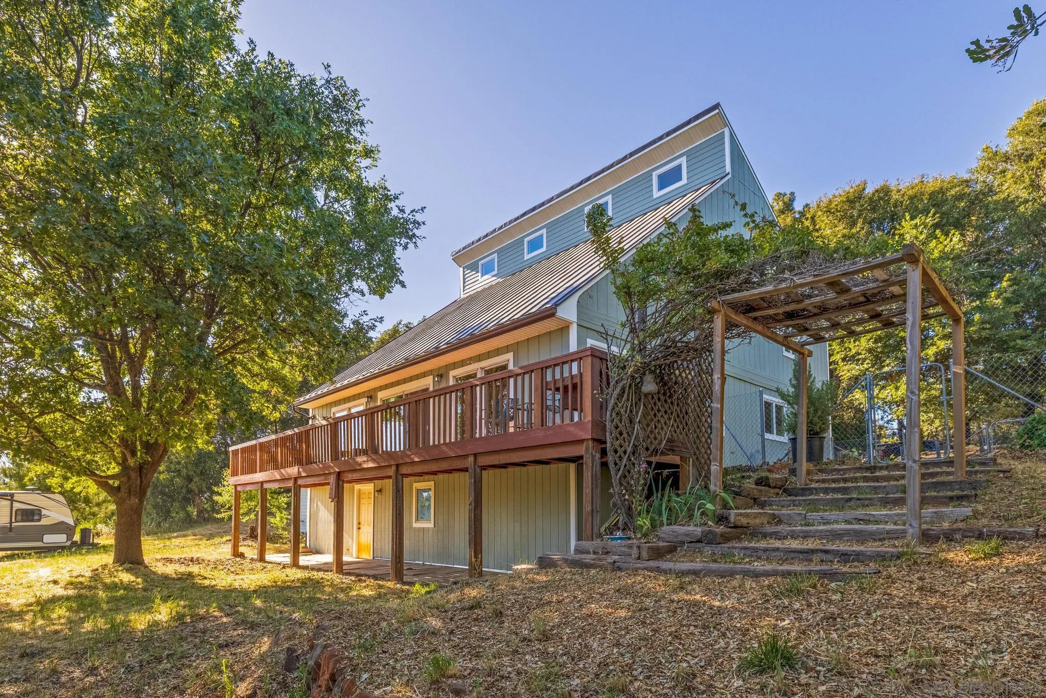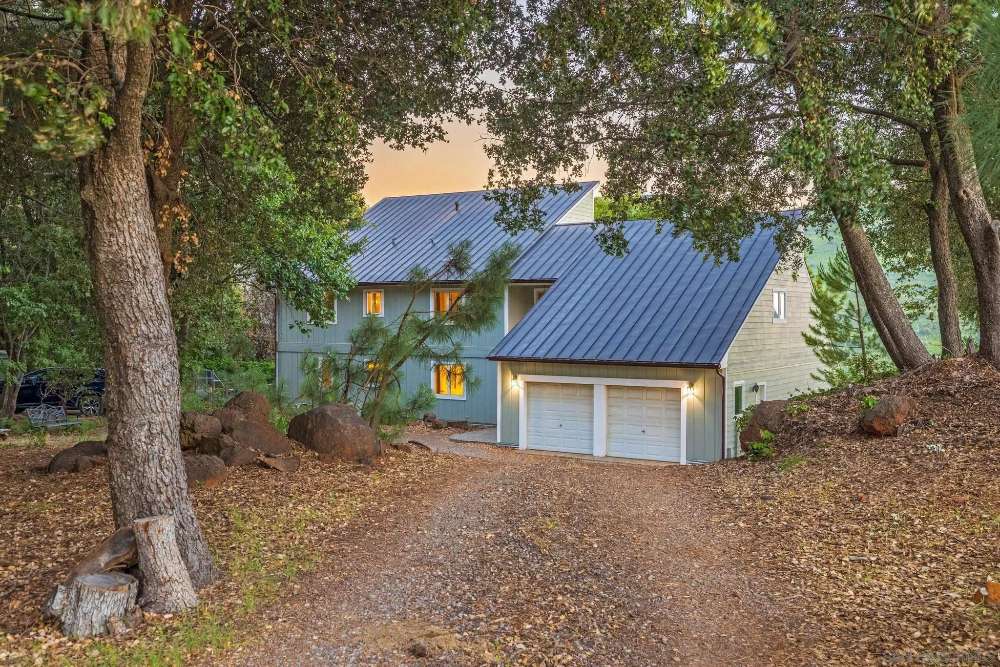 BEST VALUE IN JULIAN & PINE HILLS! Welcome to your peaceful mountain retreat in the desirable Pine Hills community of Julian, CA. This 3-bedroom, 3-bathroom home offers 2,640 sq. ft. of well-designed living space on nearly 0.78 acres, surrounded by a canopy of majestic black oaks and coulter pines—the perfect setting for tranquil, nature-rich living. The main floor features a welcoming living room that opens to a spacious deck—ideal for outdoor dining and enjoying the fresh mountain air. You'll also find a guest bedroom, full bathroom, laundry room, and access to the oversized 2-car garage. Upstairs, the primary suite includes a walk-in closet, en suite bathroom, and a private office, perfect for remote work or creative space. An additional upstairs bedroom also features an en suite bathroom, offering comfort and privacy for guests or family. Additional perks include a walk-out basement, currently used as a large home gym, a roundabout driveway, a thoughtfully landscaped garden area, and a rainwater collection system for irrigation. The copper roof and passive solar system were designed to maximize energy efficiency by capturing and storing heat from the sun (see Documents tab for details), making this home as practical as it is picturesque.