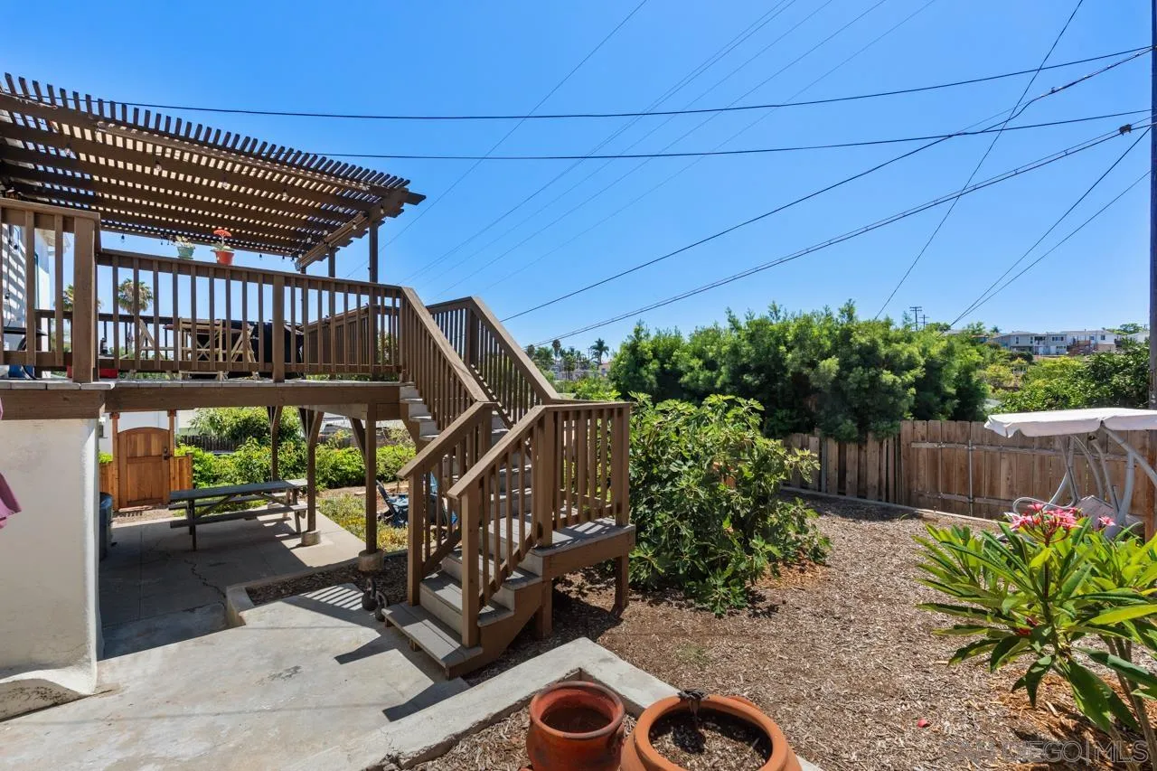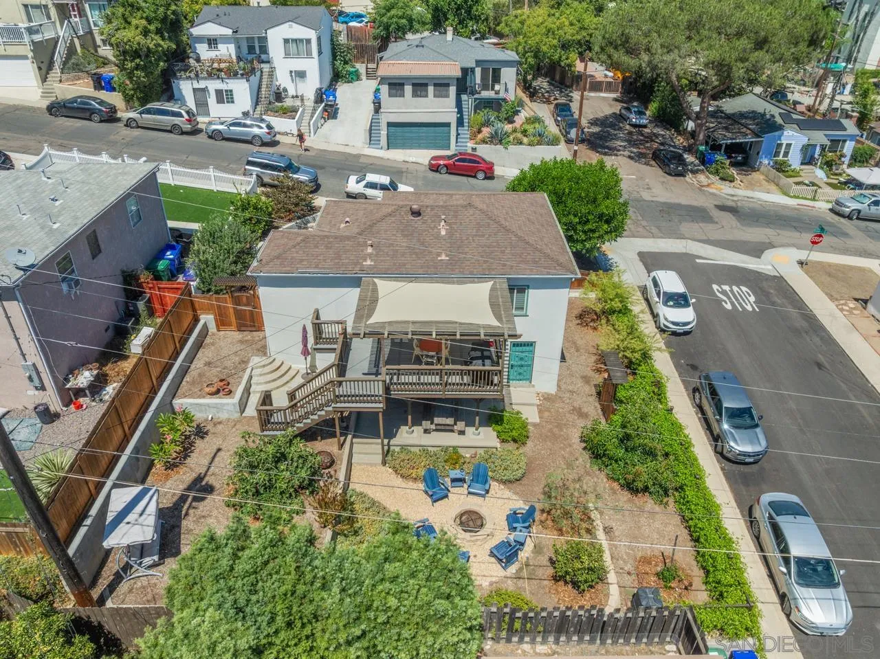 Beautiful Elevated Corner View lot Art Deco Inspired home in El Cerrito (near SDSU), lives larger than square footage, huge deck off dining room with large garden space. Light and bright throughout... Gleaming wood floors, updated kitchen stainless appliances and bath, 2 car garage with 2 off street parking spaces. Laundry inside. Room to build and ADU or 2. Unfinished room under home has outside and garage access (could be finished for Jr ADU). Some original built-ins with Bake-Lite handles, too. Fully fenced with fruit trees, fire pit and room to roam. This will not last....