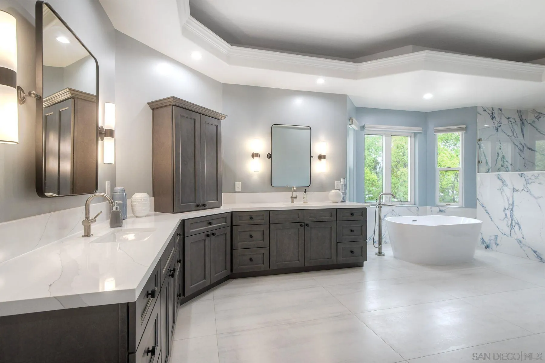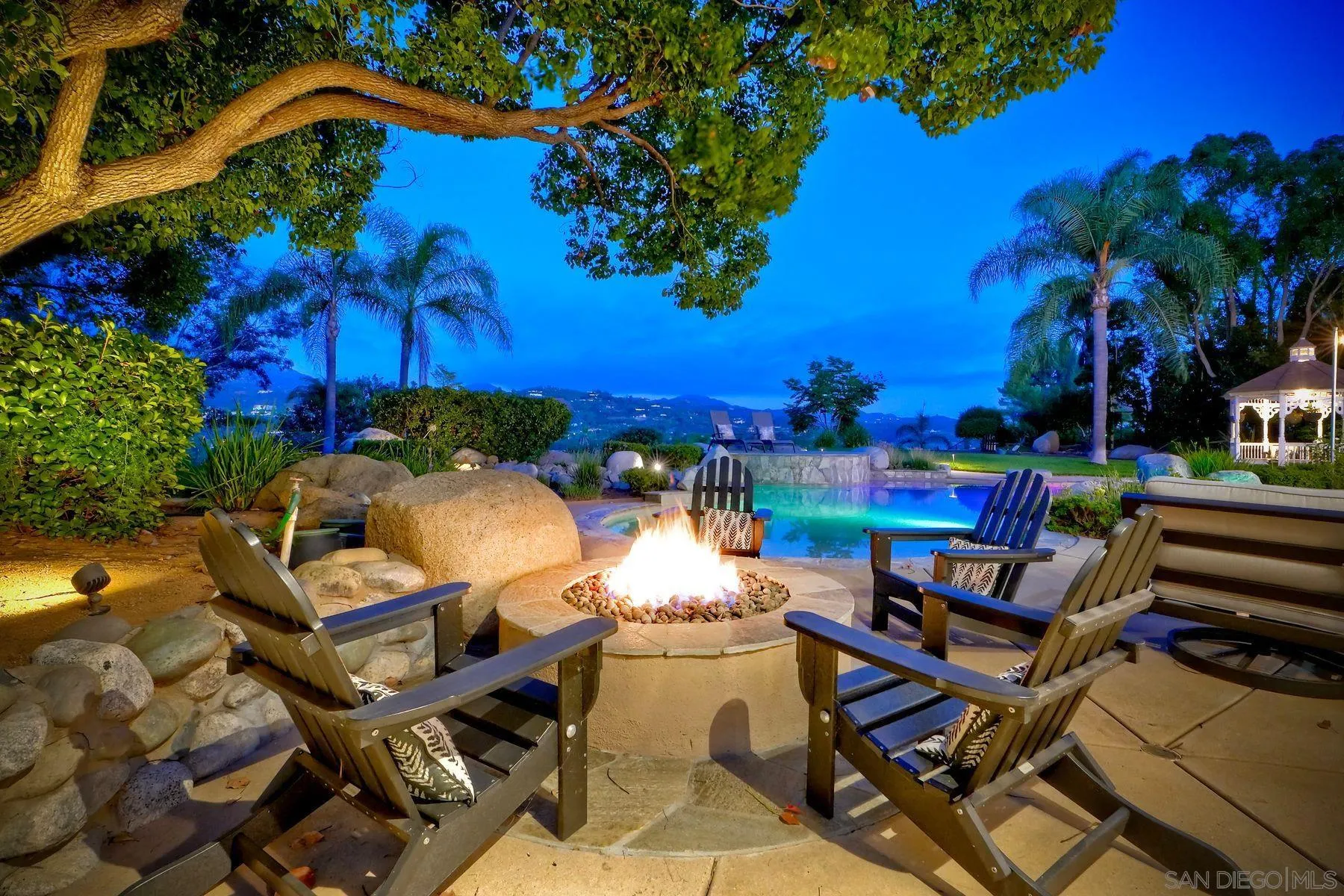 SIX Garages! One is a Large RV garage. Custom home on private 1-acre lot in Poway w/stunning views of Mt. Woodson! Beautifully updated 4,949 SqFt home offers 4bdrm, 4ba, & exceptional indoor-outdoor living. Resort-style backyard with pool/spa, firepit and built-in BBQ. Chef’s kitchen features high-end Viking appliances. Upstairs primary suite boasts newly remodeled bathroom, walk-in closet, & private balcony. Huge bonus: oversized 3 bay, detached RV garage fits a 34’ motorhome PLUS attached 3-car garage. Owned solar No HOA or Mello Roos. PUSD
