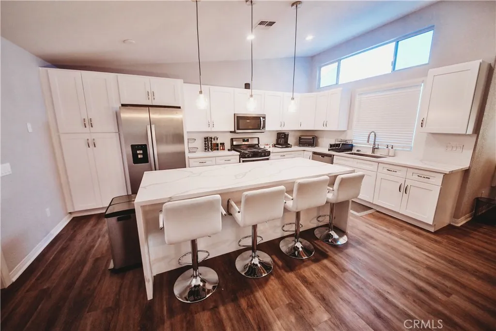 Come relax in a fully furnished renovated, open concept home on the golf course. Close by Coachella and Palm Springs. Not just another spot in the desert...The Bogart is on over a 1/4 acre lot, has a private pool, multiple seating areas, two fire pits, full game room and sits in the Indian Palms Country Club. Relax under the misters in the backyard, watch the golfers strike the ball, come play in the heated / cooled pool, watch a movie on the 85" big screen or sports on the two 65" TVs in the game room. The space Over 2400 square feet (including built out garage) all on one level of living space is available for use. You'll love the wide open feel of The Bogart, with the kitchen as one of the main focal points. While you're cooking, you can watch the latest movies or games on the 85" TV and share in the experience with others. Cheer on your favorite teams as they go head to head. The foosball table in the living area is centrally located so all can enjoy. There is also another lounge in the living room for you to relax. You can watch your friends swim in or just lounging by the pool or relaxing under the umbrella or overhang with the misters to keep them cool. You can also see others BBQing it up outside and having a great time at the huge outdoor island enjoying their favorite beverage. Huge grassy area outside keeps the ground cool under foot while playing a round of cornhole. The bedrooms inside are just as nice. Each room has a smart big screen TV if you want to get away from all the festivities. There are multiple board games in the bunk bed room and the young ones can