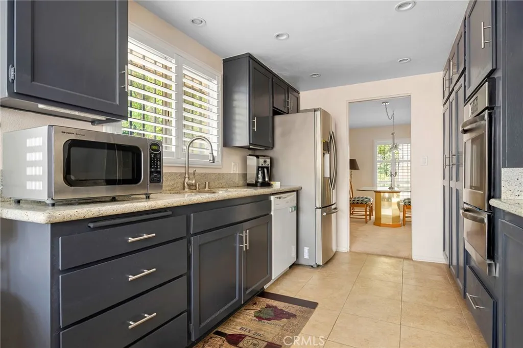Gorgeous end unit Toluca Lake Townhouse available for lease furnished or unfurnished. Elegant, with mid century vibe and wood shutters throughout. Open floor plan connecting the dining and living rooms with cozy den and sliders out to private patio. Den has a wet bar and built in shelves. Large galley kitchen has pantry, lots of cabinets and breakfast area with access to additional private patio. Counters are granite, appliances are stainless steel. Primary bedroom has double door entry, large walk-in closet, en-suite bathroom and a full make up area. Down the hall is an additional large bedroom with full bath. Oversized attached garage with additional storage and direct access to unit. Washer and dryer included in garage. Fireplace in living room is decorative.