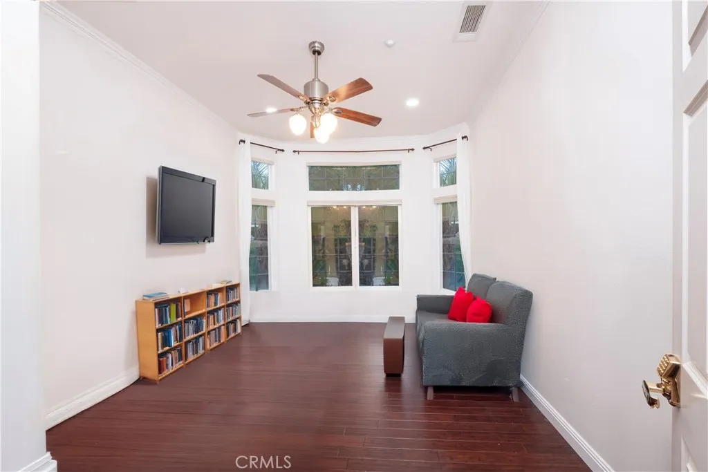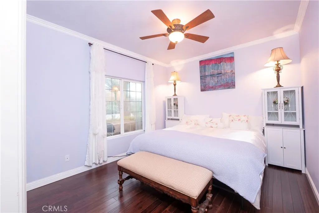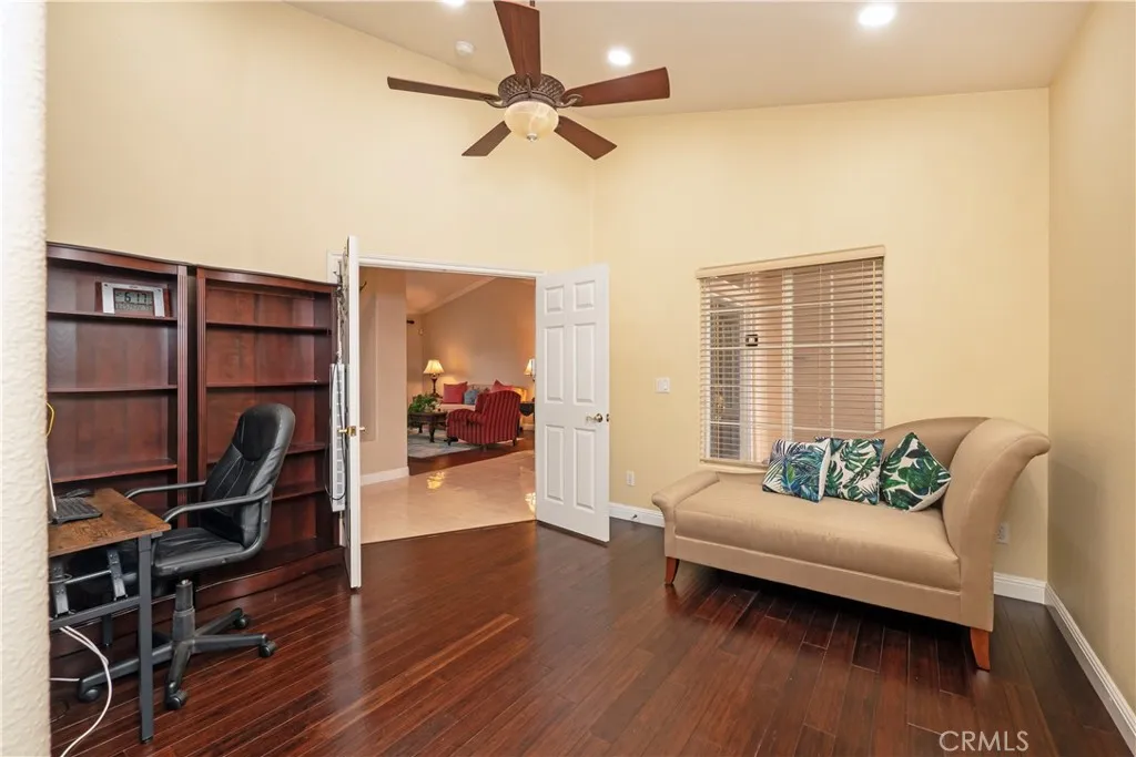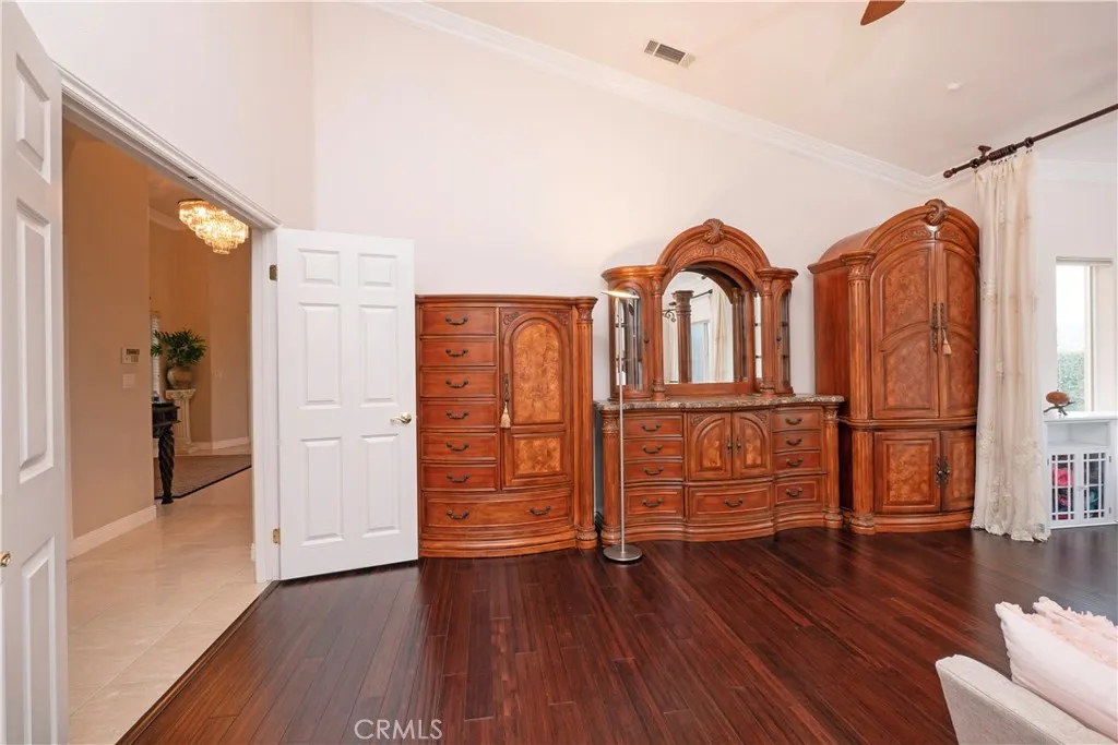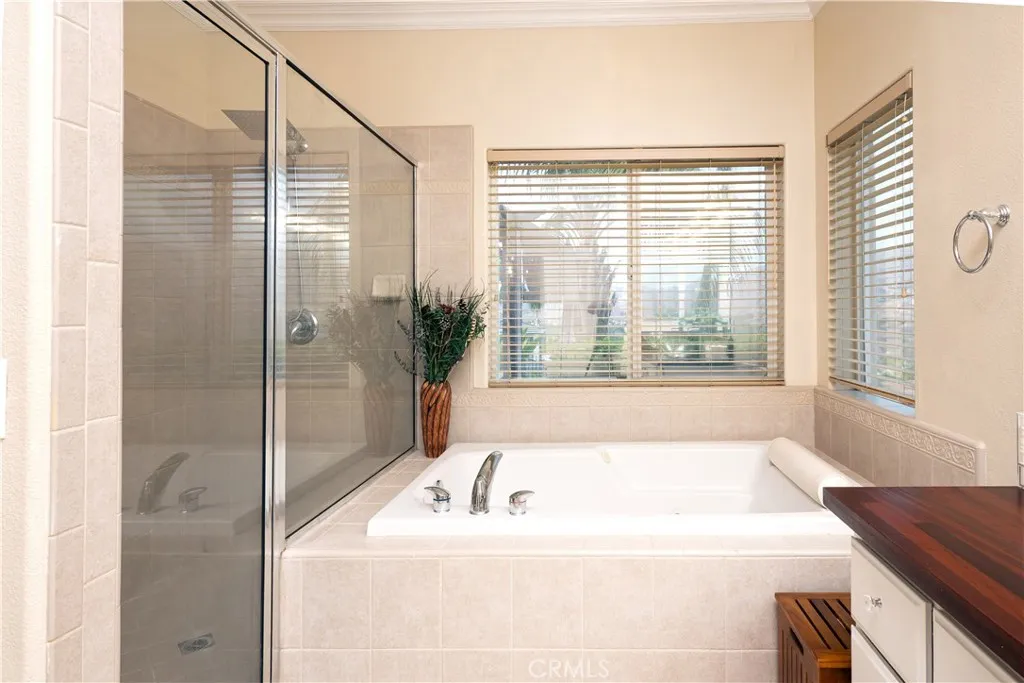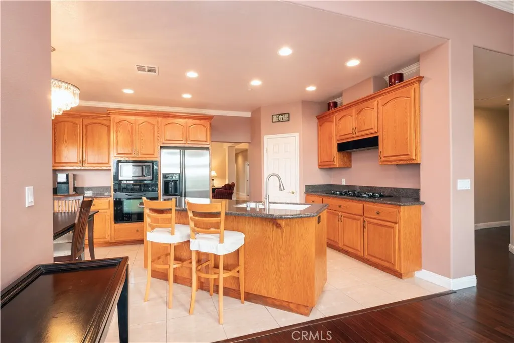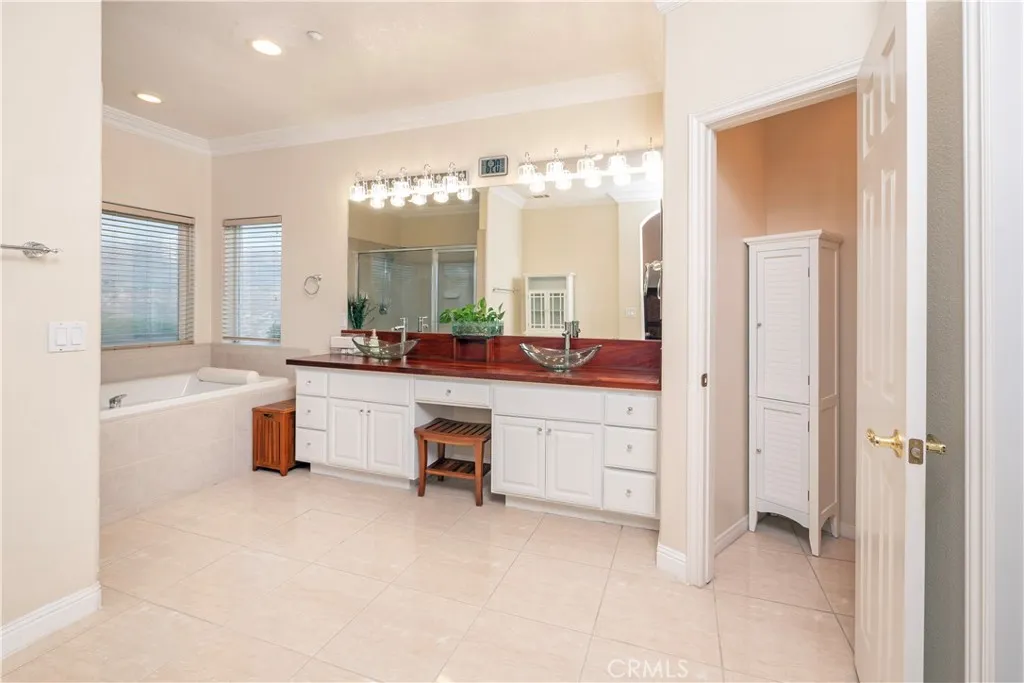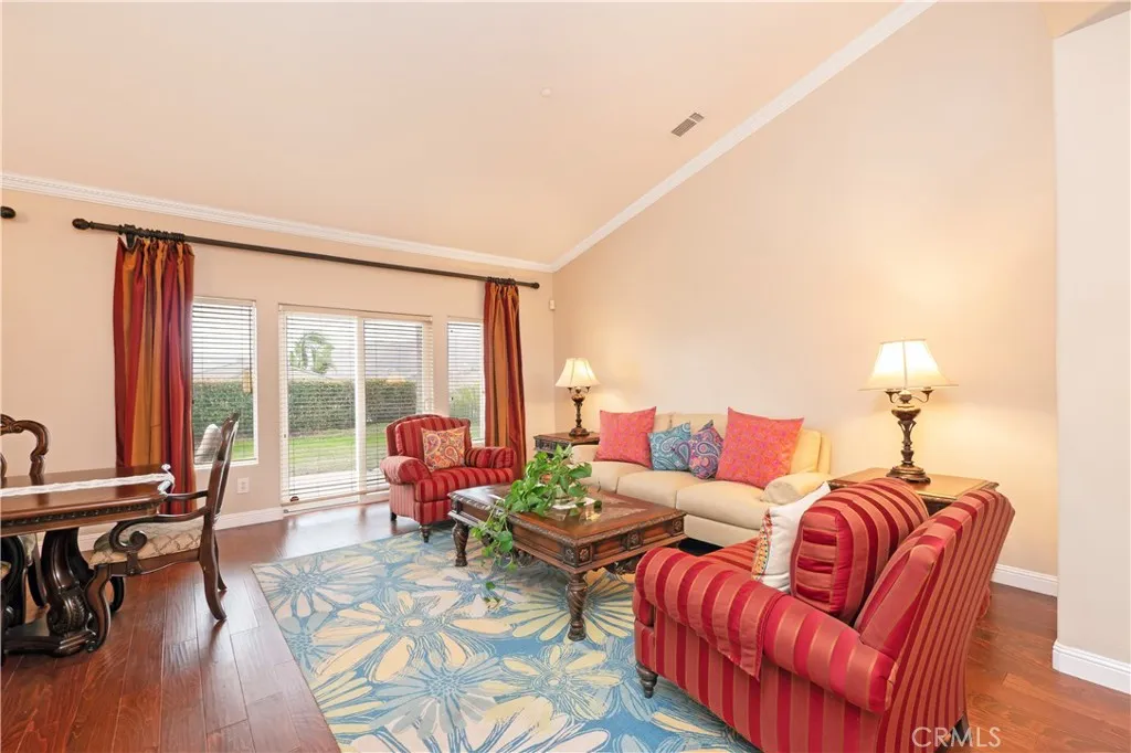 This stunning Canyon Crest Estates single-story home offers a perfect blend of comfort and elegance along with its breathtaking mountain and city light views that will captivate you from the moment you arrive. Step inside to find a beautifully designed home with vaulted ceilings, crown molding, porcelain tile and engineered hardwood floors that enhance the spacious living area. The large foyer and living/dining room offer beautiful backyard views and lots of natural light make the space ideal for entertaining guests. The open kitchen flows effortlessly into the family room with its fireplace and city light views; a perfect spot for casual gatherings or quiet evenings. With four thoughtfully designed bedrooms, including a primary suite that has a retreat and an ensuite with dual sinks, vanity area, jetted soaking tub and large shower. For those who work from home or need dedicated spaces for crafts or fitness, the two offices provide versatility and convenience. Embrace the outdoors with patios overlooking stunning views, waterwise landscape and a grove of citrus and avocado trees. Located just a stone's throw from Canyon Crest Country Club, you'll have access to premier golf, dining, and social opportunities. The convenience of a three-car garage with built-ins adds to the functionality of this luxurious property. Dont miss the opportunity to make this beautiful home your own.