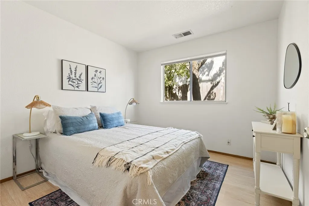 Tucked away in a quiet and welcoming North Chico neighborhood, this delightful home is the perfect blend of charm, comfort, and functionality. With 3 bedrooms, 2 bathrooms, and 1,374 sq. ft. of thoughtfully designed living space, it offers everything you need to feel right at home. Step through the front door and youll be greeted by a bright and open floor plan featuring beautiful laminate flooring, soaring vaulted ceilings, and soft, neutral paint tones that create a warm and inviting atmosphere. The spacious living room is a true focal point, offering plenty of room for gatherings and a cozy brick fireplace that adds a touch of character while making it the perfect place to curl up on cooler evenings. The kitchen is as cute as it is practical, designed to bring out your inner chef. Outfitted with tile countertops, ample cabinetry, a dishwasher, an electric range, and a breakfast bar for quick bites or morning coffee, its a space where function meets charm. Just off the kitchen, the dining area provides the ideal setting for both casual family dinners and more intimate get-togethers with friends. When its time to unwind, the primary suite delivers just the right balance of space and comfort. With its generous layout, nicely sized closet, and private en suite bathroom featuring a large vanity and a walk-in shower, its a peaceful retreat youll look forward to at the end of each day. Two additional guest bedrooms provide plenty of optionswhether you need extra sleeping space, a home office, or a cozy den. Additional highlights include ceiling fans throughout, a separate indoo