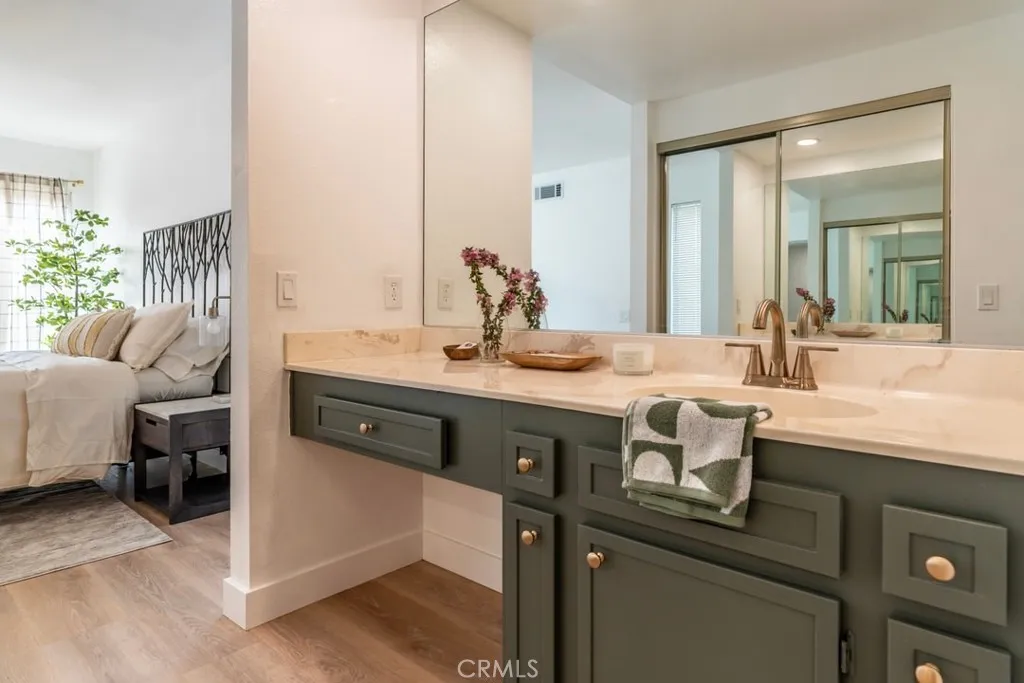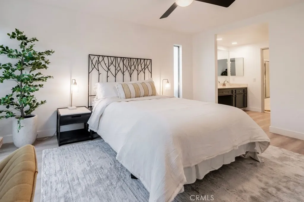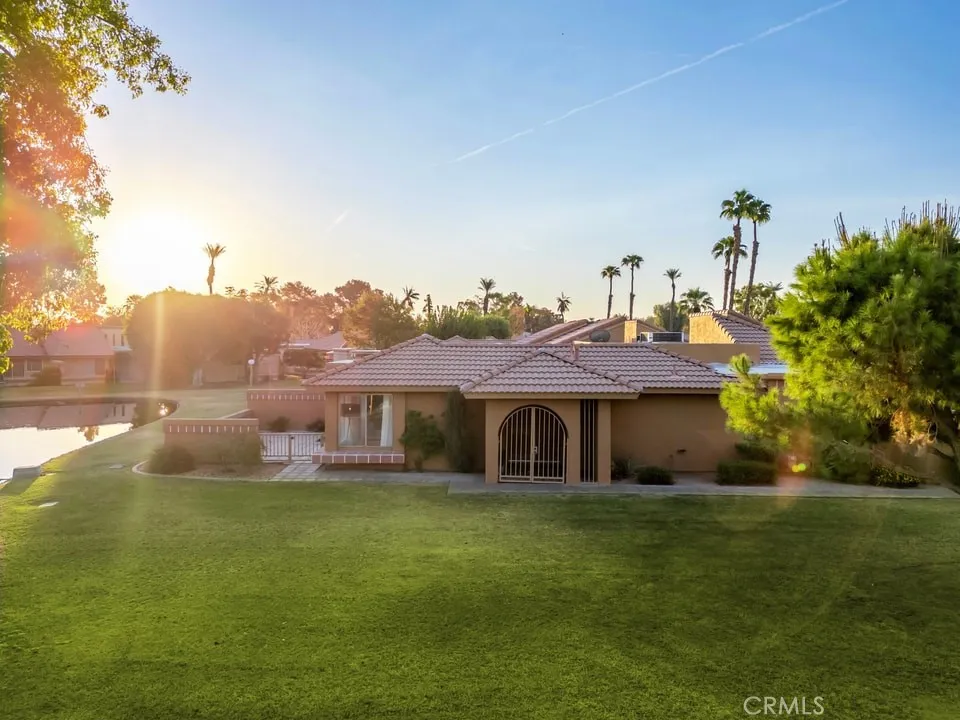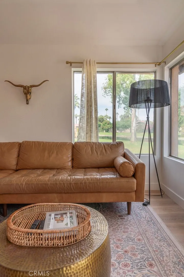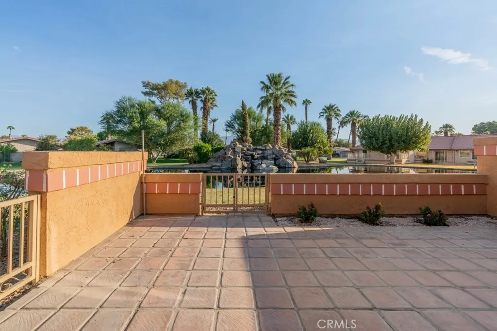 Nestled within the beautiful Indian Palms Country Club, this stunningly remodeled 2-bedroom, 2-bath condo offers a serene desert retreat. The open and spacious floor plan is flooded with natural light, accentuating the soft, modern interior touches throughout. Warm, ambient lighting has been added throughout the home, adding a cozy and inviting atmosphere to every room. A chefs dream kitchen boasts expansive counter space, perfect for cooking and entertaining. The large primary bedroom is a true sanctuary, featuring high vaulted ceilings, creating an expansive and open atmosphere, along with a generous walk-in closet. The second bedroom also includes a walk-in closet, providing ample storage space. Both bedrooms have the added convenience of a second vanity outside the bathroom, offering extra space and practicality. Both bathrooms have been thoughtfully remodeled with new tile floors, updated vanities, and stylish lighting, giving them a fresh, contemporary feel. Step outside to your private courtyard, accessible from both bedrooms, perfect for enjoying a good book or relaxing in peace. The back patio provides an ideal space to unwind, with the calming sounds of a lake and waterfall creating a tranquil ambiance. Additional amenities include a private garage and a covered, secure carport for convenience and peace of mind.