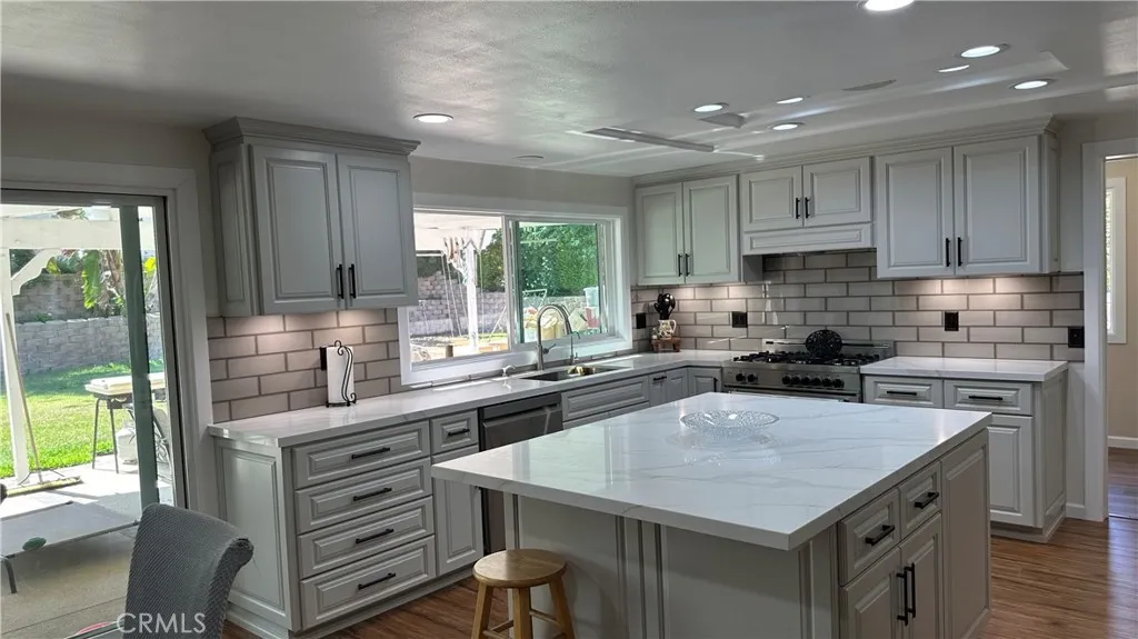 Single story ranch style home in north Upland at the end of a small Cul de Sac. This property offers 4 bedrooms, 2.5 baths with an open floor plan. Some of the features include all new double pane windows, new interior and exterior paint, new recessed lighting, speaker system through out the house, newer laminated flooring (except all bedrooms), beautiful CUSTOM kitchen cabinets with soft closing door and drawers, kitched aisland, quarts counter tops, under cabinet lighting, elegant back splash, new appliances, remodeled bathrooms, double gas water heaters, plenty of room for ADUs, 3-car attached garage, elegant wrought iron gate, 2 air conditioner units and sprinkler system on front and back lawns. Sellers finishing last touches. More pictures to come soon.