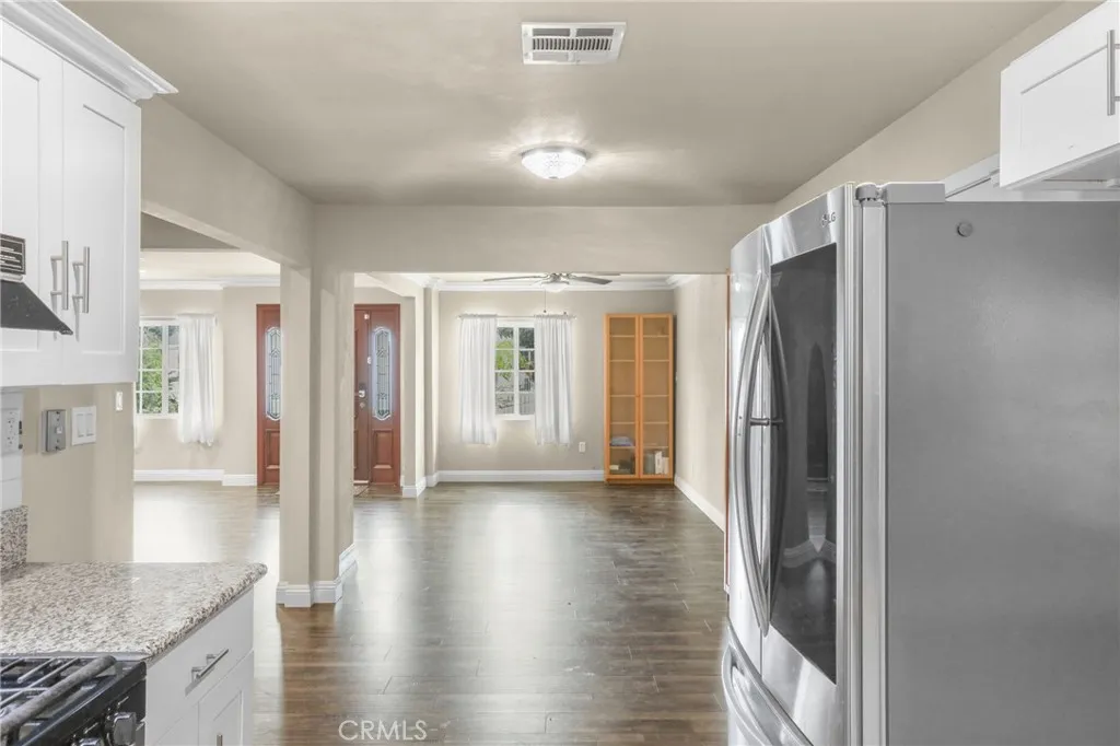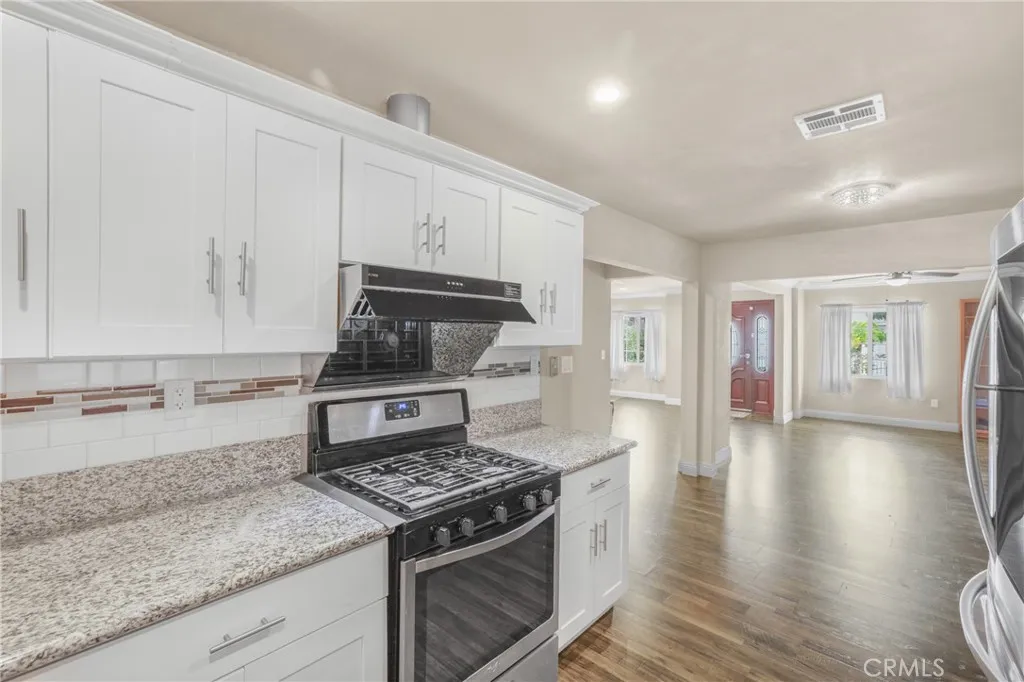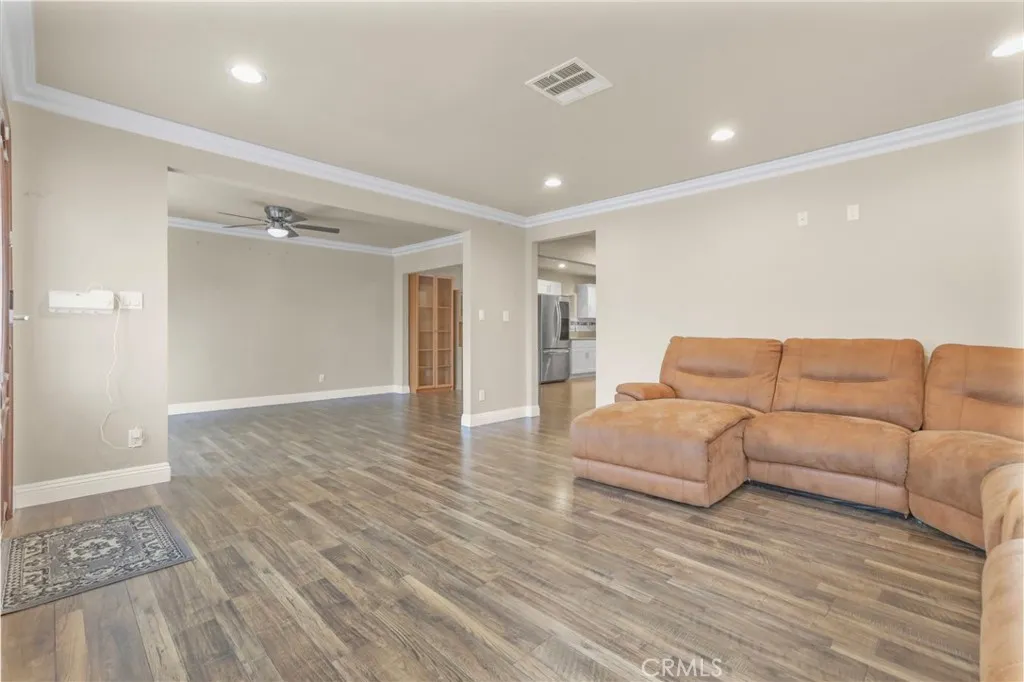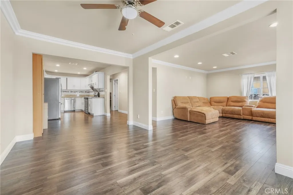 Charming single-story Paramount home available for lease! This turnkey 3 bed, 2 bath residence features an open-concept living and dining area with crown molding, laminate floors, and a remodeled kitchen with granite counters. Spacious bedrooms, updated bathrooms, and central AC/heat ensure year-round comfort. Enjoy a private backyard with fruit trees, a spacious covered patio, offering room for entertaining guests or outdoor dining. This home is equipped with Tesla solar panels (tenant assumes solar lease, helping lower utility costs). Conveniently located near schools, shopping, and freeway access.