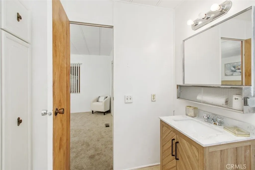 Step into this beautifully updated residence nestled within a secure and well-maintained gated neighborhood designed for active adults. You'll appreciate the convenience of your private carport, offering covered parking and protection from the elements. Whether you enter via the front steps or the accessible ramp, this home is thoughtfully designed to accommodate everyone. Inside, the primary bedroom offers a spacious retreat, perfect for rest and relaxation. The secondary bedroom is ideal for guests, a home office, or your favorite hobby space. A remodeled guest bathroom adds style and ensures the primary bathroom remains private. The laundry room features washer and dryer hookups along with built-in cabinetry for added storage. In the kitchen, you'll find newly painted cabinets paired with sleek quartz countertops. The dining room showcases an elegant China cabinet, adding charm and functionality. The family room boasts an open floor plan that seamlessly connects to the patio area. The fully landscaped and fenced backyard is a tranquil haven where you can relax and take in the natural surroundings.