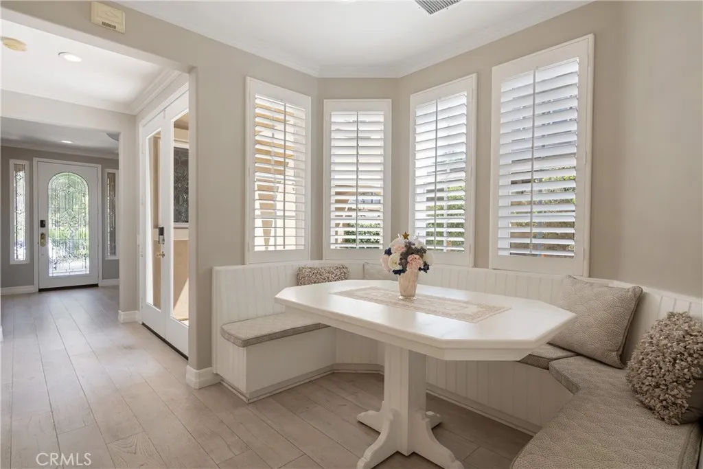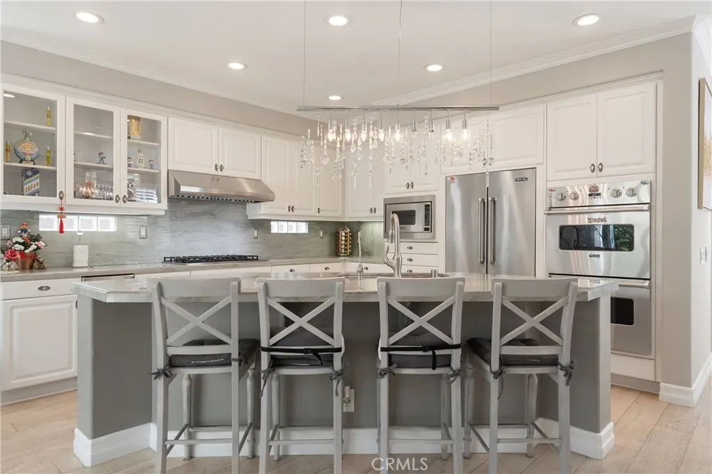 Gorgeous Home in the highly sought after 24-hr GUARD GATED community of NorthPark! As you enter the home, you will love the inviting open floorplan featuring soaring ceilings, hardwood flooring throughout, and lots of natural light. The recently remodeled CHEF'S KITCHEN is bright and airy, featuring a sit up center island, white cabinets, full backsplash, Quartz countertops, Viking stainless appliances, and a separate built in breakfast nook with table. The open kitchen overlooks the Gorgeous Great Room which features built-in media cabinets, a cozy fireplace with beverage cooler and direct access to your private backyard oasis. Step outside to discover the Professionally designed backyard with patio cover, built-in barbeque with cooking warmer, sit-up dining counter area, fire pit manicured softscape/hardscape with grass, flowers and fruit trees. With low HOA and Mello Roos, residents can indulge in the community's amenities including 5 pools, tennis courts, walking trails, and direct access to the acclaimed Hicks Canyon Elementary School. Conveniently located within walking distance to Orchard Hills Shopping Center, which includes Pavilions, Wells Fargo, and many dining options. Zoned for California Distinguished Tustin Unified Schools.