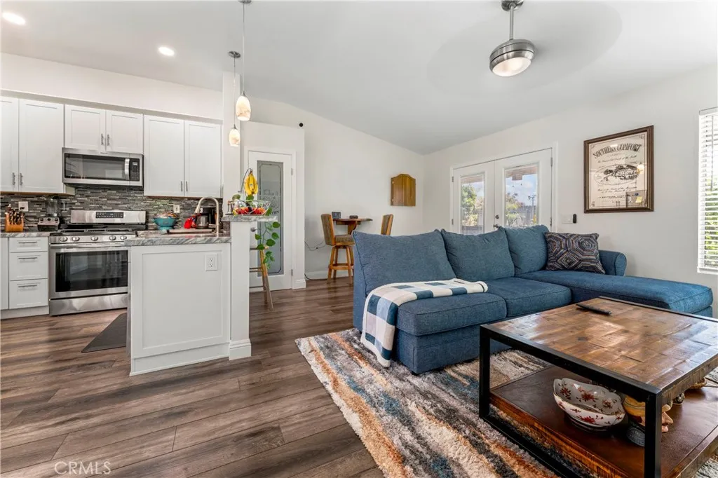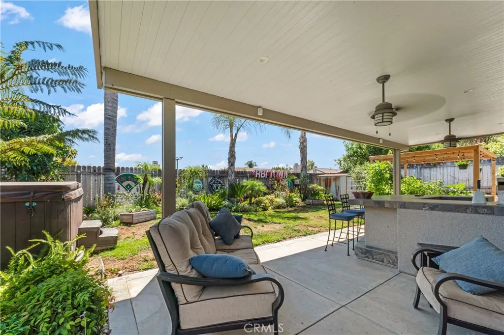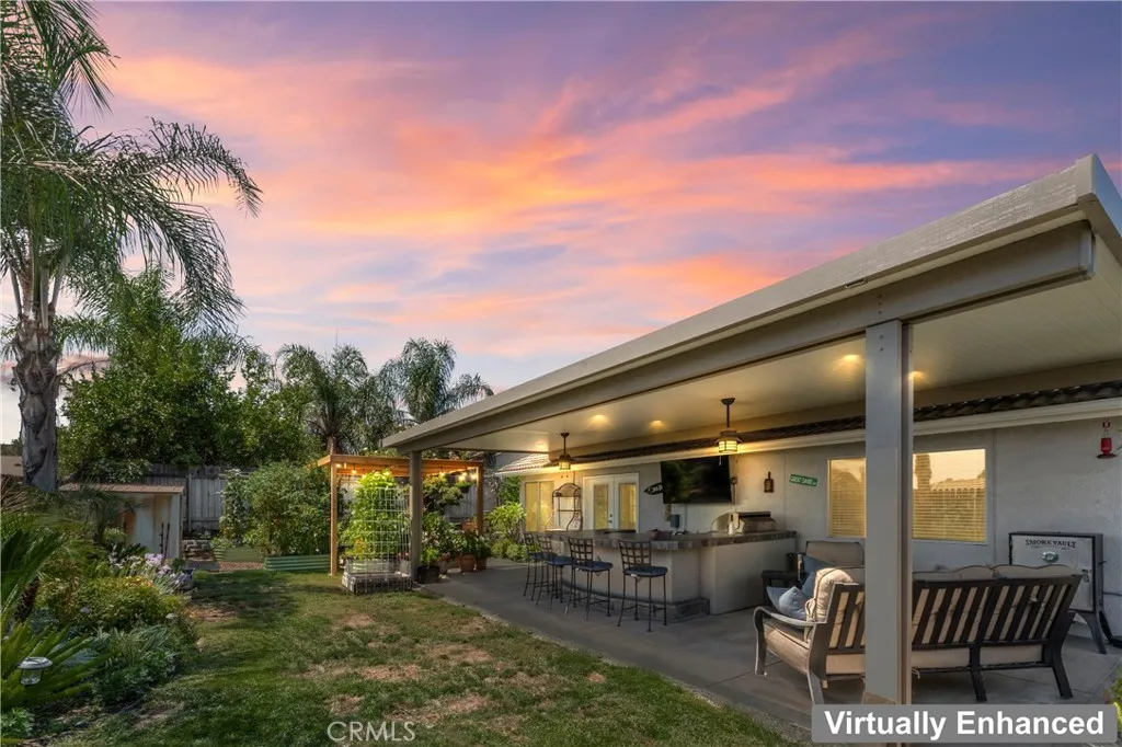 Gorgeous 3 bed, 2 bath single-story home in the popular neighborhood of Orangecrest in Riverside. Beautifully landscaped in front and back with a fruit and vegetable garden. Custom screened front door leads to Vaulted Family Room, Kitchen, Dining Area, and Living Room. Kitchen is updated with white floor-to-ceiling cabinets, stainless steel appliances, light grey quartz counters, and additional seating at the bar. Kitchen open to dining and family room and boasts a Pantry with floor to ceiling shelves. French doors and windows look out onto the backyard oasis which includes a covered patio, built-in outdoor kitchen with grill and bar seating, trellised vegetable garden, landscaped lawn, and a jacuzzi spa. Master suite includes double vanity and tub-in-shower. Remodeled, shared bathroom in the hall has a walk-in shower. Extra bedrooms have walk-in closets and double French doors lead from one of the bedrooms to the covered side patio. Ceiling fans throughout the home. Luxury Vinyl Plank flooring throughout with the exception of carpeted hall bedrooms and tiled master bath. Two-car garage and space on the driveway for small RV or extra vehicle. Solar to be paid off at close of escrow. Orangecrest community boasts two public parks, Community library and recreational center at Orange Terrace Park, and plenty of shopping and dining options in all directions. Yarrow Lane boasts breathtaking panoramic views of Box Hill Mountain Valley. No HOA and low taxes.
