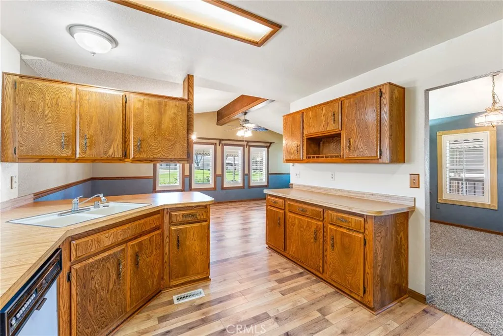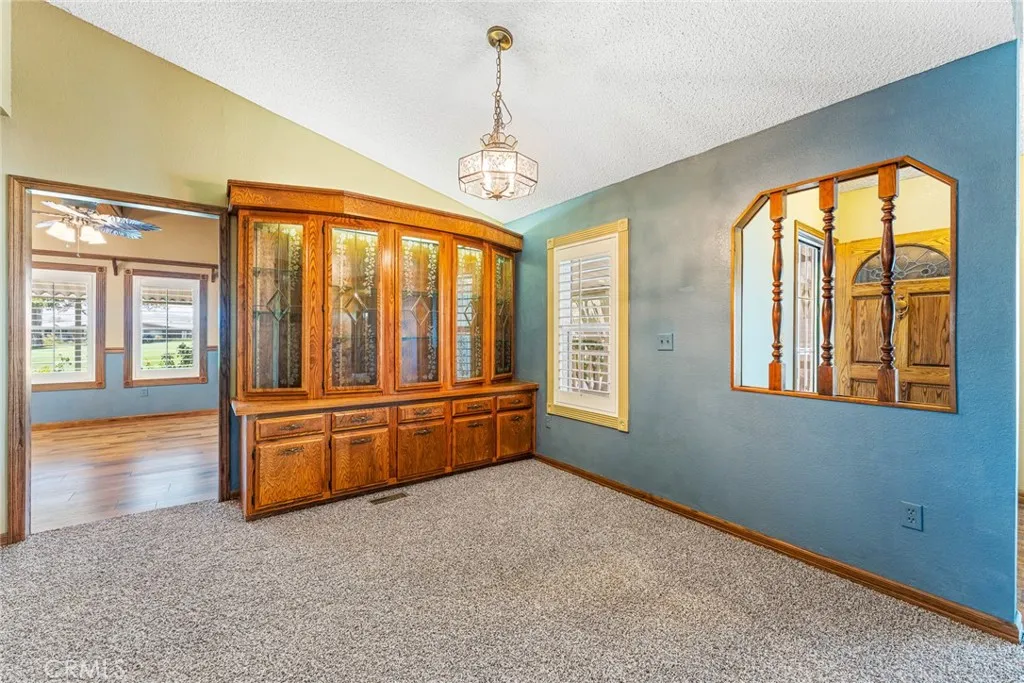 Step into a world of resort-style living with this exquisite triple-wide home, ideally situated right on the lush fairways of a picturesque golf course. With 3 spacious bedrooms and 2 bathrooms, this home is palatial with 1920 sq ft of roomy living space. Beautifully updated with new flooring throughout and soaring vaulted ceilings that create an inviting atmosphere. This home has all the "things": 2 separate and beautifully appointed living spaces. One with regal charm, vaulted ceilings, and formal dining, the other with rustic tones, complete with a stone, wood-burning fireplace. Ideal for holiday gatherings with family and friends. Enjoy the entertainment from the kitchen as you visit with your loved ones while cooking your favorite holiday meals in this open concept retreat! The kitchen is well-equipped and appointed to delight and not disappoint any culinary enthusiast. With tons of cabinet space, counter space, and custom pull-out pantry drawers, all of your chef's creations can come to life here. The primary suite is a true retreat, featuring a luxurious walk-in closet and a spa-like bathroom complete with a soaking tub and double sinks, perfect for unwinding after a long day. Versatility shines in the bonus room, enhanced by charming French doors, ready to serve as your home office, den, or creative space. Step outside to the stunning wrap-around porch, where you can sip your morning coffee while enjoying serene views of golfers teeing off just beyond your doorstep. This home also includes two handy storage sheds and new outdoor carpeting, ensuring you have all the