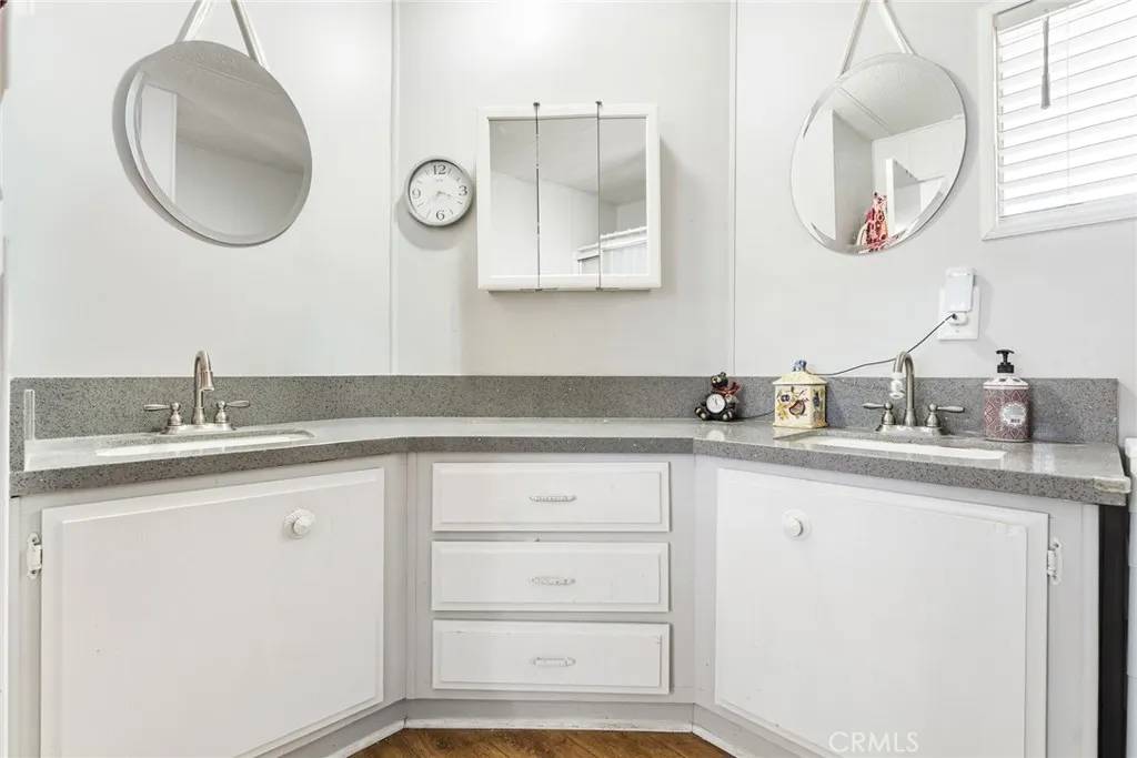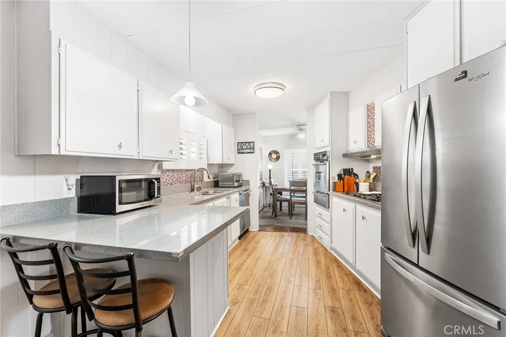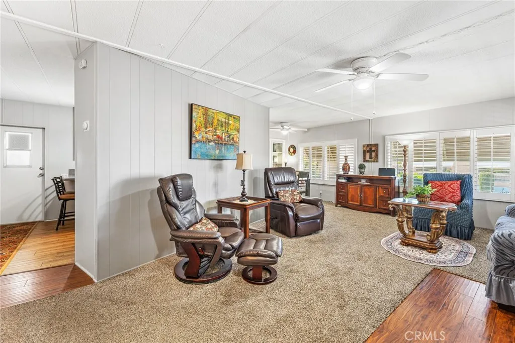 Step into your dream retreat with this stunningly renovated 2-bedroom, 2-bath mobile home that perfectly blends modern luxury with the charm of a vibrant 55+ golf resort community. From the moment you enter, youll be greeted by a fresh canvas of new paint and sleek flooring, accentuated by elegant plantation shutters that invite natural light to dance through the space. The heart of this home is a brand-new kitchen, featuring stainless steel appliances and exquisite Corian countertops, making it a chefs paradise where culinary creations come to life. Enjoy the convenience of indoor laundry and a custom cut-out rug that protects the beautiful faux wood flooring. Retreat to the chic primary suite, a true sanctuary boasting double sinks and vanities in a spa-like bathroom that whispers relaxation. Embrace the joys of outdoor living on your charming renovated front porch or in the darling backyard, complete with a rustic farmhouse vibe and welcoming wood fence and gates. With a roof thats only 7 years old and an AC and water heater that are under 10 years, peace of mind is yours. Located in The Lakes at Hemet West, youll have access to a wealth of amenitiesfrom five shimmering lakes and cascading waterfalls to state-of-the-art pickleball courts and scenic walking trails. Engage in lively social events at the updated clubhouse, enjoy games of billiards or shuffleboard, and revel in live music and dancing that build a true sense of community. This is not just a home; its a lifestyle of friendship, fun, and tranquility waiting to be embraced. Dont miss your chance to experience th