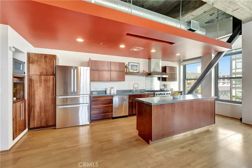 Experience New Yorkstyle loft living at the iconic Insurance Exchange Building, a historic 1925 Beaux Arts gem in the heart of Downtown Long Beach. Listed on the National Register of Historic Places and part of the coveted Mills Act tax abatement program; this architectural treasure blends timeless character with modern luxury. The corner-unit loft showcases dramatic featuresoriginal exposed brick and mortar walls, soaring ceilings with concrete beams, and expansive north- and west-facing windows that flood the space with natural light and city views. Industrial details like exposed ducts pair seamlessly with high-end finishes, creating the perfect urban retreat. The gourmet kitchen is designed for both function and style, offering a massive island, granite countertops, custom walnut cabinetry, recessed lighting, and premium stainless steel Viking range. The spa-inspired primary bath includes dual vanities, a two-person rain shower, and a deep jetted jacuzzi tub, while a separate powder room provides added convenience for guests. Additional highlights include central heat and A/C, in-unit laundry, a custom walk-in closet, secured fob entry, private parking (terms apply), and a personal storage room located just outside your front door. Situated along the lively Promenade, this loft places you steps from the citys best dining, shopping, and entertainment. The Marina, Shoreline Village, Convention Center, Aquarium of the Pacific, Performing Arts Center, and Arts District are all within easy reach, along with public transit for commuters. This is a rare chance to own a piece o