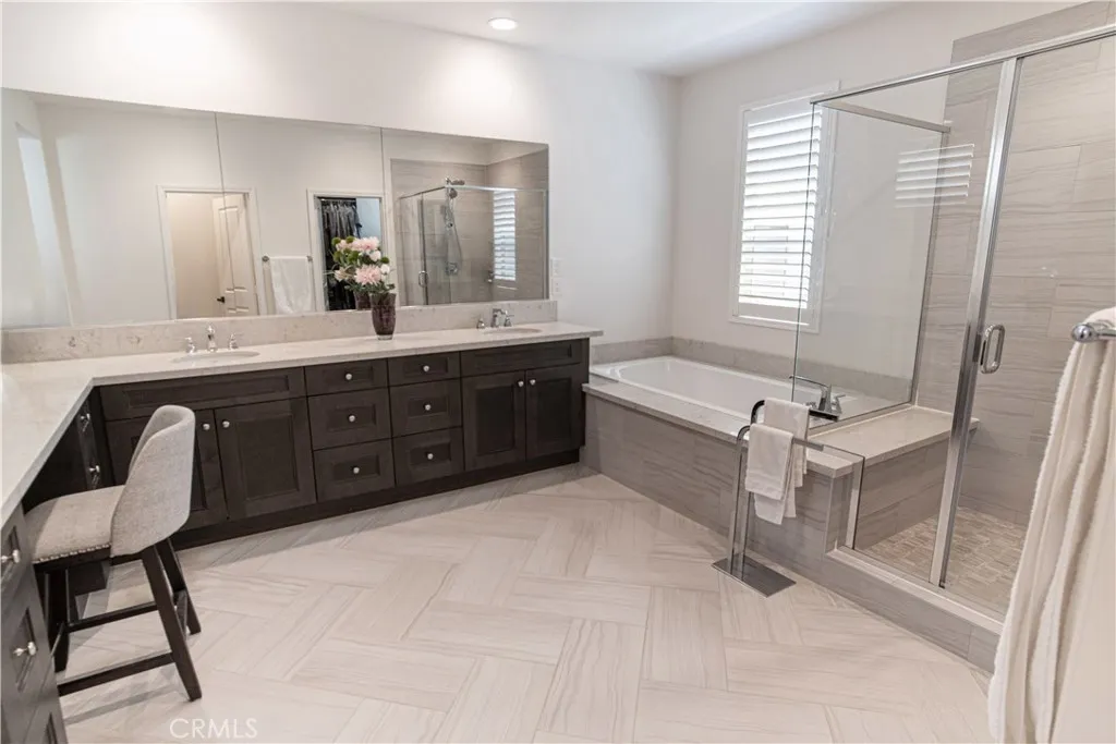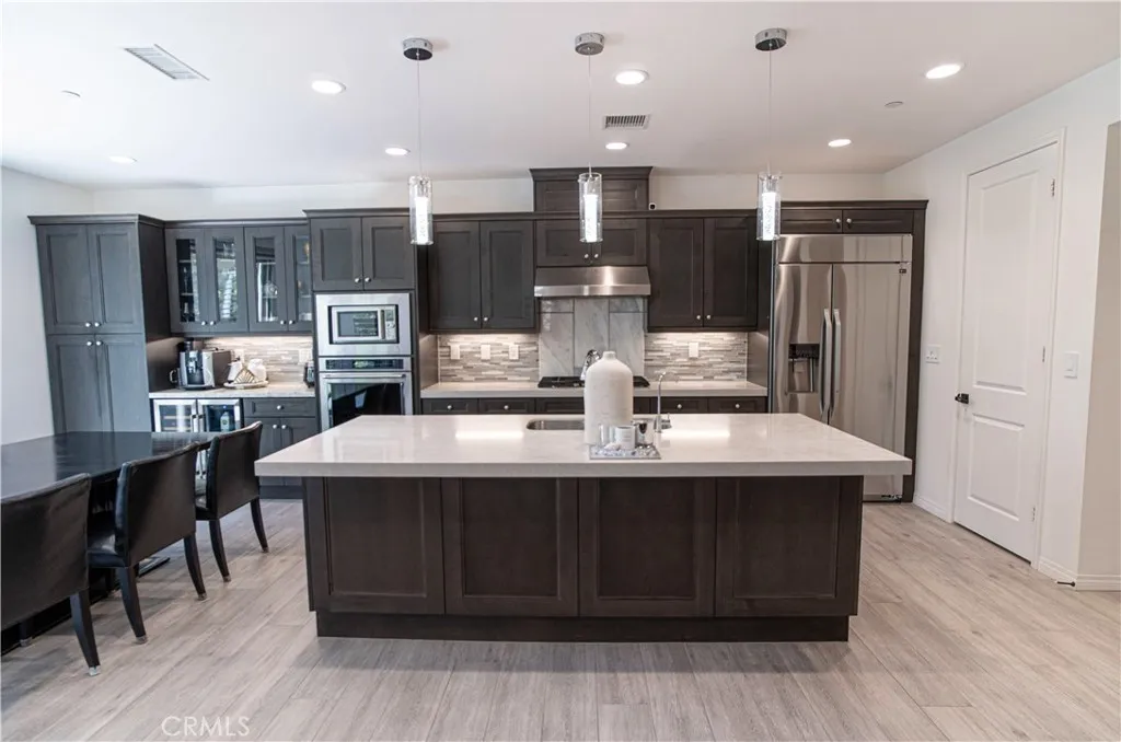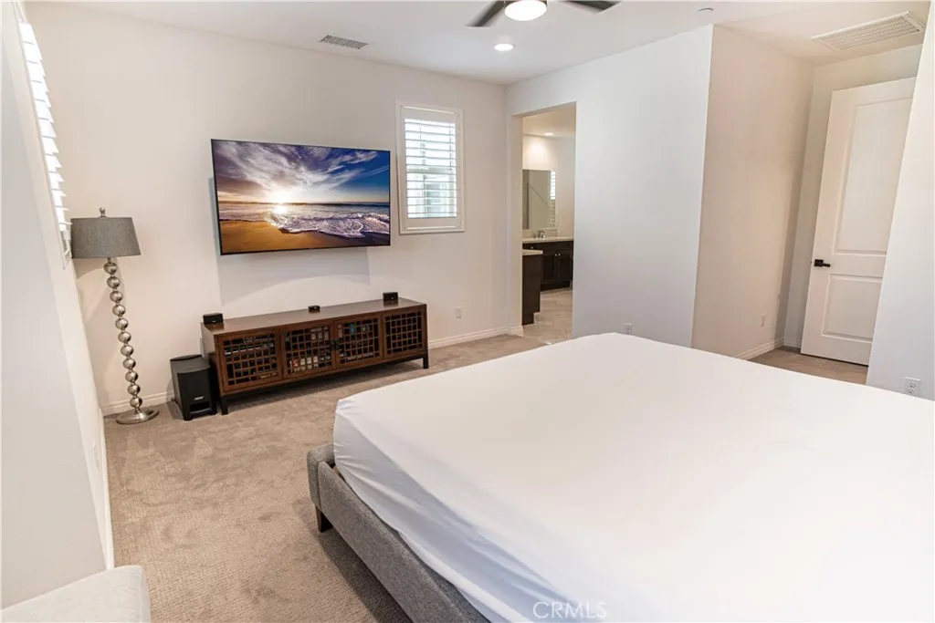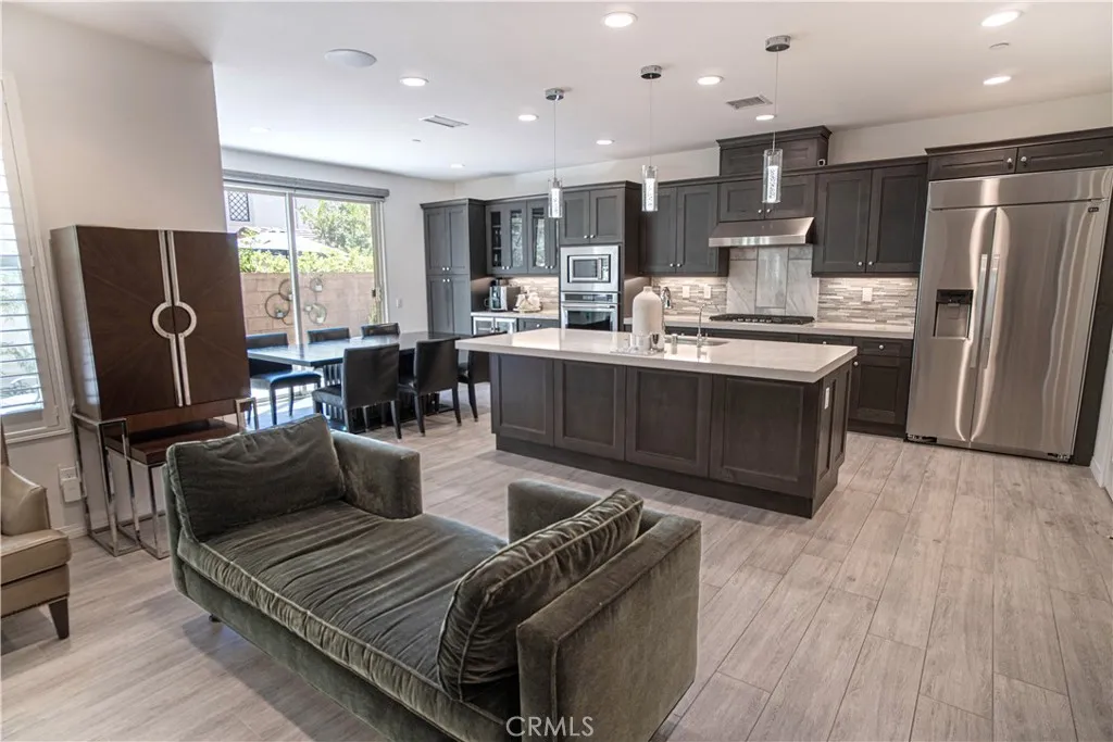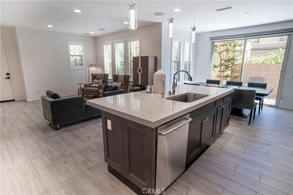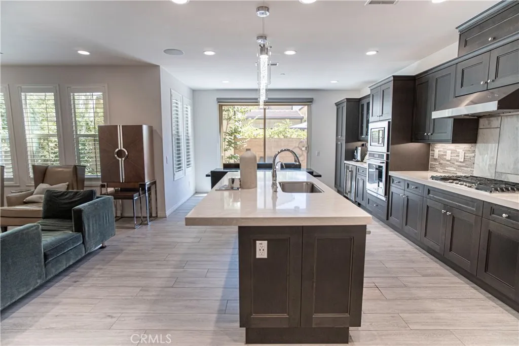 Step into this beautifully upgraded 4BD, 3BA residence offering 2,237 SQFT. of elegant living space in the sought-after community of Portola Springs. The bright, open layout welcomes you with expansive windows and stylish flooring throughout the main level. Perfect for entertaining, the living and dining areas seamlessly connect to the chefs kitchen, which features Quartz countertops with a full designer backsplash, a center island with bar seating, stainless steel appliances including a 5-burner cooktop, built-in wine cooler, and a spacious walk-in pantry. Every detail has been thoughtfully curated from plantation shutters and custom paint to recessed LED lighting, ceiling fans in each bedroom, a tankless water heater, and built-in garage storage. The luxurious primary suite with walk-in closet, and spa-like bath with dual vanities, separate makeup station, soaking tub, and oversized shower. The home also offers a main-floor bedroom with a full bath, ideal for guests or multi-generational living. Enjoy California indoor-outdoor living with a private patio perfect for gardening, relaxing, or dining al fresco. Residents of Portola Springs enjoy resort-style amenities, including sparkling pools and spas, parks, tennis and basketball courts, and playgrounds. Conveniently located near award-winning schools, shopping, dining, and entertainment, this home offers both elegance and everyday convenience