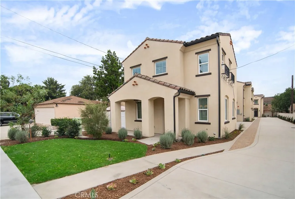 If you missed this property, the first time don't delay it closed escrow 1-24-2025 and is now up for sale again (absolutely no problems with the house buyer made other plans and this home has been very lightly lived in). Almost New Bowden Development built Townhouse style condominium. Front unit #A features open floor plan with living room and dining area just off the stylish kitchen boasting stainless steel appliances, quartz countertops with tiled backsplash and Shaker Style Cabinets. Convenient downstairs powder room and direct access to the 2 Car garage are a plus. Upstairs features include spacious primary suite with dual sinks and walk-in closet plus 2 additional bedrooms and another full bath Jack & Jill style and an individual laundry room with cabinet space. Additional amenities include central air and heat, recessed lighting, ceiling fans and carpet in bedrooms, dual pane windows sliding door to private rear patio and vinyl fencing for privacy. Best of all fully paid Solar panel system. Light color pallet with great natural light and waterproof vinyl plank floors and professionally landscaped grounds makes this a must see and have now! Pictures are from earlier this year, and the unit is currently not staged. 1,324 square foot interior built in 2024 $253.25 Monthly HOA