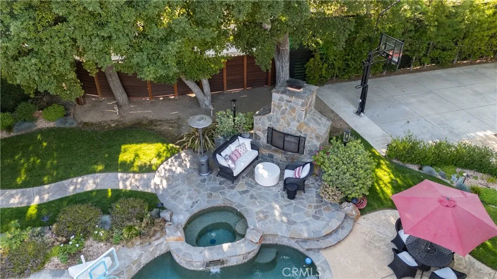 Unmatched Excellence * Nearly $400,000 spent upgrading this Stunning Compound over the last 5 years * One Story with huge Game Room over completely finish 3 Car Garage * Huge Corner lot approaching of an acre * Additional detached Completed 1 BR Guest unit (ADU), with additional 3 Car Garage and Workshop * Entertainers Dream Yard w/Sparkling Pool/Spa, Waterfall, Huge Stone/Masonry Fireplace, Built-in BBQ with tons of patio space, covered patio, BBall Court, all surrounded by a Park Like Yard of Grass, Trees, Flowers, and Oaks * Inside includes a beautiful Main Suite with Fireplace and Spa Like Bath * 3 additional good sized bedrooms * The Huge Game Room could be an additional 5th BR or In-Law Retreat with its own Private Bath, Wet Bar, 120 Inch Theater Screen, Patio Deck and Stairway down to the yard *Custom Wood Floors throughout * Spacious FR with Massive Custom Wood Burning Fireplace & 77 Inch Theater Screen just off the Designer Kitchen w/Viking Range along with all additional High-End Appliances * Upscale and very roomy Formal Dining * Custom, Window Treatment, Granite, Tile, Doors and Light Fixtures throughout provides character and class at every turn * One of the finest features is being able to enjoy the beautiful pool and yard from the all Newer Windows which also makes the interior very Light and Bright * The Guest House is a fully functional 1+1 approx. 650SF with walk-in closet making it a possible rental or multi-gen use * For the Baseball Fans a fully functional Batting Cage * Besides the 6 Garage Spaces there is tons of parking for RV, Boats and Toys * Newe
