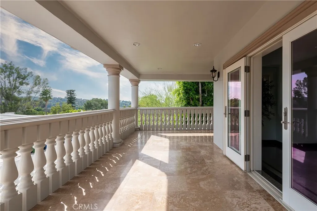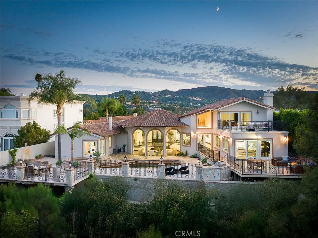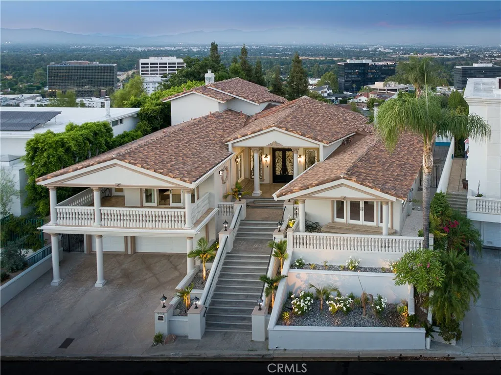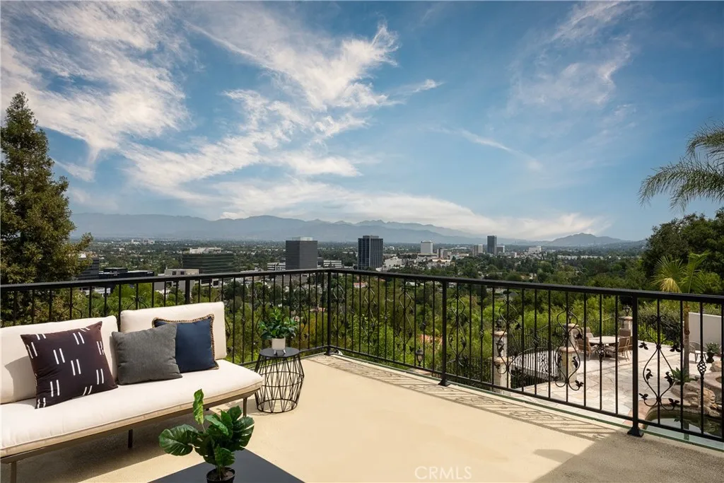 Perched above Ventura Boulevard in the highly desirable Encino Hills on a quiet cul-de-sac. Prominently positioned on an elevated lot with jaw-dropping 180-degree valley views, this exceptional 2-story home features over 5,600 square feet of living space, 5 bedrooms, and 7 bathrooms. A dramatic formal entry features soaring ceilings, a striking dome with a stunning chandelier, and three oversized windows perfectly framing the panoramic valley views. The main level showcases bright and expansive living spaces, filled with natural light and finished with granite floors throughout. A gourmet kitchen outfitted with a Viking cooktop, Sub-Zero refrigerator, generous cabinetry, and ample counter space opens to the living and dining areas, ideal for entertaining. The main level also offers multiple bedrooms and flexible living arrangements. The primary suite is spacious and serene, featuring the incredible views, a walk-in closet, and a luxurious spa-like en-suite bathroom. A spiral staircase leads to a private loft-style suite with its own bathroom, closet, and balcony ideal for a guest retreat, home office, or media room. The backyard is an entertainers dream, completely private and thoughtfully designed with a resort-style PebbleTec pool and spa, an outdoor shower, and an expansive patio with multiple balconies to enjoy the view. Other highlights include an oversized 5-car garage with an EV charger and ample storage space. Located in the highly coveted Lanai Road School district, and near many top-rated private schools. Close to premier shopping, dining, and entertainment along