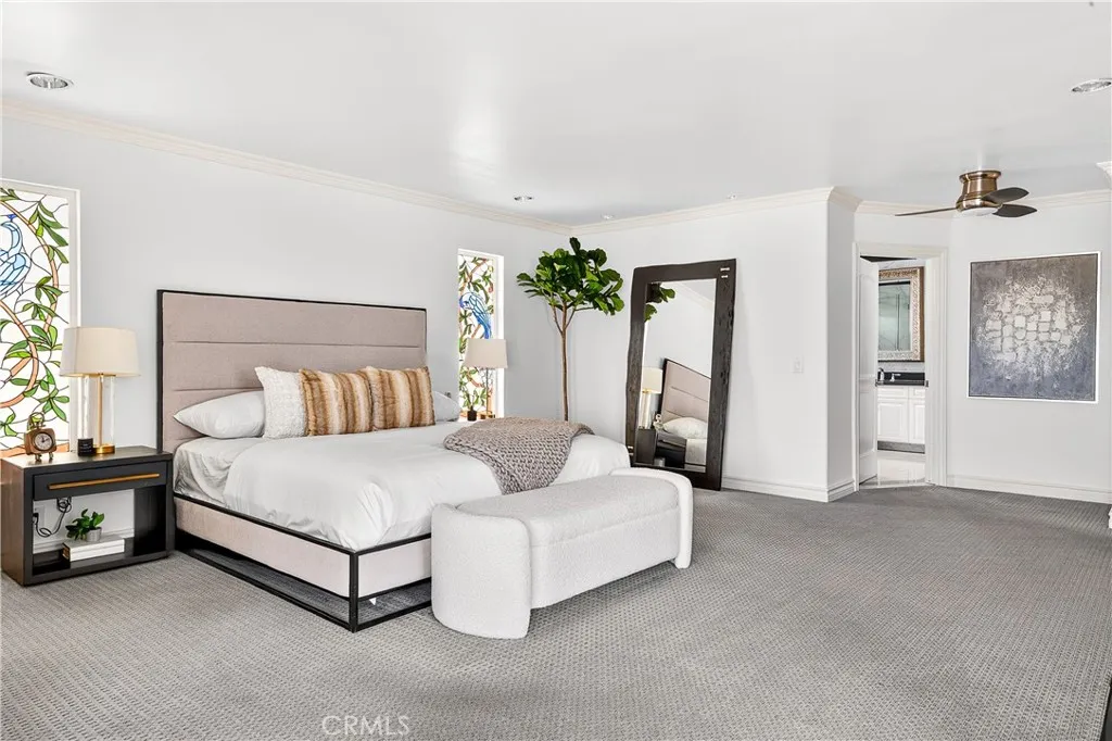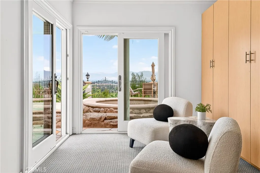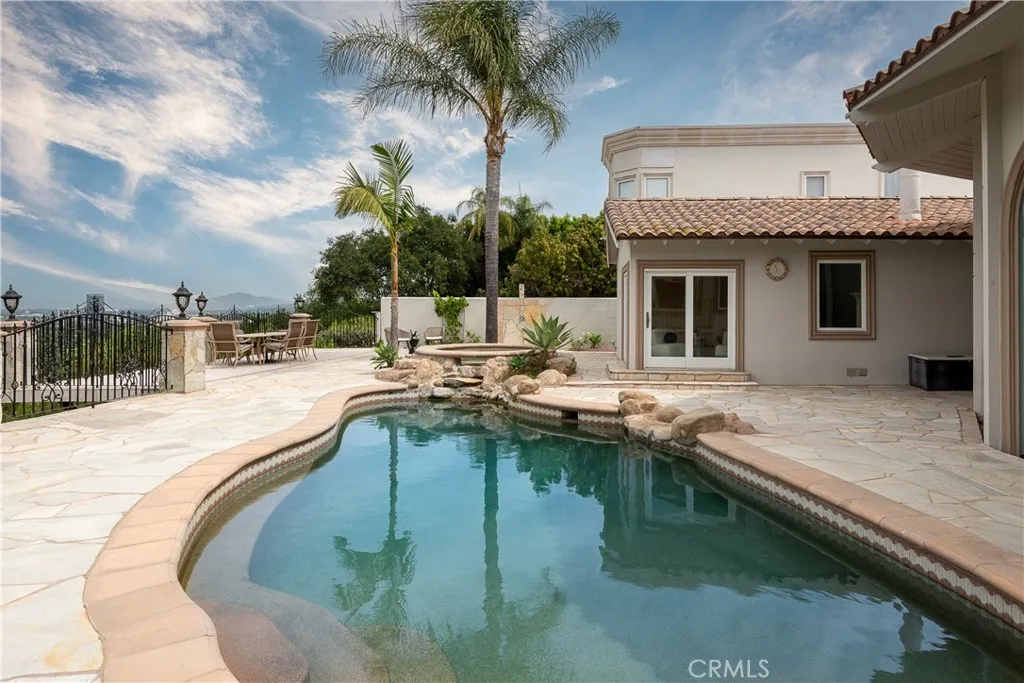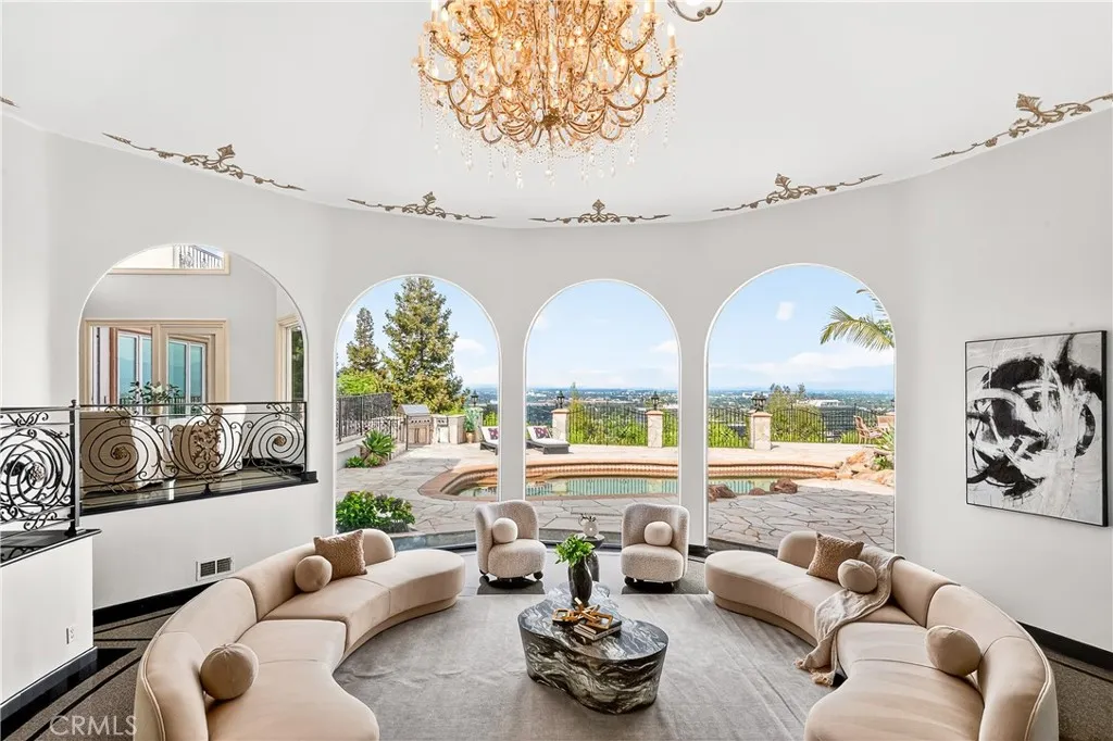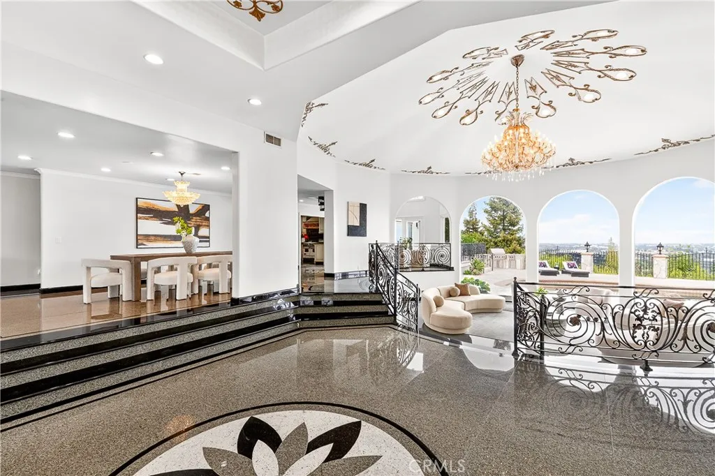 Perched above Ventura Boulevard in the highly desirable Encino Hills on a quiet cul-de-sac. Prominently positioned on an elevated lot with jaw-dropping 180-degree valley views, this exceptional 2-story home features over 5,600 square feet of living space, 5 bedrooms, and 7 bathrooms. A dramatic formal entry features soaring ceilings, a striking dome with a stunning chandelier, and three oversized windows perfectly framing the panoramic valley views. The main level showcases bright and expansive living spaces, filled with natural light and finished with granite floors throughout. A gourmet kitchen outfitted with a Viking cooktop, Sub-Zero refrigerator, generous cabinetry, and ample counter space opens to the living and dining areas, ideal for entertaining. The main level also offers multiple bedrooms and flexible living arrangements. The primary suite is spacious and serene, featuring the incredible views, a walk-in closet, and a luxurious spa-like en-suite bathroom. A spiral staircase leads to a private loft-style suite with its own bathroom, closet, and balcony ideal for a guest retreat, home office, or media room. The backyard is an entertainers dream, completely private and thoughtfully designed with a resort-style PebbleTec pool and spa, an outdoor shower, and an expansive patio with multiple balconies to enjoy the view. Other highlights include an oversized 5-car garage with an EV charger and ample storage space. Located in the highly coveted Lanai Road School district, and near many top-rated private schools. Close to premier shopping, dining, and entertainment along