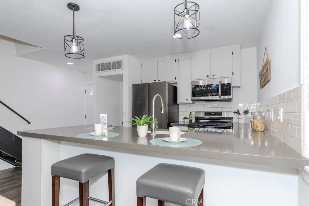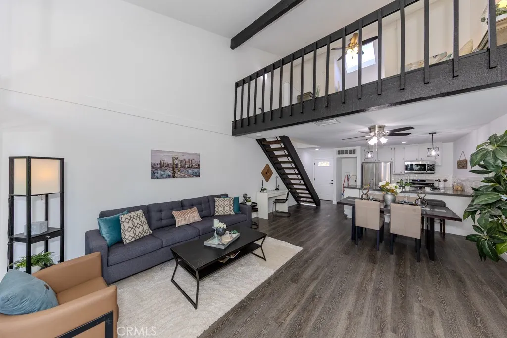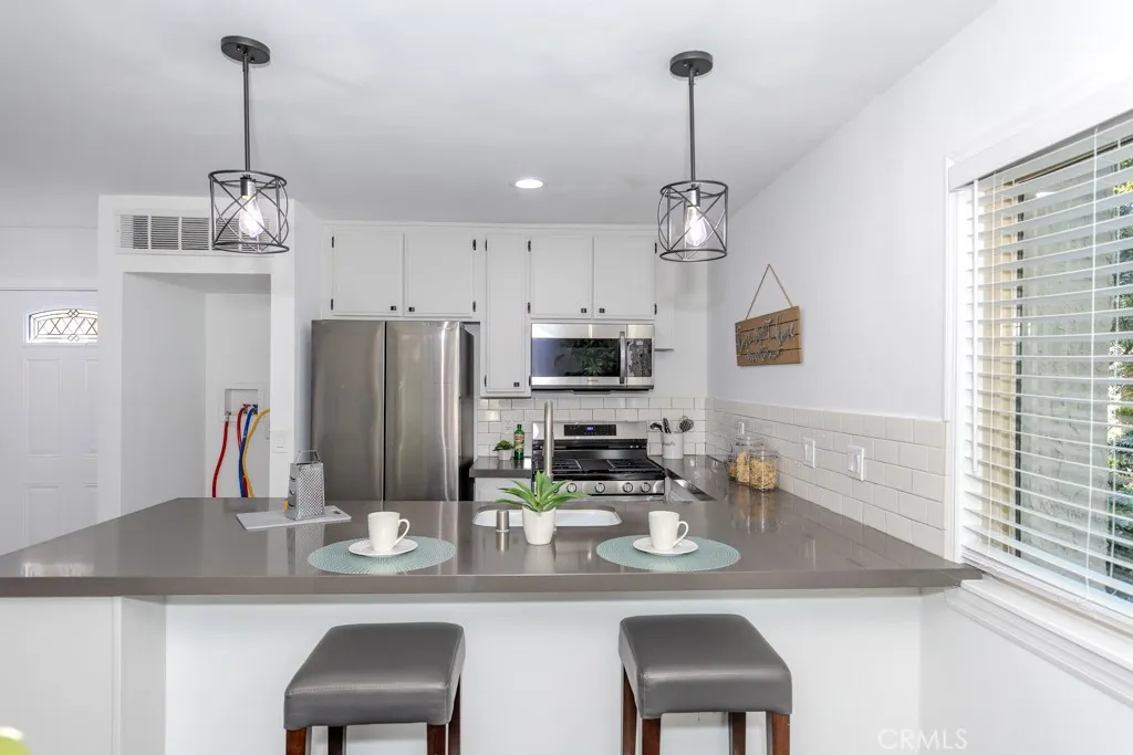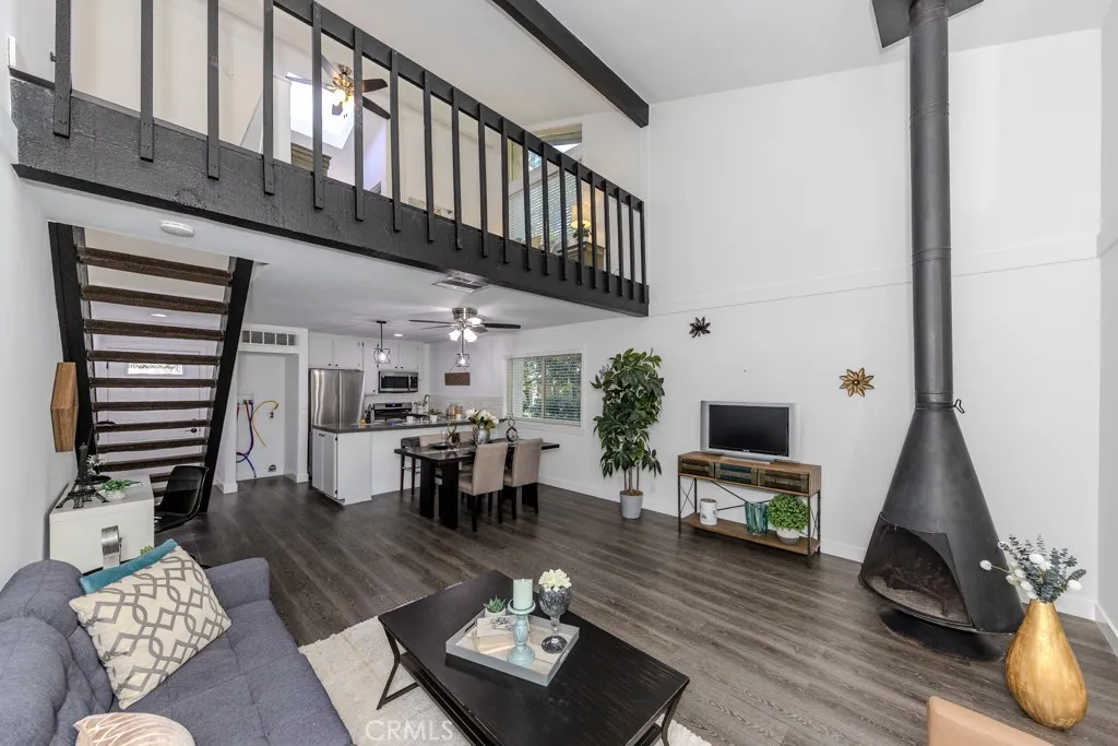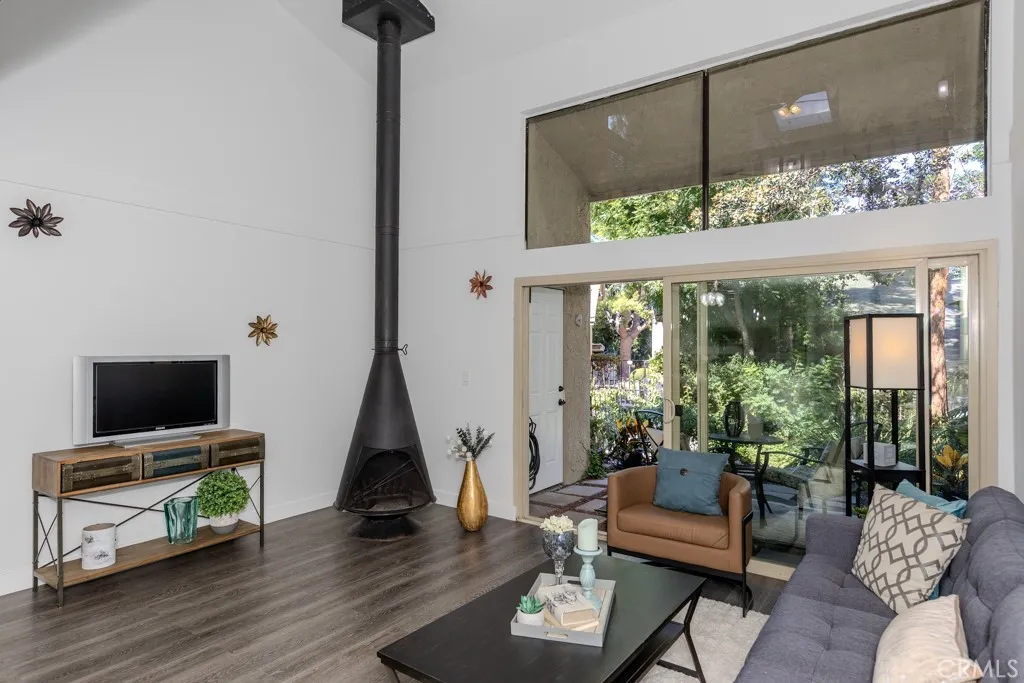 Highly Desirable End Unit, Light and Bright, Open Floor Plan, Cathedral Ceilings, No One Above or Below You. Relax and Enjoy the View of Ponds and Sounds of Trickling Water from this Charming Condo! Have Your Morning Coffee Overlooking the Streams and Walking Bridge, Surrounded by Nature and Lush Foliage from Your Patio. It's Great to Way to Start Your Day as You Take in the Serenity Nestled in this Wonderful Little Tree-Lined Hideaway Filled with Waterfalls, Lakes and Streams Giving You the Feel of a Mountain Escape. Enjoy the Peaceful Views of Nature in this Charming 1 Bedroom & 1 Bath Loft Style Condo . Upgraded Double Pane Windows and Sliding Glass Door. Remodeled Kitchen with Quartz Countertops, Laminate Wood Flooring, new stainless steel appliances, Dishwasher, Oven, Refrigerator, Washer and Dryer! Breakfast Bar in the Kitchen With a Great View of All This Natural Beauty. Cozy Up With a Unique Wood Burning Fireplace. Also, comes with forced Air Heating and Central Air Conditioning. This Unit is One of the Best Locations in the Complex Only Steps Away From Laundry Room and Mail Room and Parking. Other Featured Amenities Include Tennis Courts, Sauna, Pool and Spa.This Certified Wildlife Habitat has Ducks, Squirrels,Turtles, Koi Fish & an Occasional Egret. You'll Find Walking Paths Throughout with Breathtaking Views of Nature Without Ever Having to Leave Your Complex. Welcome to Orange Lakes! Close to Shopping, Dining, Peters Canyon, Old Town Orange, Chapman University and Disneyland. Absolutely A Must See!!