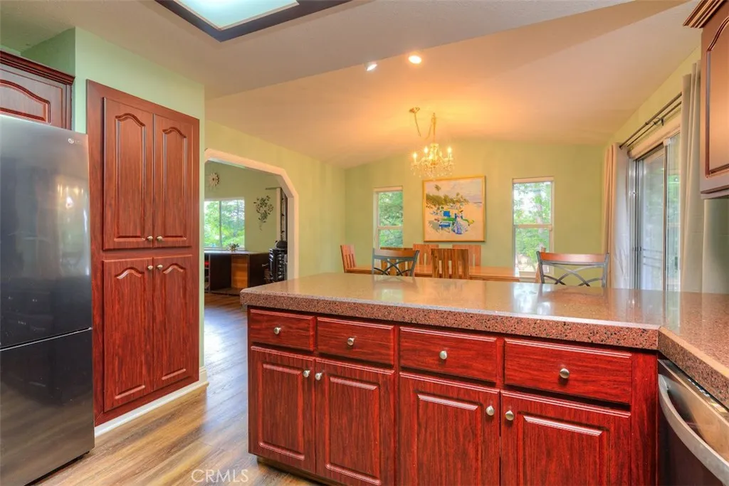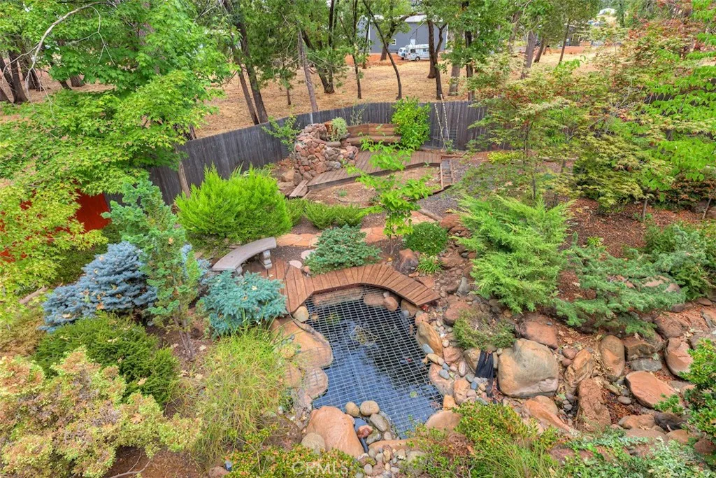Beautiful, Comfortable & Well-Cared-For Home in Magalia! Tucked away at the end of a quiet cul-de-sac, this beautiful custom home has been lightly lived in and lovingly maintained. The warm, open floor plan welcomes you in with a spacious living room, large windows that capture the surrounding forest views, and a charming free-standing wood stove...perfect for cozy evenings. The dining area flows easily into the spacious kitchen, which showcases several cabinets, granite countertops, and nice appliances. The bedrooms are roomy, and the generous primary suite offers direct access to the expansive composite deck overlooking the serene backyard. This property is beautifully landscaped front and back, complete with a koi pond, lush greenery, and a striking rock waterfall that creates a peaceful ambiance. Enjoy plenty of under-house storage, window blinds and treatments, mirrored closet doors, ceiling fans in most rooms, and other thoughtful details throughout. Backs to the greenbelt, offering added privacy and the enjoyment of all nature has to offer right from your own yard. A truly special home ready for its next chapter!