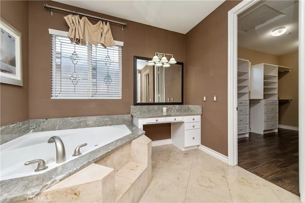 Welcome to 16483 Gala Ave an exceptional lease opportunity in the highly sought-after Southridge neighborhood of Fontana. This beautifully upgraded former model home features 4 spacious bedrooms, 2.5 bathrooms, and over 2,800 sq ft of elegant living space. From the moment you enter, you'll be impressed by the soaring high ceilings, crown molding, plantation shutters, and travertine tile flooring throughout the main level. The expansive great room, complete with a cozy fireplace, flows seamlessly into the gourmet kitchenan entertainers dreamfeaturing premium built-in KitchenAid stainless steel appliances, granite countertops, a large center island, walk-in pantry, and a built-in wine cooler. Upstairs, enjoy the versatility of a spacious loft, ideal for a home office or media room. Retreat to the luxurious primary suite offering a private balcony, spa-inspired bathroom with dual vanities and soaking tub, and an oversized walk-in closet. Additional highlights include luxury hardwood floor throughout the whole house, recessed lighting, built-in audio speakers, an upstairs laundry room with utility sink, and an attached 2-car garage. The low-maintenance backyard is perfect for entertaining, with a partially covered patio for year-round enjoyment. Conveniently located near top-rated schools, shopping, dining, and with easy access to the 10, 15, and 60 freewaysthis home combines luxury, comfort, and convenience. Don't miss your chance to lease this stunning homeschedule a tour today!