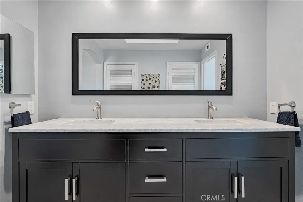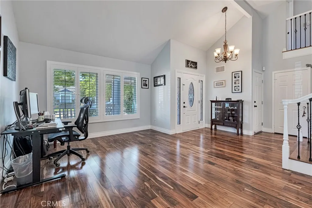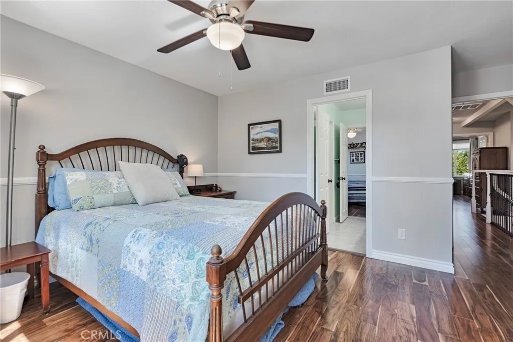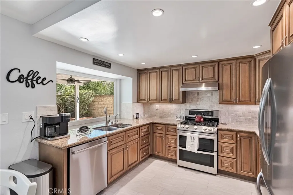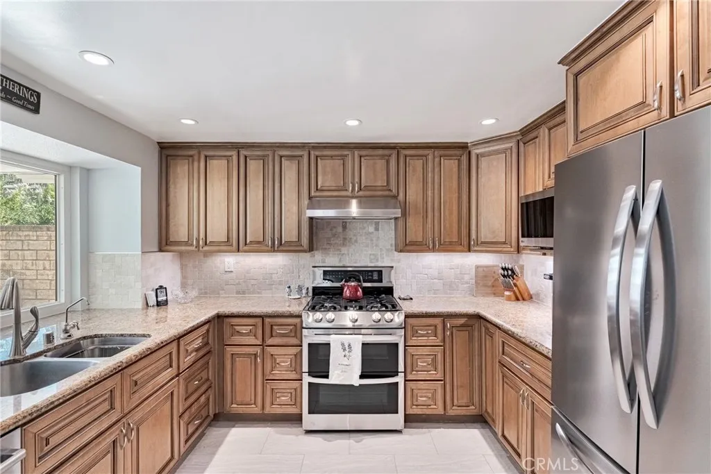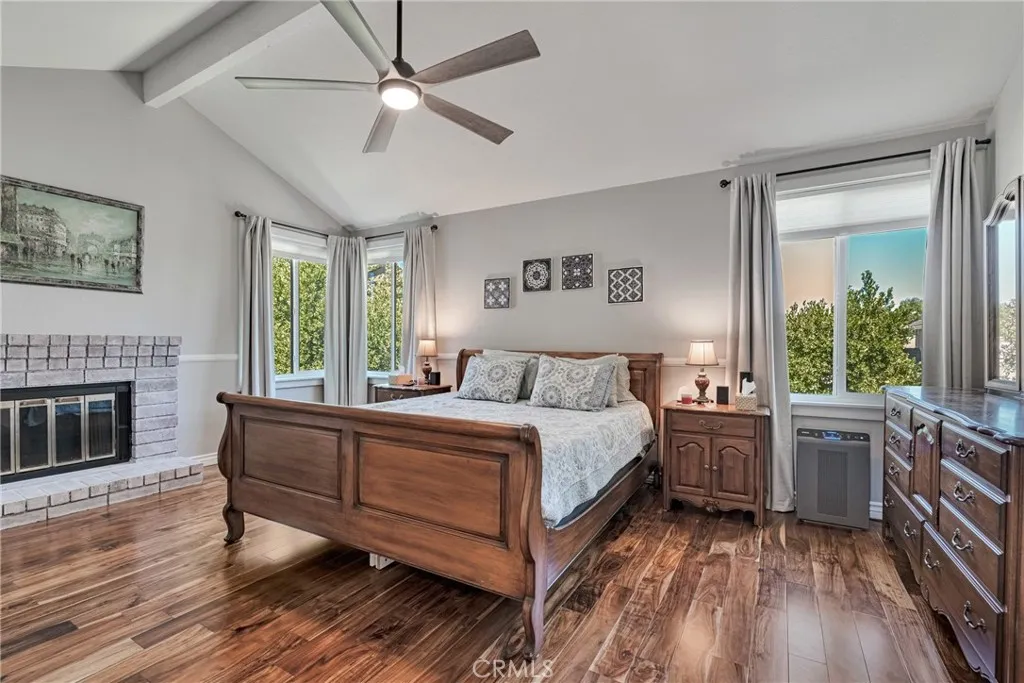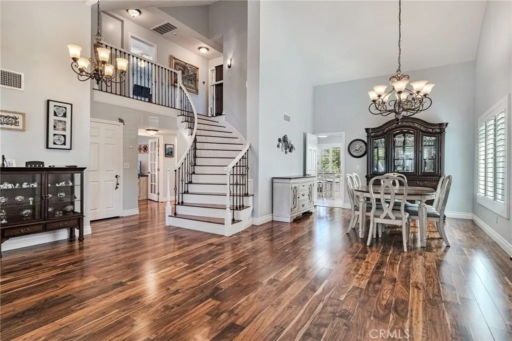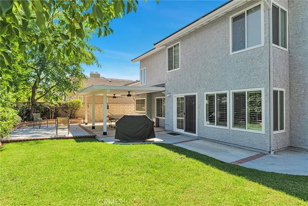 **INCREDIBLE PRICE IMPROVEMENT!!** Perfectly situated on a private cul-de-sac in the desirable Heritage community, this beautifully renovated Westport model is just steps from award-winning Valencia Valley Elementary. A pristine exterior and custom leaded-glass entry set the stage for the stylish updates inside. The kitchen is the heart of the home, showcasing raised-panel cabinetry, granite counters, a striking new backsplash, pantry, and tile flooring. It opens seamlessly to the inviting family room with an upgraded fireplace and recessed lighting. Formal living and dining rooms feature vaulted ceilings, a sweeping staircase, and abundant natural lightideal for gatherings. A downstairs bedroom with adjacent remodeled bath offers flexible living or office space. Upstairs, the primary suite boasts a warm brick fireplace, spacious walk-in closet, and spa-like bath with a freestanding soaking tub, dual vanities, and glass-enclosed shower. Two additional bedrooms share a remodeled Jack-and-Jill bath, while the convenient upstairs laundry (rare for this floor plan!) adds everyday ease. Additional upgrades include 8mm engineered hardwood flooring, all-new fixtures, refinished bannisters with iron balusters, and upgraded 10-inch HVAC ductwork for enhanced airflow. Outdoor spaces are equally impressive, featuring new hardscape, a covered patio with recessed lighting and ceiling fans, plus a three-car garage with epoxy floors and built-ins. Plantation shutters, dual-pane windows, copper plumbing, and a newer HVAC system add lasting value. The HOA offers low monthly dues with access