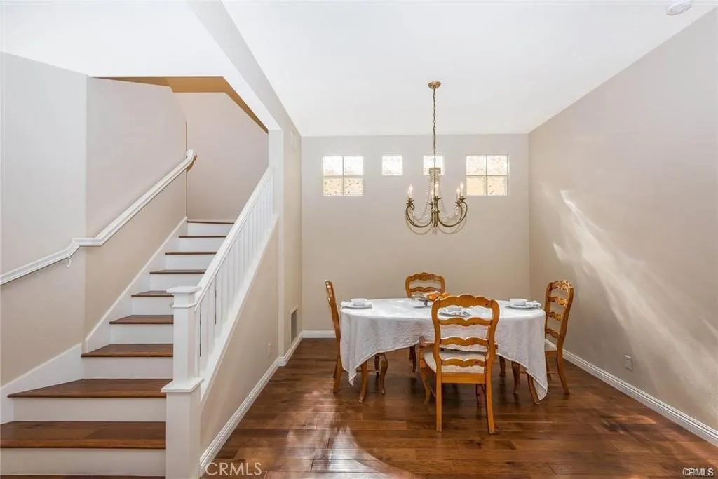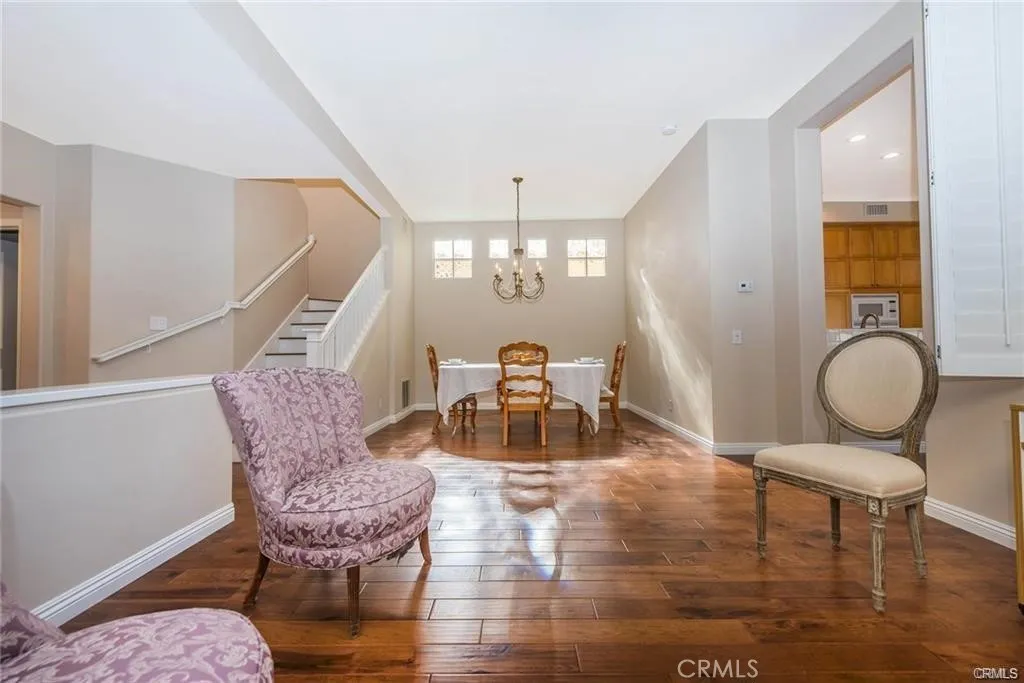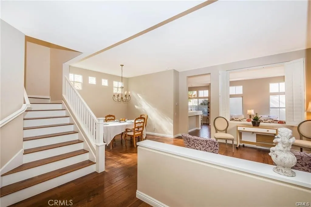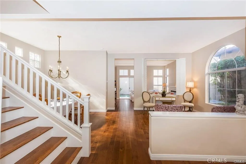 Stunning Tustin Ranch home offers a great layout with maximum use of space well appointed forms living room with fireplace secondary gathering space is available in the family good sized kitchen and tons of cabinet space for all your needs kitchen features a sit up eating bar plus a sunny eating area Holidays will be a breeze with the formal dining room large enough for a party well appointed and all good sized bedrooms upstairs spacious master suite with master bath offers duel vanities shower and separate tub enjoy new wood floors new carpet baseboards gorgeous toned interior paint wonderful community with pool and spa enjoy award wining schools and close proximity to tons of dining shopping and entertainment enjoy the outdoors golf course and peters canyon trails