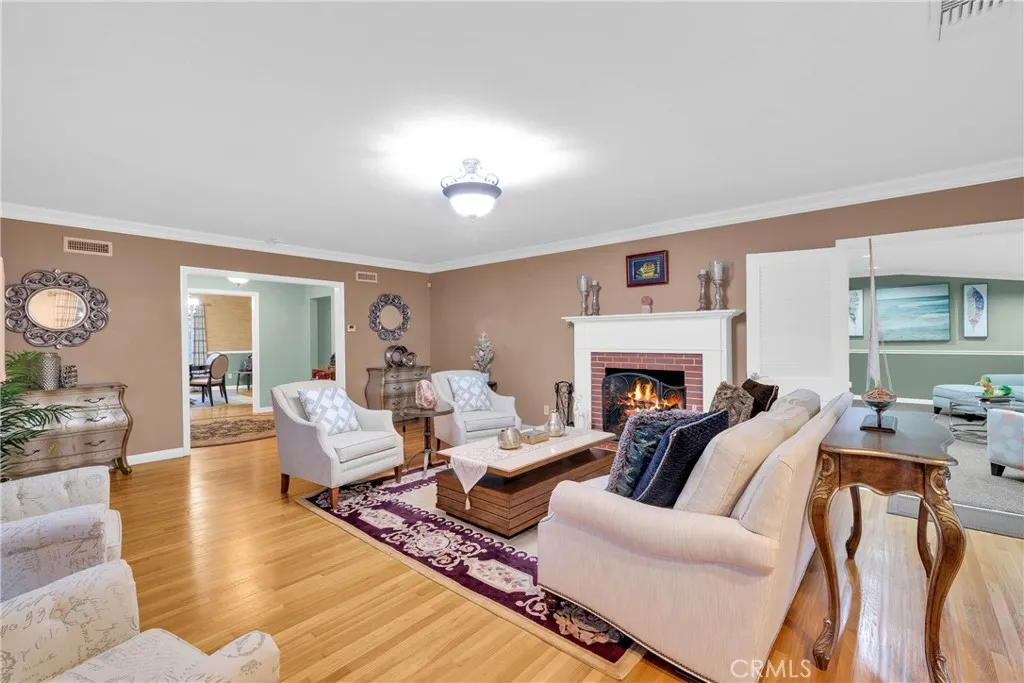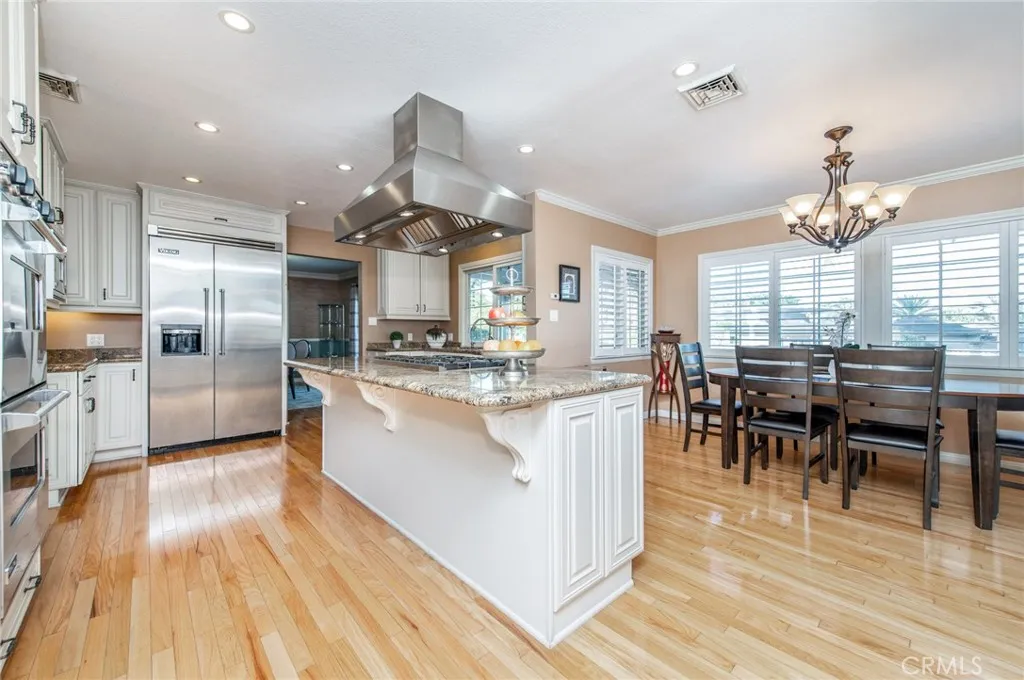 Discover the pinnacle of tranquil California living at this remarkable Friendly Hills estate, where classic elegance meets modern comfort. Nestled on a quiet corner lot, this property is a private sanctuary offering a legacy of quality and peace of mind in one of Whittier's most sought-after neighborhoods. Step inside to an interior of thoughtful design and luxury. Gleaming hardwood floors flow through formal and informal living and dining areas, perfect for both grand entertaining and casual relaxation. Find a quiet moment in the sophisticated library with its inviting fireplace. The gourmet kitchen is a culinary masterpiece, featuring premium Viking appliances, expansive granite countertops, a large center island, and double ovens. Grand windows and glass doors bathe the home in an abundance of natural light. The home's accommodations are highlighted by an expansive dual room master suite featuring its own private deck. This luxurious space consists of the main master bedroom, which includes its own retreat and a large walk-in closet, and a magnificent custom bathroom that serves as a personal spa, complete with a classic clawfoot tub, a separate shower, and elegant stone floors. The lower level adds to the home's versatility, featuring a desirable private guest suite with its own separate entry and kitchenette, as well as a large entertainment room perfect for gatherings and recreation. The exterior is an absolute oasis, your own private paradise. The meticulously manicured grounds create a tranquil, park-like setting offering serene privacy. The backyard is an entertain
