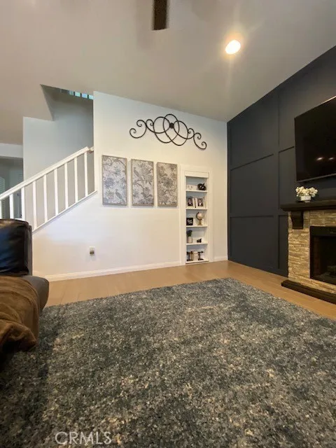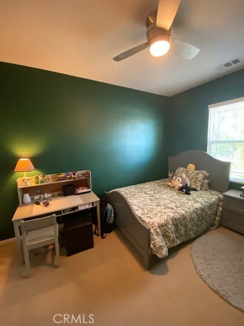 Make front door entry thru covered patio with neighborhood view beneath the ceiling fan. Once thru the door there is a downstairs bedroom/office to the left with a 3/4 bath nearby. Step further to view the nicely decorated kitchen, dining and family room. There is extra storage behind the swiveling bookcase in the family room. There is a nice view of the backyard from most of the downstairs. Access to the backyard is from either a sliding glass or the swinging door. This creates a free flow perfect for entertaining. The backyard has an aluminum patio cover with ceiling fan, stone textured stamped cement and artificial turf for easy maintenance. There is a 2 car garage on the south side of the backyard. Upstairs are the main bedroom, two secondary bedrooms, 2 full bathrooms along with a laundry room. All show clean and nicely decorated. The master bedroom has a view of the backyard while the secondary bedrooms have a street view. Please note the very large closet in the main bedroom suite.