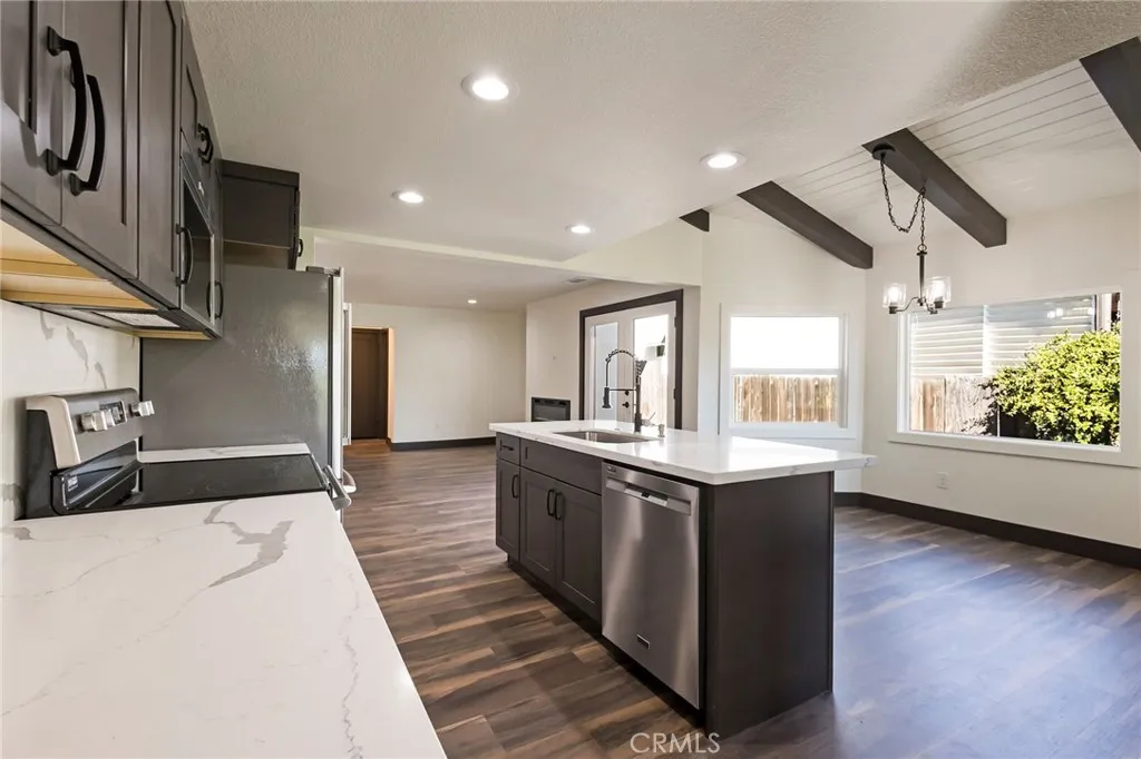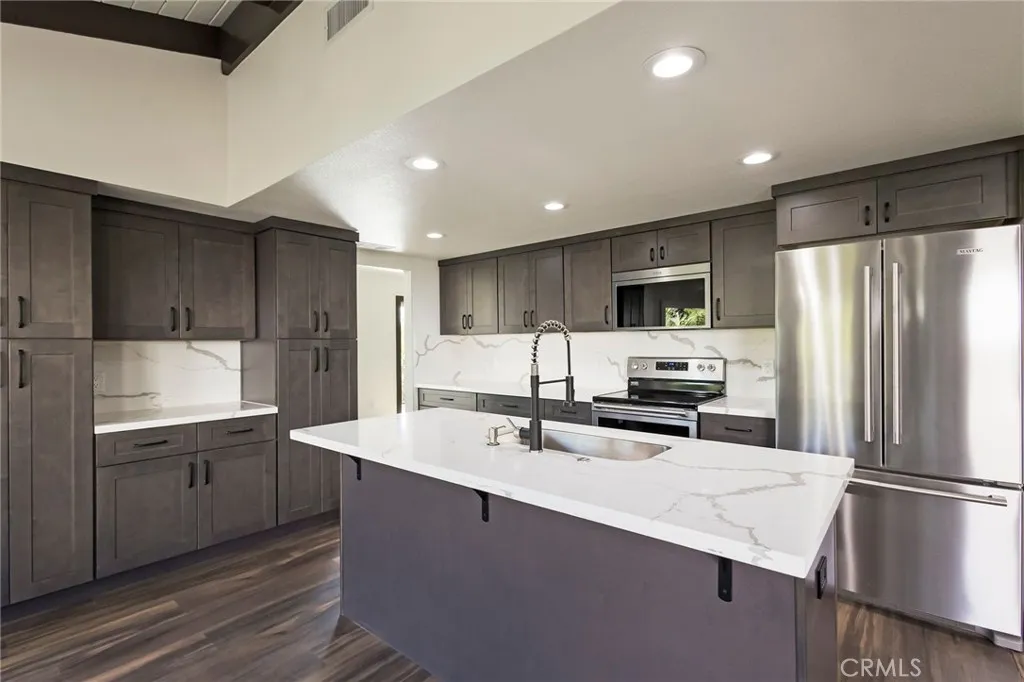 Motivated Sellers! Welcome to this stunning, turn key, fully remodeled, 4 bedroom, 3.5 bath, 3 car garage home! From the paint, flooring, fixtures, appliances, windows, doors, etc., everything is brand new! Boasting four spacious bedrooms and contemporary finishes throughout, this residence blends modern elegance with comfortable living. The main floor features two bedrooms, one being a master bedroom with a large en-suite bathroom and walk-in closet and the other has a cute bay window with a full bathroom just down the hall. The completely remodeled kitchen features new cabinets, quartz countertops, and high end appliances. In addition to the kitchen nook there is also a large dining area, perfect for entertaining. This home offers two living rooms on the main floor giving you plenty of space and options. One has access to the deck and offers incredible views and the other sits off of the kitchen with a beautiful fireplace insert. There is also a laundry room, a half bath, and plenty of storage on the main floor. As you walk down the beautiful new staircase you will find a whole other space for entertaining! There are two large bedrooms and a full bath. The space in between the bedrooms can be used as another living room or game room with access to the patio, and the highlight downstairs is the mini kitchen ready to go with a sink and mini fridge. In addition, there is a second laundry room downstairs for convenience. The front yard has been landscaped with new sod, a automated sprinkler system and fresh bark. You really need to see this home in person to see all of the in