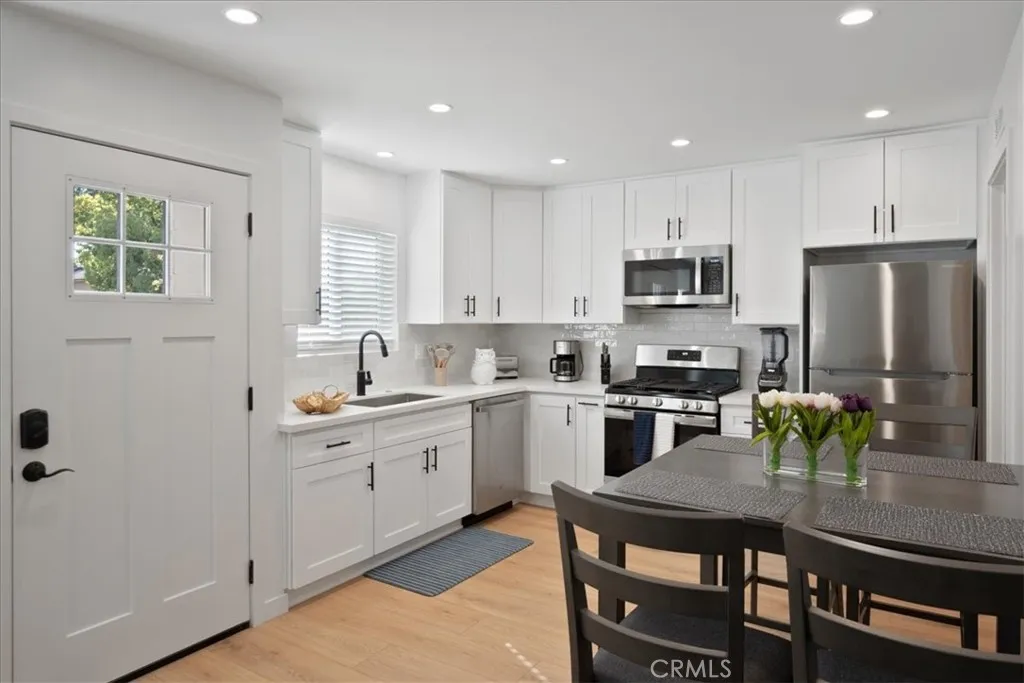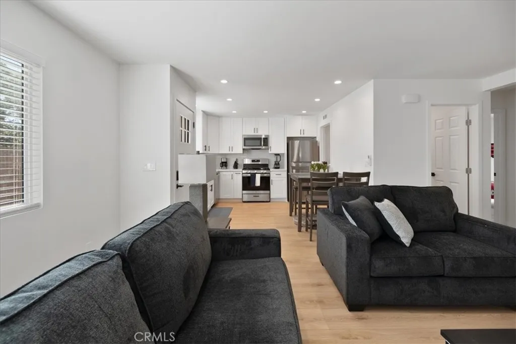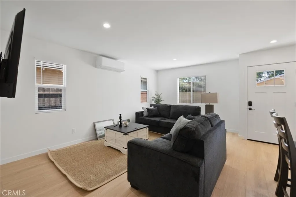 Stunning Newly Remodeled Home with Brand-New ADU A rare opportunity to own two beautifully upgraded homes on one lot, built by a highly reputable and experienced builder. The front residence offers 1,269 sq. ft. of stylish mid-century charm, featuring 4 bedrooms and 3 remodeled bathrooms, including two primary suites. Highlights include a remodeled kitchen, recessed lighting, a cozy fireplace, laminate flooring, central A/C, and private laundry. The brand-new ADU, spanning 730 sq. ft., is energy-efficient and thoughtfully designed with 2 bedrooms, 1.5 bathrooms, luxury vinyl plank flooring, a modern kitchen, recessed lighting, central air and heat, private laundry, and an attached two-car garage. A low-maintenance yard with synthetic grass separates both homes, creating privacy and ease of upkeep. This turnkey property is ideal for multigenerational living, rental income, or those seeking an ADU without the wait. Perfectly located just blocks from the Anaheim Packing District, with its 30+ restaurants, shops, and entertainment options, and only 1 mile from Disneyland. Easy access to the 5, 57, and 91 freeways makes commuting a breeze. Every detail has been carefully crafted with quality upgrades, and timeless finishes throughout. Ideally situated in a highly sought-after location close to shopping, dining, and freeways, this home offers versatility,