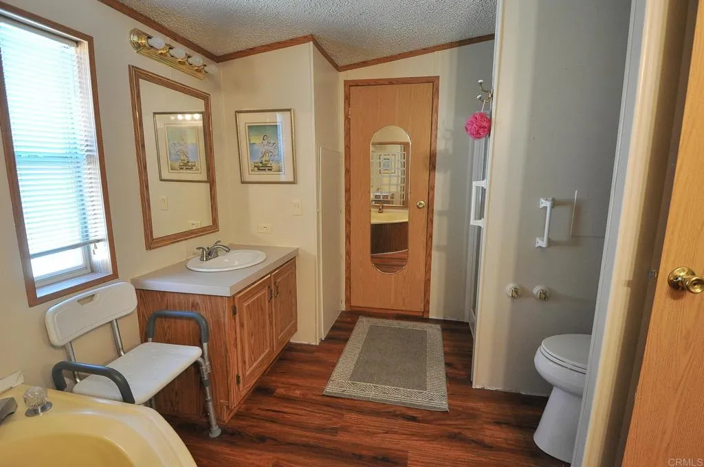 Beautifully renovated home located in one of East Countys most desirable and rare resident-owned, non-profit senior 55+ communities. This well-managed and impeccably maintained neighborhood offers resort-style amenities including a private dog park, pool, spa, clubhouse, and a vibrant calendar of social activities. With one of the lowest buy-ins in the area-just $6,000 (fully refundable upon sale) and a monthly space rent of only $615, this community is as affordable as it is welcoming. The home itself has been thoughtfully updated inside and out. Upgrades include a new roof (2024), new HVAC system with AC condenser (2023), new appliances and sink, new laminate flooring, and new Tuff shed. The spacious primary suite features an en-suite bathroom with a soaking tub and a generous walk-in closet. A built-in ramp in the carport area provides easy, convenient access to the front door. The private lot offers the perfect space to relax, BBQ, or entertain while enjoying peaceful sunsets. Additional highlights include a large 2-car covered driveway and convenient visitor parking directly across from the home. Great location has easy access to shopping, restaurants, and more.