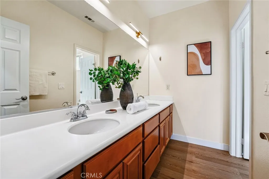 Discover unparalleled luxury and modern sophistication in Eastvale! This meticulously designed with Remodel Kitchen, Fresh Paint and New Flooring residence offers the perfect blend of modern elegance and comfortable living. Boasting 5 bedrooms and 5 bathrooms, this 3-story home is a true gem in the heart of a vibrant and convenience neighborhood. Step inside to discover a spacious living room with large windows that bring bright natural sunshine. Then it guides you to the bedroom with a full bath on the left side. it's convenience for parents and accommodating guests. The remodel kitchen is a chef's delight, featuring island, stainless built-in steel appliances, new granite countertops and new cabinets providing ample space for storage. It is open to the eating area and family room. There is a fireplace in the family room making it cozy and warmth. It's an ideal space for both everyday living and entertaining. You will find a master and additional 3 bedrooms on the second floor that two bedrooms sharing a full bath and one room appointed its own bathroom. The master suite is a true retreat, featuring a large walk-in closet, ensuite bathroom with double vanities, and a soaking tub. The additional bedrooms are generously sized and appointed a well-full bathroom. The laundry room is also on the second level. Continue to step on the 3rd level, there is a large open space area with a closet and full bath. It's flexible space with multi-use as extra bedroom, office, entertainment or playroom. The backyard offers ample space for relaxation and entertainment, with a covered patio,