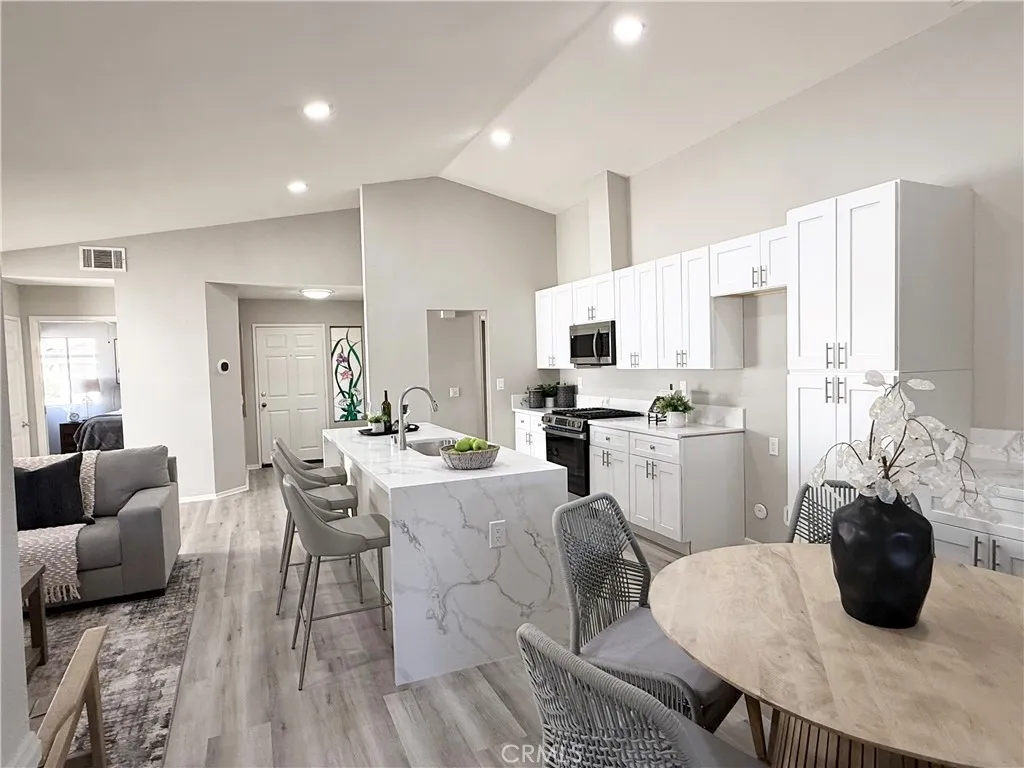 Don't miss out on this unique beautifully fully "remodeled" 55+ single-family home in the tranquil gated community of Casa Murrieta that boasts 3 spacious Bedrooms, 2 full bathrooms! Upon entry you will be greeted with a beautifully modernized updated very open floorplan that offers new vinyl/wood flooring, new paint and baseboards throughout the entire house along filled with natural lighting that provides warm and welcoming atmosphere. The well-appointed kitchen opens up to a very spacious living room and dining area creating an ideal space for both relaxation and entertaining along with having an additional enclosed "sunroom". Kitchen also offers all new modern stainless steel energy efficient appliances with white quartz counter tops and brand-new cabinets that offers plenty of cabinet/pantry space. Enjoy outdoor living in the backyard patio area and take in the serene surroundings! The spacious 2 car garage gives plenty of space for 2 cars and storage. This 55+ community offers many amenities and activities. Also, low taxes! This home is conveniently located near shopping, dining and medical facilities, and provides easy access to everything Menifee has to offer!