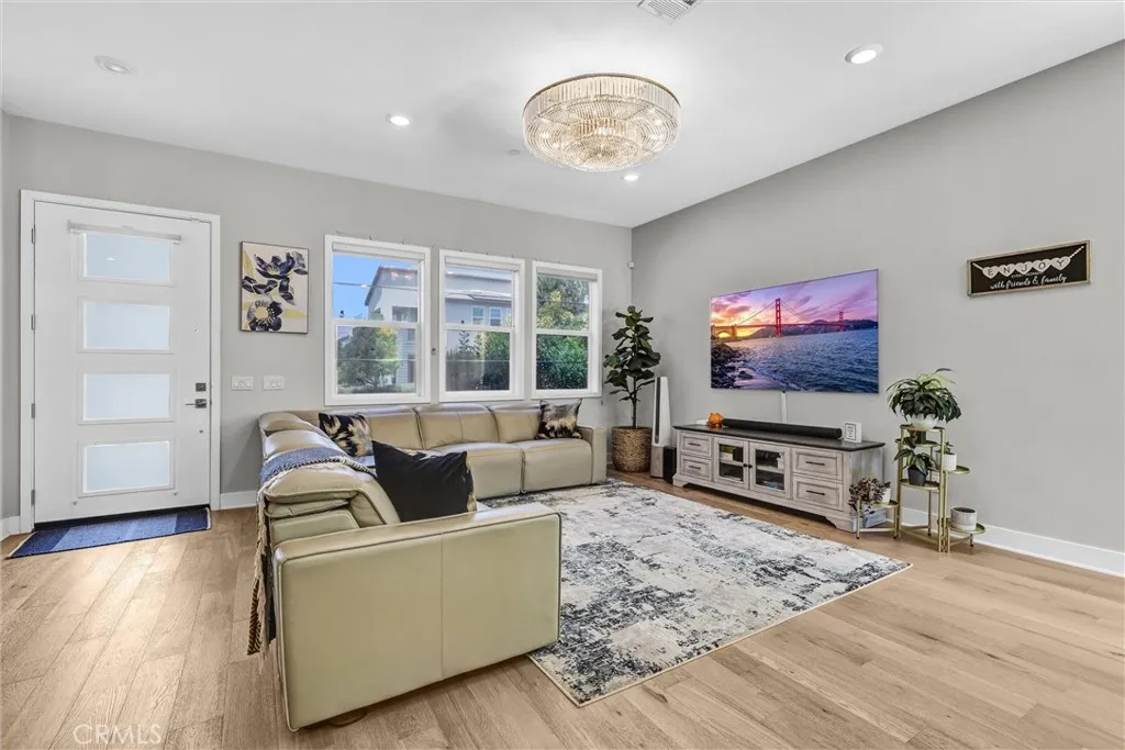 Stunning Modern Home with Sunset Views in Rise Park just a 1 minute to the Clubhouse Pools! Welcome to this exceptionally modern detached home in the highly desirable Rise Park community of Irvines Great Park Neighborhoods. Built by Lennar in 2022, this beautifully upgraded residence features 3 spacious bedrooms, 2.5 bathrooms, a versatile third-floor bonus loft, and a 2-car direct access garage, with 2,594 sq ft of thoughtfully designed living space. The 3rd level bonus room has a built-in murphy bed which can be used as another room. Perfectly situated just a 1-minute walk to Rise Parks resort-style pools and parks, and a short stroll to the award-winning Portola High School, this home delivers luxury, lifestyle, and unmatched convenience for modern families. Enjoy a bright and open first-floor layout with upgraded flooring and a seamless flow between the great room, dining area, and the luxury-upgraded kitchen featuring a large quartz island, high-end stainless-steel appliances, sleek cabinetry, and a walk-in pantry. Upstairs, all bedrooms are conveniently located on the second floor. The expansive primary suite offers a peaceful retreat, complete with ample room for a sitting area, large windows for natural light, a spacious walk-in closet, and a beautifully appointed en suite bathroom. The laundry room with built-in storage is also thoughtfully positioned on this level. On the third floor, discover a huge bonus loft which is ideal as a media room, home office, or entertainment lounge with sliding glass doors leading to a private balcony that captures stunning sunset vi