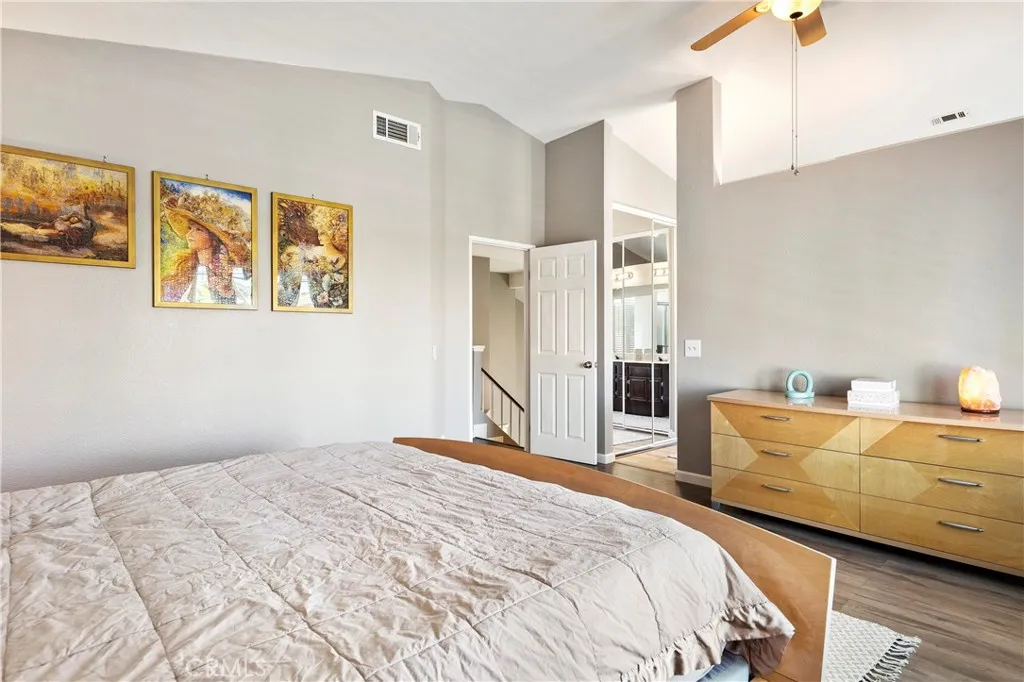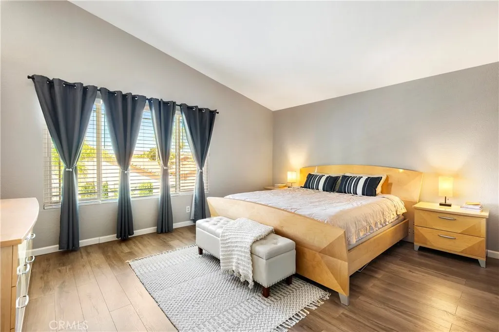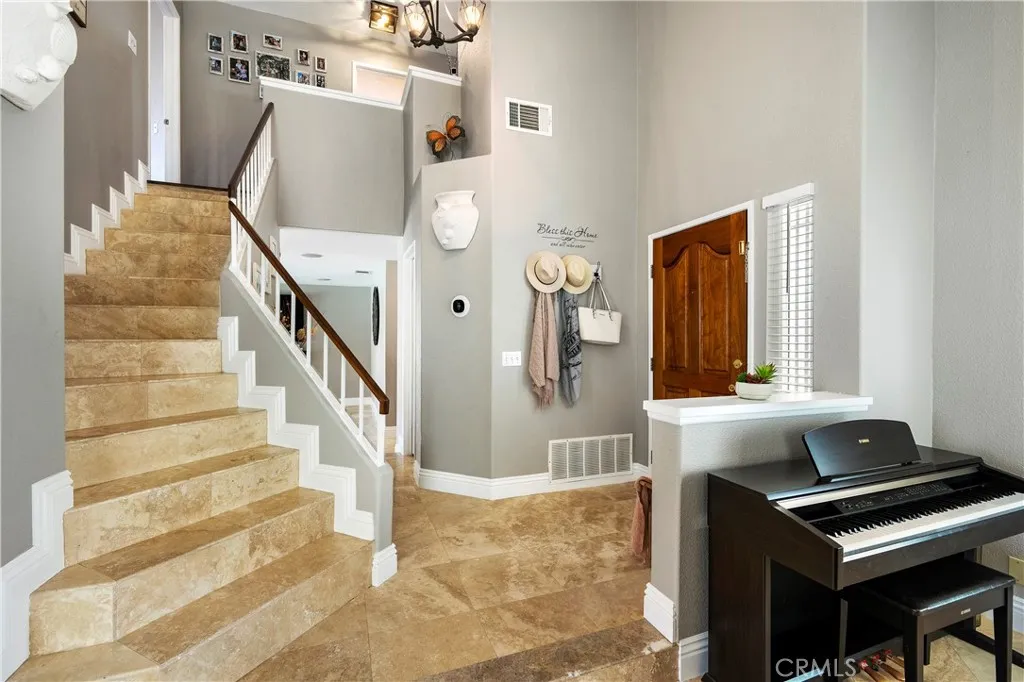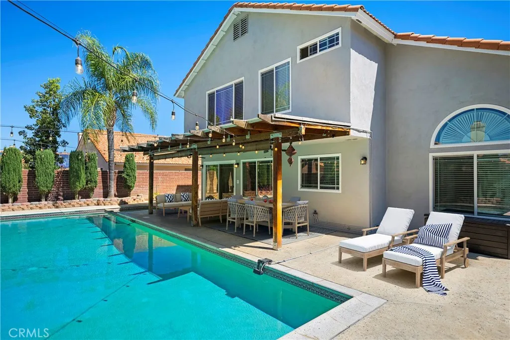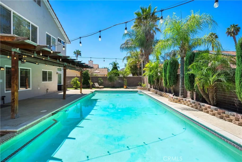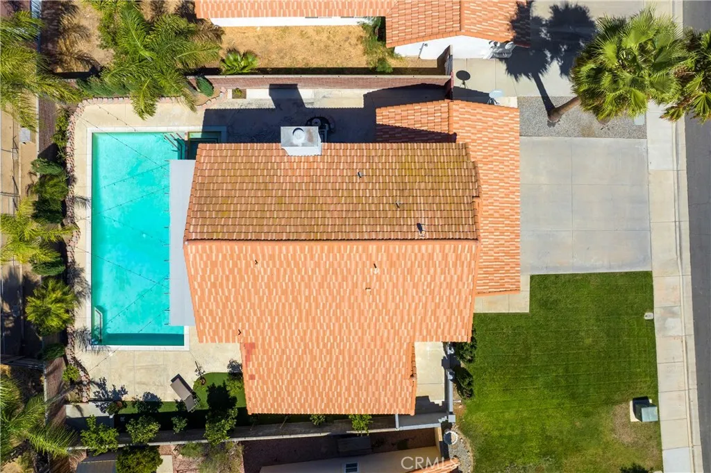 Welcome to this stunning pool home located in the desirable Southwest Hemet community! Step inside to soaring cathedral ceilings in the formal living and dining rooms, complimented by expansive windows for natural light. The family room offers a cozy fireplace and large sliding doors that open to your private backyard retreat. Travertine flooring with upgraded base moldings throughout downstairs, along with a large laundry room, a generous walk-in pantry, and a convenient powder room on the first level are some of the bonus features. Upstairs, the expansive primary suite offers a large walk-in closet and the en-suite bathroom features dual vanities, a soaking tub, and a separate shower. Down the hallway, youll find three additional bedrooms and a full bathroom, all enhanced by elegant laminate plank flooring throughout the upper level. The backyard is an entertainers dream with resort-style in-ground pool and spa, spacious patio area, block wall fencing for privacy, and lush landscaping with fruit trees. Additional highlights include newer dual-pane windows with upgraded blinds throughout, lots of storage cabinets in the garage, whole house fan, front porch and an extended driveway offering ample parking. Enjoy NO HOA, low taxes, and no Mello-Roos. Ideally located within walking distance to elementary and high schools, parks, and very good proximity to shopping and dining. Easy access to the 215, 15, 10, and 60 freeways for convenient commute.