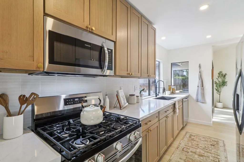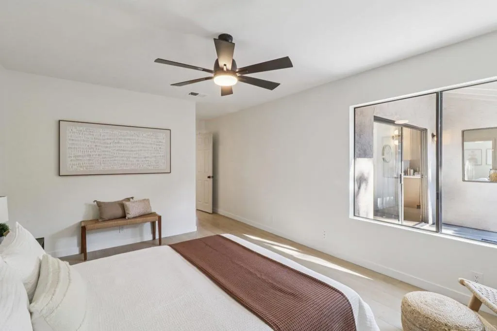 Introducing this fully remodeled 2-bedroom home in the highly sought-after Nob Hill 55+ community. Every detail has been thoughtfully updated, creating a modern and comfortable retreat. Step inside to find vaulted ceilings and a spacious floorplan filled with natural light. The home features luxury vinyl plank flooring and recessed LED lighting throughout. The kitchen shines with modern oak cabinets, quartz countertops, and brand-new appliances, offering a clean and contemporary look. Both bathrooms have also been remodeled, with the primary suite showcasing a double vanity with linen storage and a tiled shower, while the guest bath features all-new vanities and fixtures. Additional upgrades include new doors, hardware, exhaust fans, a freshly stuccoed fireplace front, and a new garage door on the finished garage. Sliding glass doors off the dining room open to a private patio, and drought-tolerant landscaping adds curb appeal out front. Community amenities include a pool, spa, and RV parking. Plus, the home is just minutes from shopping, dining, and entertainment in downtown Vista, adding to its convenience and appeal. With its stylish upgrades, thoughtful details, and prime location, this Nob Hill gem is move-in ready and waiting for its next chapter.