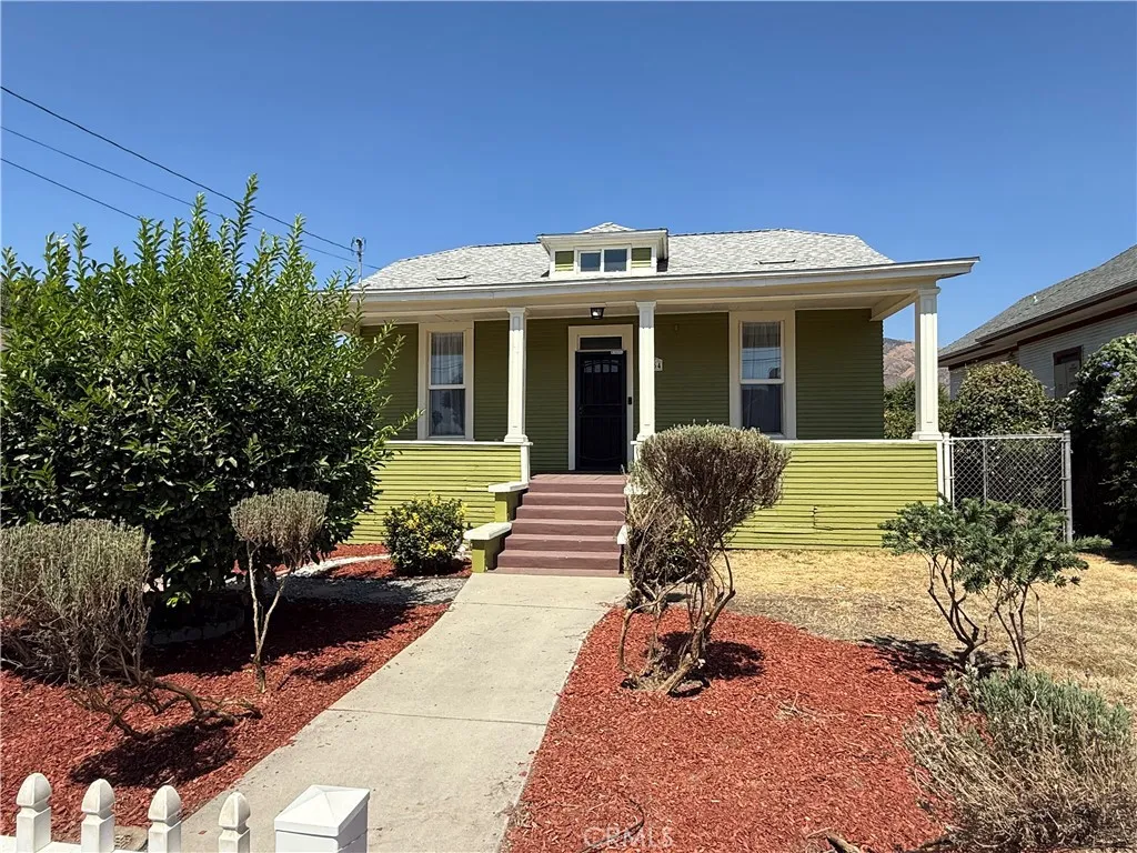 Who says there isn't affordable housing? We have a wonderful house for you to call home. Built long ago with 100+ year old charm and a proper yard, white picket fence and an enclosed rear yard. This historic home has the charm of yesteryear yet the modern amenities needed for modern life. As you come up the steps to the front porch you will enter the home and find a cozy 2 bedroom house with nice large living room, 10 foot ceilings, dining room, kitchen and bathroom. The kitchen is located to the rear of the house and is equipped with Stove, microwave and a new barn sink. Has a nice walk in pantry too. The kitchen is sunny and bright. The original doors, and base boards are still going strong in this house. Over the years the house has been remodeled and upgraded as needed. There is a mud room/ laundry room with a newly added bathroom/shower area and the attic can be used as playroom , storage, or additional living space. Fresh paint through out the house, ,New exterior paint on the house, newly remodeled bathroom with new sink, toilet and shower enclosure. The house is equipped with modern amenities like central heating and air conditioning system, an energy efficient roof that was installed about 7 years ago. Home is equipped with a tankless water heater and solar panels. There is a huge 4 car garage fully permitted and a fenced back yard with lemon tree, apple tree too. Garage could be converted into an ADU. It measures approximately 22x38. It is a good large size. There's even room to park your RV or trailer. Located within an easy commute off the 210 freeway, walking d