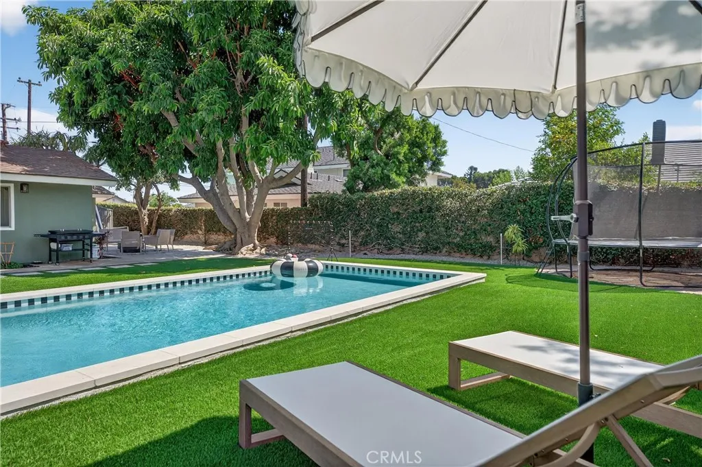 Historic Tustin!! Come see this custom single-story pool home sitting on a beautiful 8,994 square-foot lot. This home has been fully remodeled with modern upgrades, including new flooring, paint, and Wi-Fi-enabled appliances and tank less water heater. This home Features a spacious living room that connects to a chefs dream kitchen, ideal for family gatherings and entertaining guests. All 3 bedrooms along with both primary and guest bathrooms have been updated with new vanities and fixtures. This amazing backyard includes a large in-ground newly upgraded pebble tech pool with new pump, filter and saltwater system, surrounded by ample space for entertaining, mature trees for privacy, and an "Old Hollywood" aesthetic. The property has new turf in the front and back yards, updated piping, insulation, and new interior and exterior paint. It also features a fireplace in the living room, central forced air cooling. The garage has been beautifully finished providing additional space for a home office or playroom for kids. The vaulted ceiling also provides additional attic storage. The home is fully fenced with a wood fence and has two new metal sheds on property for even more storage. Come see your new home that is MOVE IN READY!