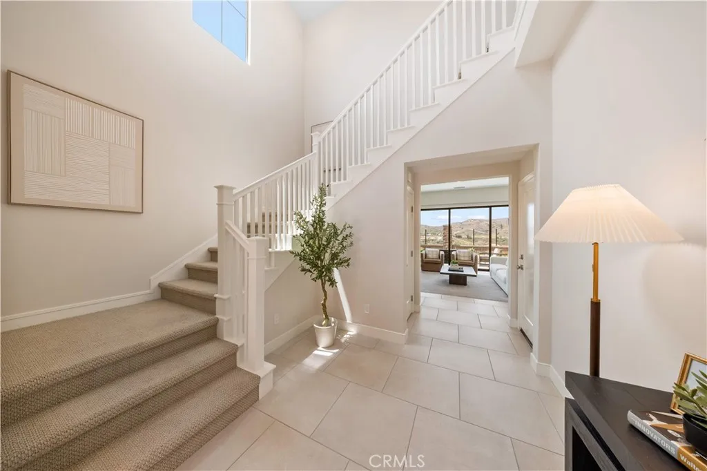 View!View!City View home! Cornet lot!This stunning 3-bedroom, 2.5-bathroom home offers a modern, comfortable living experience. The elegant foyer leads to a spacious living area with panoramic sliding doors that open to a generously sized backyard, perfect for outdoor activities. The gourmet kitchen features stainless-steel appliances, a custom backsplash, a 6-burner cooktop, and a large center island with a breakfast bar. Upstairs, the serene master suite includes a walk-in closet and a deluxe ensuite bathroom with dual vanities, a soaking tub, and a separate shower. Two additional bedrooms and a full bathroom provide ample space for the family. Convenience is key with a dedicated laundry room, a powder room on the first floor, and an attached two-car garage. High ceilings throughout the home create an airy and open atmosphere. The community offers access to the Irvine School District, easy highway access, nearby parks, and community pool. Dont miss the opportunity to own this best view home in Portola Springs!