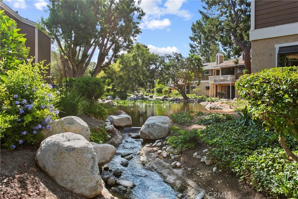 BEST VALUE IN IRVINE! Don't miss out on this UPDATED and immaculate end unit condo in the heart of the Springs community. The relaxing sound of babbling brooks will greet you in the morning, join you as you relax on your private balcony and lull you to sleep every night. A contemporary vibe greets you the moment you enter this OPEN FLOOR PLAN including modern, designer carpet, neutral color palette, quartz counter surfaces and new fixtures. Dual pane vinyl windows and slider keep this home cozy in any climate. This layout can not be beat with large living room with slider to PRIVATE BALCONY, adjoining dining area and perfect kitchen with plenty of storage and counter space. The bedroom suite has room for king size bed, plus separate dressing area has DUAL WARDROBE CLOSETS...plenty of storage here! Dare to compare our $365 monthly HOA dues with any other Irvine community, plus NO MELLO ROOS! This is the perfect spot for your first home, second home, downsizing or investing. Community amenities include multiple pools and tennis courts. Fantastic area with nearby shopping and parks and adjacent to the Eastwood Trail. Welcome home!