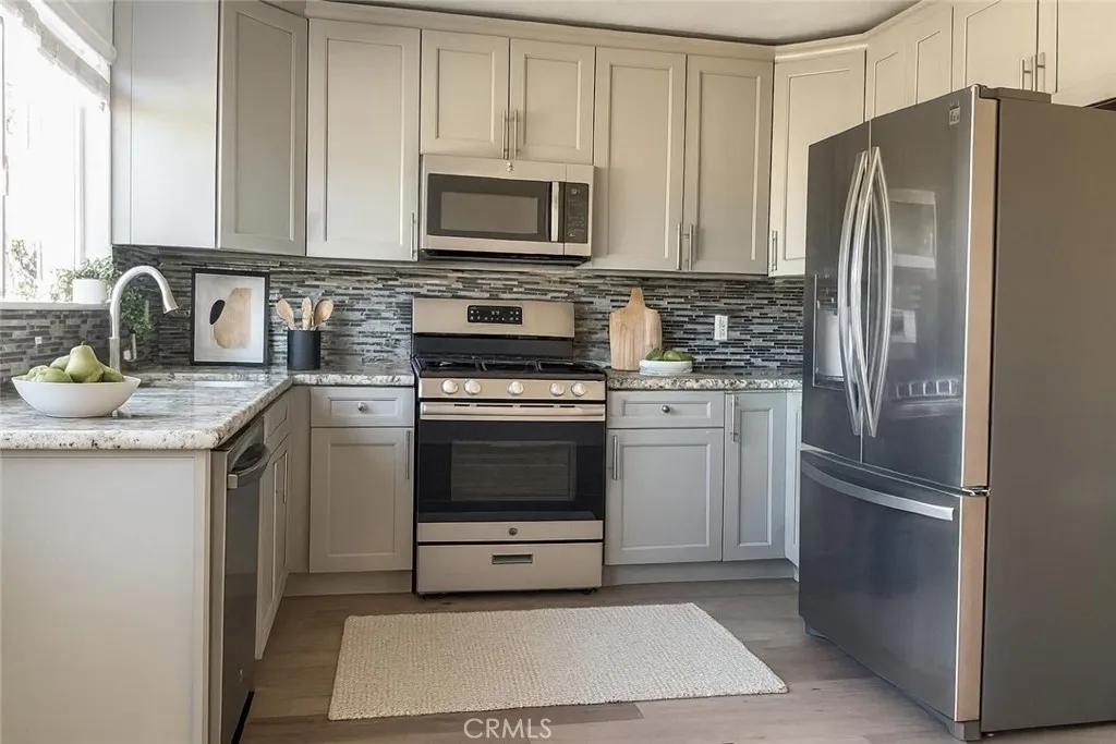 3-bedroom, 2 Bathrooms one-level upper unit offers a serene and open floor plan updates and convenience throughout. The kitchen boasts quartz countertops and stainless-steel appliances: Refrigerator, and an Over-The-Range Microwave. Enjoy the seamless flow from the kitchen to the dining and living rooms. The main living Laminates flooring and natural light floods the interior through the sliding double-pane glass door leading to the private balcony patio. Remodeled bathrooms shower. For an interior laundry area includes a full-size washer and dryer This Woodbridge condo is centrally located near IVC, UCI, shopping centers, highways, and toll roads. The Woodbridge community offers 2 lakes, 2 beach lagoons, 22 pool facilities, parks - Fallbrook Park with Splash Pad down the street, trails, and sports courts: tennis, pickleball, and more. Discover the perfect blend of a great location and a vibrant community. Welcome to your Home Sweet Home!