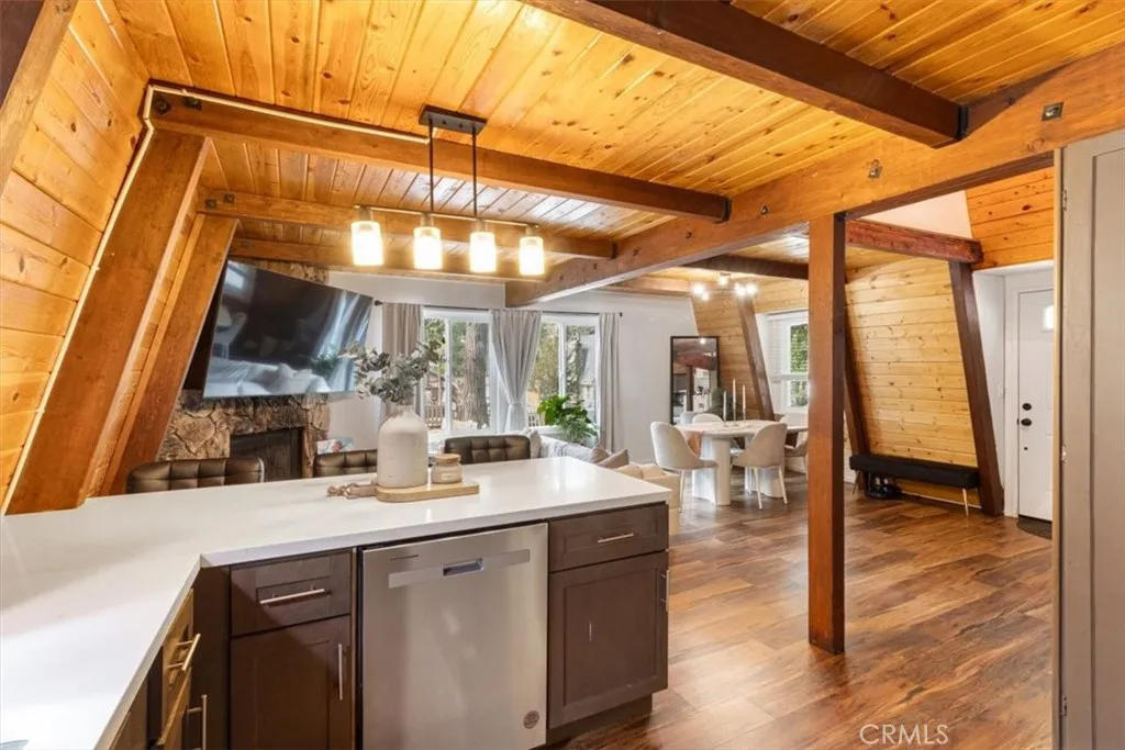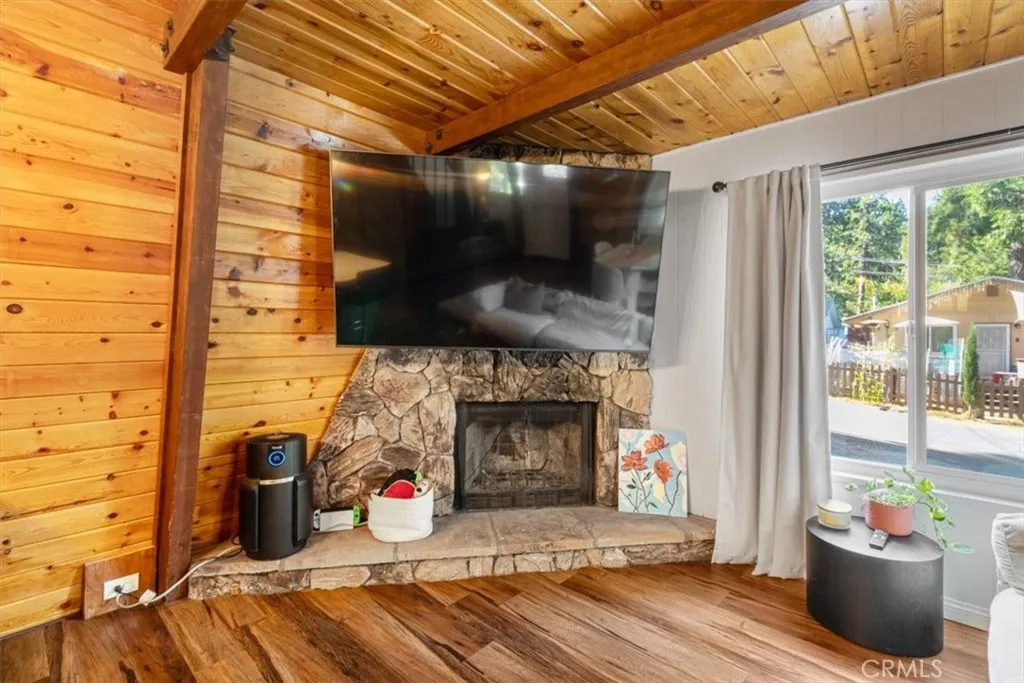 Turnkey Cabin in Crestline Near Lake Gregory & Popular Hiking Trails! 3 Bedrooms 2 Full Bathrooms 1,380 Sq. Ft. 5,059 Sq. Ft. Lot Built in 1978 This beautiful mountain retreat is move-in ready and full of charm. Featuring wood floors throughout, an upgraded kitchen with quartz countertops, and a cozy fireplace in the living room, this home blends modern upgrades with a warm, rustic feel. The bathrooms have been tastefully updated, and the stunning wood ceilings add that special mountain touch. The layout offers convenience and comfort with 2 bedrooms upstairs, including the primary suite with a private balcony and master bathroom, and 1 bedroom plus a full bath downstairs along with a separate laundry area. Additional highlights include fresh interior and exterior paint, plenty of parking for guests, RV parking, and a spacious backyard ideal for family gatherings. Located close to Lake Gregory, youll also enjoy easy access to Downtown Crestline, restaurants, shops, and local conveniences. Dont miss out on this perfect mountain getaway or full-time residencecome see all this home has to offer