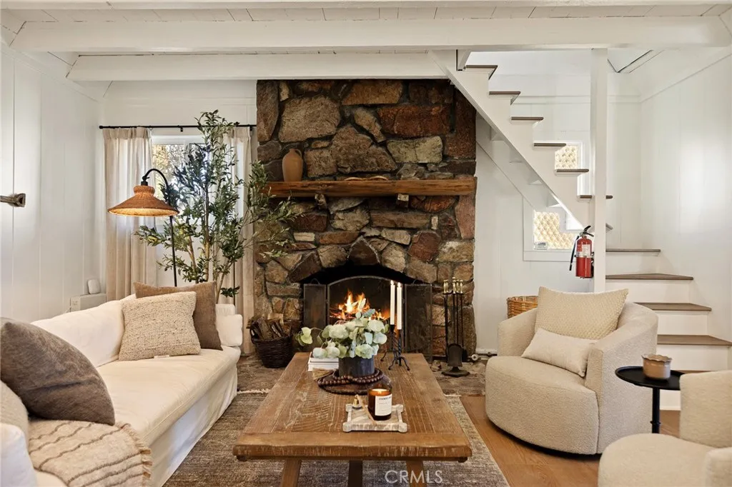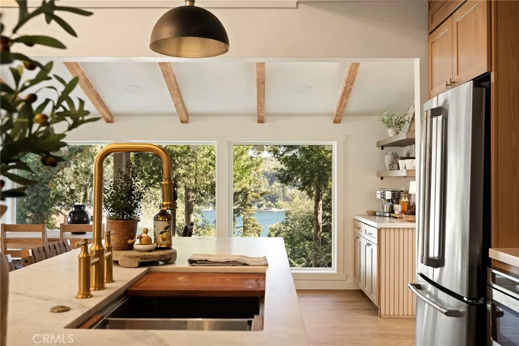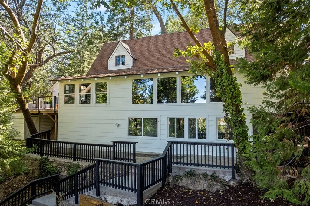 WOW, WOW, WOW!! Welcome to the Charlie Chaplin House Nestled in the Trees w/Incredible LAKE VIEWS! So Much Privacy & Just Across the Street From The Lake!! You are Literally Steps Away From Your INCLUDED 1/2 DOUBLE DOCK!! Run Down and Take a Boat Ride, Go for a Run Around the Lake or How About a Refreshing Swim? And Wait Until You See Inside!! Just Remodeled From Head to Toe & Professionally Designed w/Premium Finishes Throughout!! Four Bedrooms, 3 Baths and an Incredible Outdoor Entertainment Deck Area with a Sheek Bungalow Perfect for Gathering, Games and Refreshments! ALL NEW Modern Rustic Kitchen with Tumbled Limestone Backsplash, Beautiful Wood Cabinetry and Brazilian Honed Dolomite Countertops. Open Living Areas with 2-Story Ceilings and Island Breakfast Bar to Gather & Enjoy Meals. There is an En-Suite Bedroom on the Main Level and a Separate Bathroom for Guests. Downstairs is an Elegant and Private Master Suite to Enjoy, All to Yourselves! Oversized Shower and Lakeviews from the Bedroom Make this Oh Sooo Relaxing! Up the Private Starway Above the Kitchen is the Cutest Bunk Room for the Kiddos! They Will LOVE it!! And the Private Stairway Above the Living Room Leads to the 4th Bedroom, Currently Being Used as an Office. Offered Turnkey with Everything As You See it Today!! It's Difficult to Get BOTH a Lake View AND Be Close to the Lake Here in Gorgeous Lake Arrowhead!! This One Has BOTH!!! Come & Enjoy All that Lake Arrowhead Has to Offer with this Incredible Full Lake Package - Coolest Lake View House with a Private Dock Just Below! Just Bring Your Toothbrush!! Ever