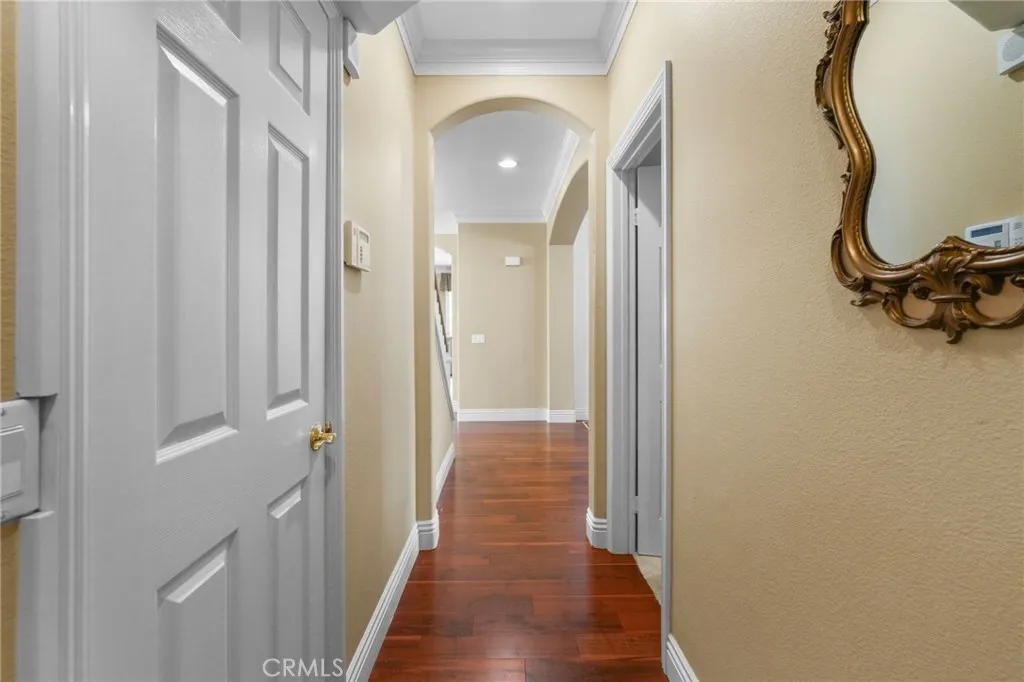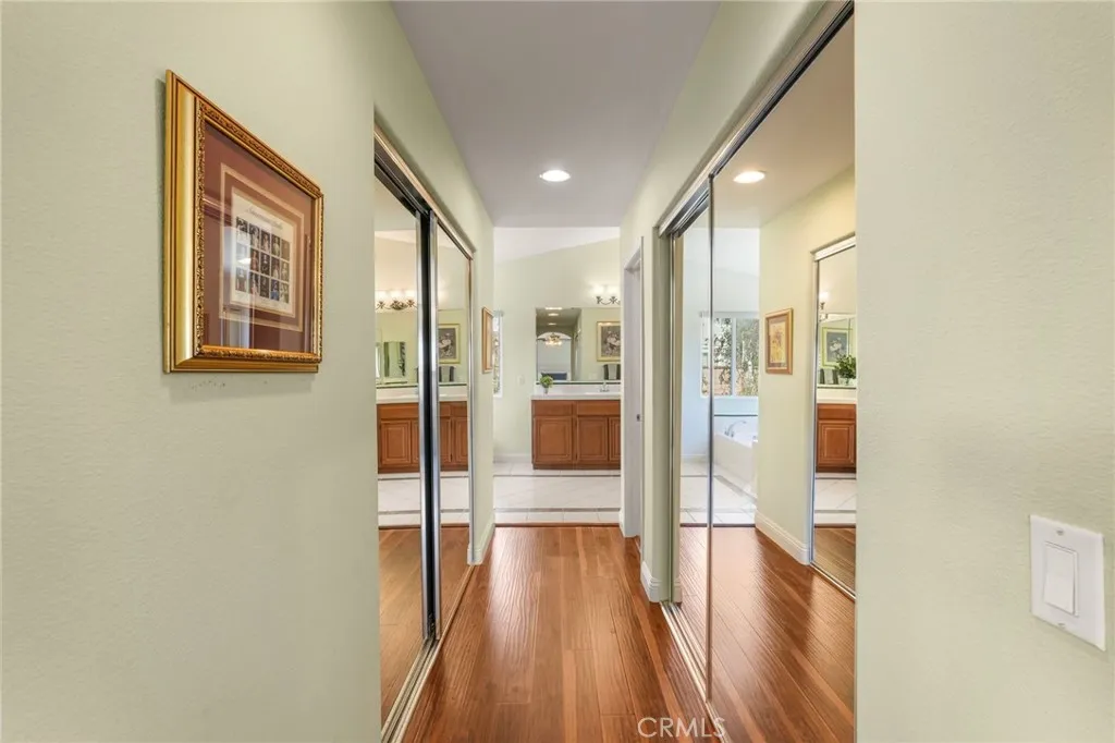 Located on a peaceful cul-de-sac in the desirable Lantana Hills community of Newhall, this beautifully maintained residence offers the perfect balance of space, comfort, and modern updates. Built in 2002, it features approximately 2,756 square feet of living space on a generous 7,364 square foot lot. The interior is filled with natural light thanks to high ceilings and expansive windows throughout. The main level is ideal for both everyday living and entertaining, with engineered hardwood flooring and a thoughtfully upgraded kitchen that includes quartz countertops, custom cabinetry, and premium Thermador appliances. The kitchen opens directly to a spacious living area, creating a seamless and inviting layout. A downstairs bedroom with an adjacent updated bathroom provides a perfect guest suite or flexible private quarters. Just behind the kitchen, a dedicated laundry room offers extensive storage and access to the backyard for added functionality and convenience. Upstairs, a large open loft offers versatility for a home office, media room, or creative space. The primary suite serves as a private retreat, complete with two walk-in closets and a spa-like ensuite bathroom featuring dual vanities, a soaking tub, and separate shower. Two additional bedrooms share a full bathroom with a double vanity, offering both comfort and practicality. Step outside to discover a private backyard designed for relaxation and entertaining. An extensive covered patio serves as an "outdoor" living roomperfect for dining, lounging, or gatheringframed by mature landscaping and sweeping hillside vi