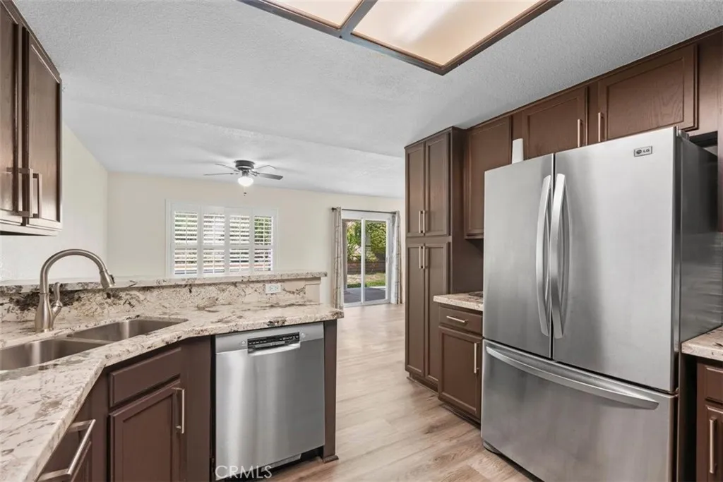 Beautifully upgraded Two story home in desirable neighborhood in the heart of city of Rancho Cucamonga. This home features a vinyl flooring through out downstairs and stairway. Kitchen with stainless steel appliances and granite counter tops open to dining area. Cozy family room with brick fireplace . Upstairs bedrooms are Furnished with carpet flooring . Great size master bedroom overlooking the backyard . Master bath with Dual vanity for his and hers. Three additional bedrooms and shared bathroom . More to this home is a great size backyard with fruit trees . Home is centrally located near great schools, parks and provides easy access to freeway. Minutes away from Victoria Gardens and all stoppings .Walking distance from the elementary school .