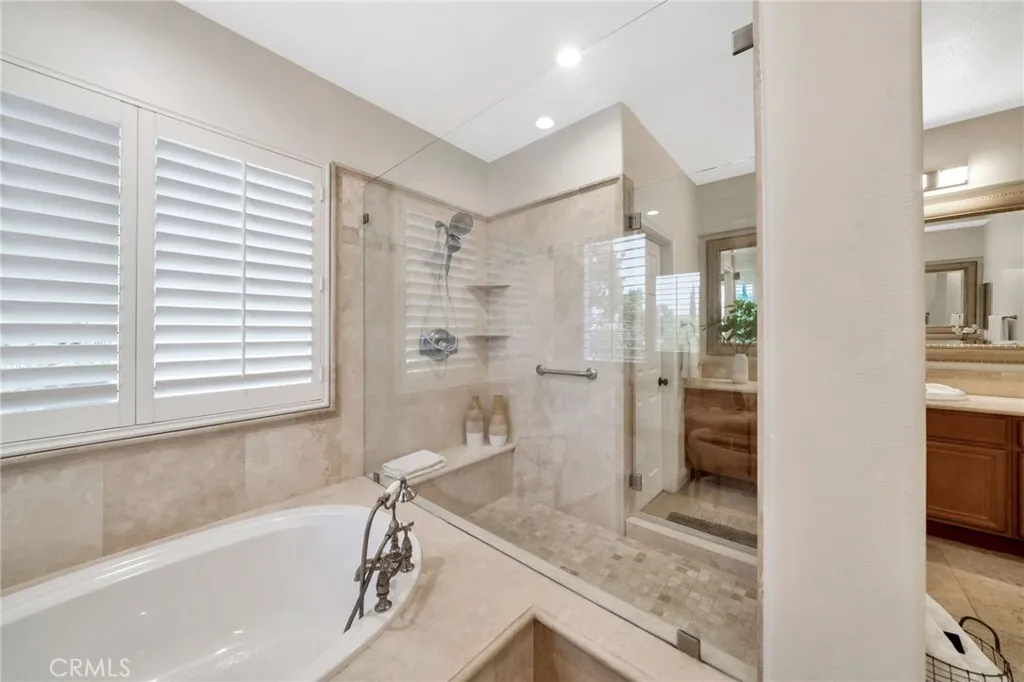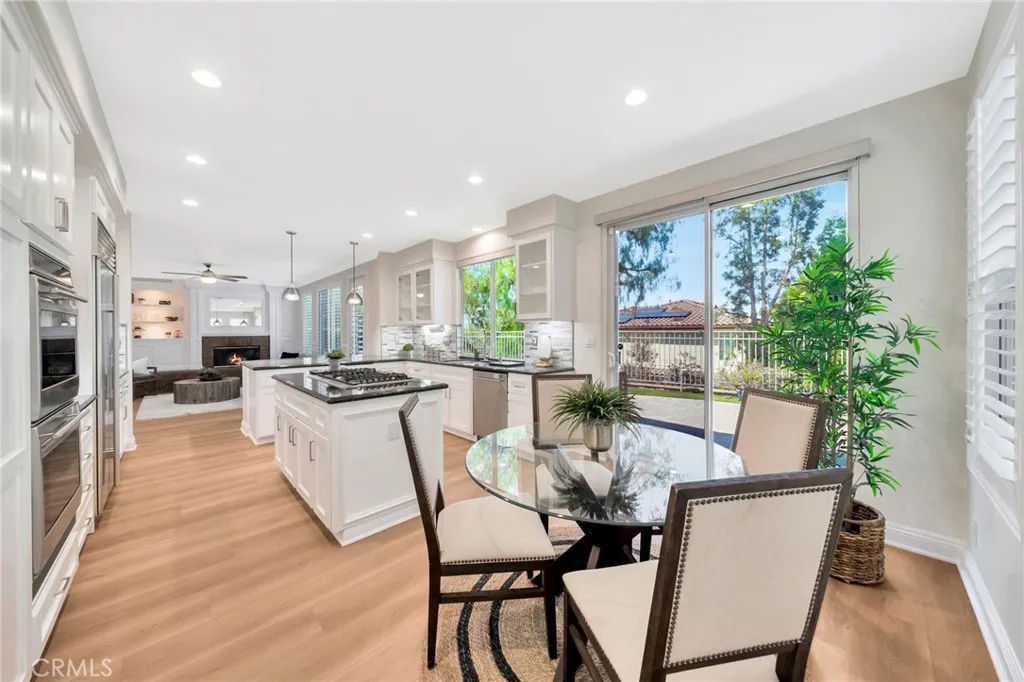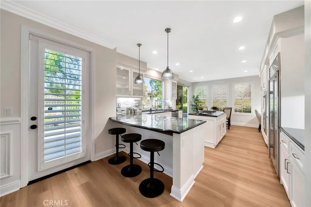 Welcome to 23171 Rockrose, an exquisitely reimagined home tucked away on a desirable single-loaded street in the guard-gated enclave of Stoneridge, Mission Viejo. Beyond its stunning curb appeal, this residence offers exclusive Lake Mission Viejo privileges from boating and fishing to private sandy beaches. Inside, soaring ceilings set the stage for a home that feels both grand and inviting. Nearly every corner has been refreshed with brand-new upgrades: new PEX plumbing, new lighting, new flooring, new luxurious interior paint, a new HVAC system, new epoxy-finished garage floors, and a new hot water tank. Plantation shutters and custom millwork including wainscoting, archways, and crown molding bring warmth and timeless elegance. The gourmet kitchen is a showstopper, outfitted with granite countertops, a spacious breakfast bar, and premium appliances: built-in SUB-ZERO refrigerator, WOLF double oven, and a new WOLF island range. Upstairs, the expansive primary suite is a private retreat, featuring a spa-inspired bath with travertine stone and designer finishes. Each additional bathroom has also been thoughtfully updated with custom mirrors and curated details. Outdoors, enjoy low-maintenance beauty with lush artificial turf, custom pavers, and stacked-stone planter boxes. A whole-house fan keeps the home energy efficient, while the 3-car tandem garage offers generous storage. With no neighbors directly across the street, top-rated schools nearby, shopping, dining, golf, La Paws Dog Park, the Nadadores Swim Facility, low HOA dues, and no Mello Roos, this home delivers th