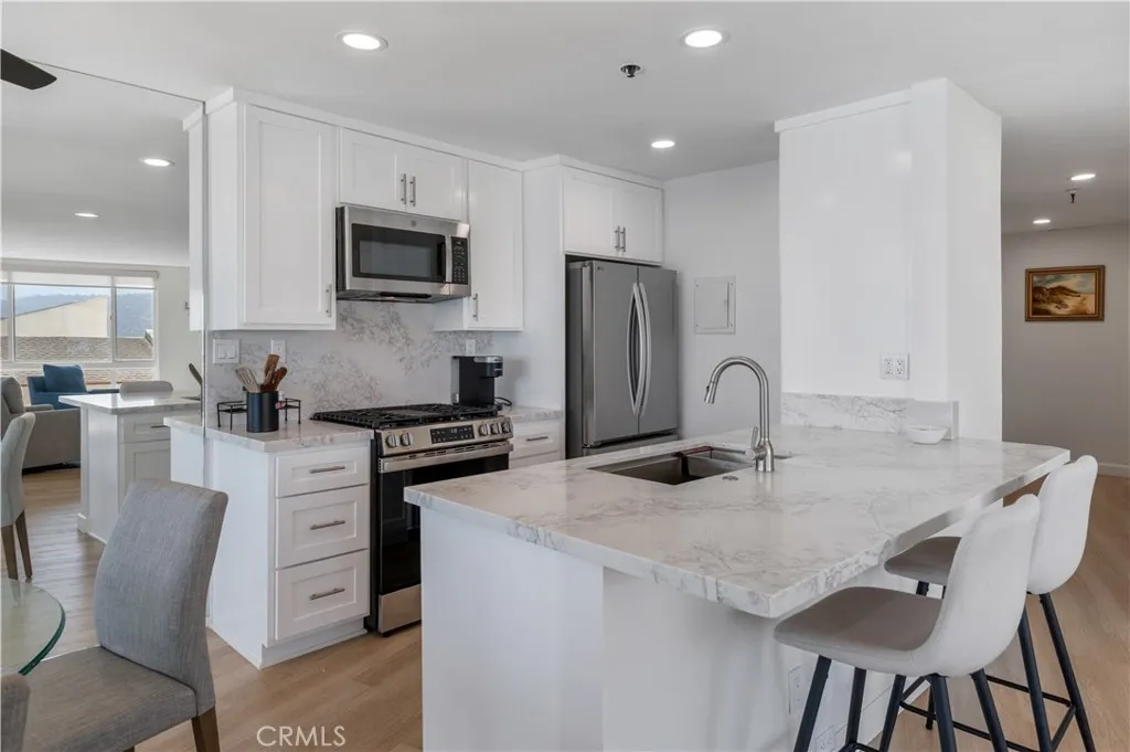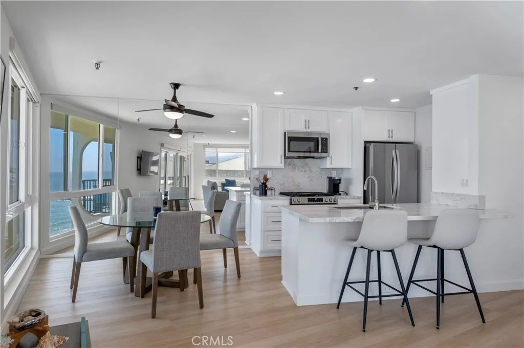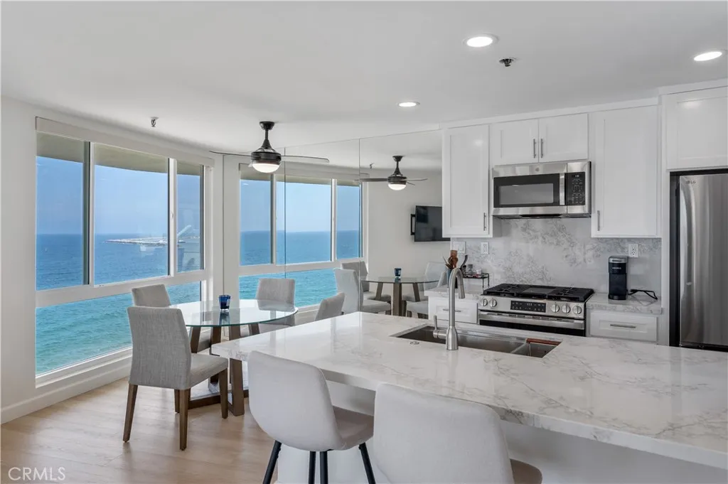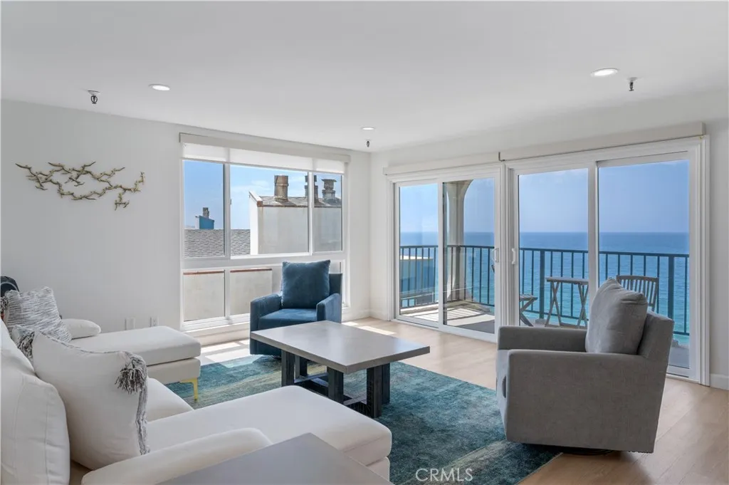 Fully furnished and recently remodeled panoramic ocean view and beachfront property with 180-degree balcony view from Palos Verdes to Santa Monica Mountains. Enjoy full ocean views from every window. You can hear the waves from your living room and kitchen. Feel the ocean air! You literally can't get closer proximity to the ocean. Situated on the third floor of the building, one-bedroom condo feels massive when your fourth wall is the great Pacific Ocean. Updated kitchen and bathroom. Covered, secured parking for 1 car. Community Jacuzzi and laundry. Spectacular location in the South Bay. Short walk to the Redondo Beach Pier and The Village restaurants, fish markets & farmer's market. Year-round beach living or your incredible getaway. To Live, Live by the Sea.