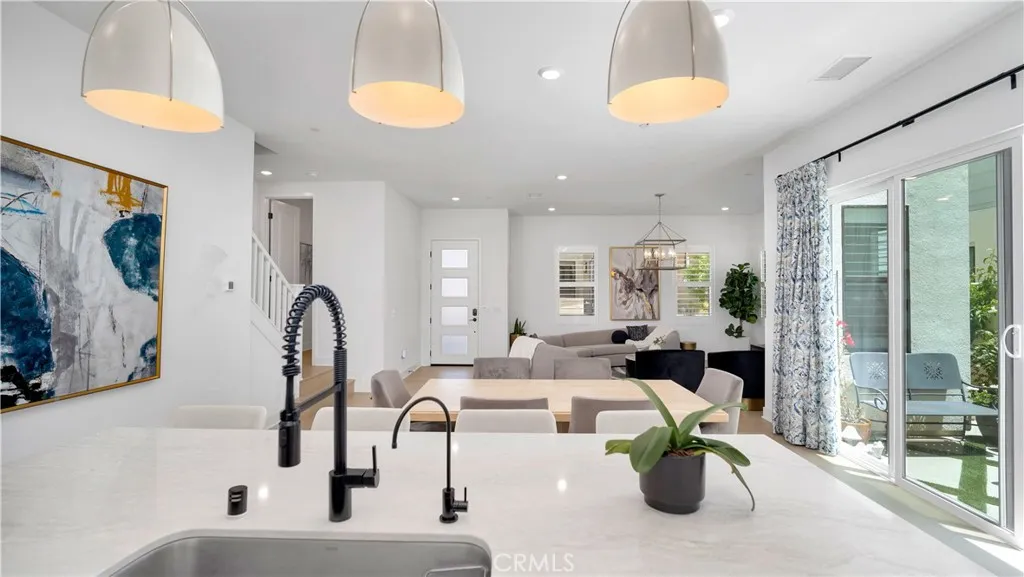 Welcome to 138 Yugen, a beautifully upgraded DETACHED home with nearly 3,000 sqft of thoughtfully designed living space tucked within the vibrant Solis Park enclave of the coveted Great Park Neighborhood in Irvine. From the moment you enter, youre greeted by natural light that pours through thoughtfully placed windows, illuminating rich hardwood floors and an open-concept layout designed for modern living. The expansive great room offers an inviting living and dining space that flows seamlessly into a chef-inspired kitchen - perfect for both everyday living and entertaining. At the heart of the kitchen is a large center island with counter seating, surrounded by sleek quartz countertops, a designer tiled backsplash, soft-close white cabinetry, and premium Caf Series stainless steel appliances. A walk-in pantry adds both function and flair, making this kitchen as practical as it is beautiful. Upstairs, the spacious primary suite serves as a private retreat with a large walk-in closet and a spa-like ensuite bath featuring a tiled walk-in shower, a deep soaking tub, and dual vanities. Three additional bedrooms are well-appointed, ideal for family or guests, and the third-floor bonus room - with its own full bath and access to a private rooftop terraceoffers mountain views and endless possibilities. Whether you envision a media room, home gym, guest suite, or office, this flexible space is designed to adapt to your lifestyle. Additional highlights include recessed lighting throughout, custom plantation shutters, a professionally landscaped yard perfect for outdoor gatherings, a